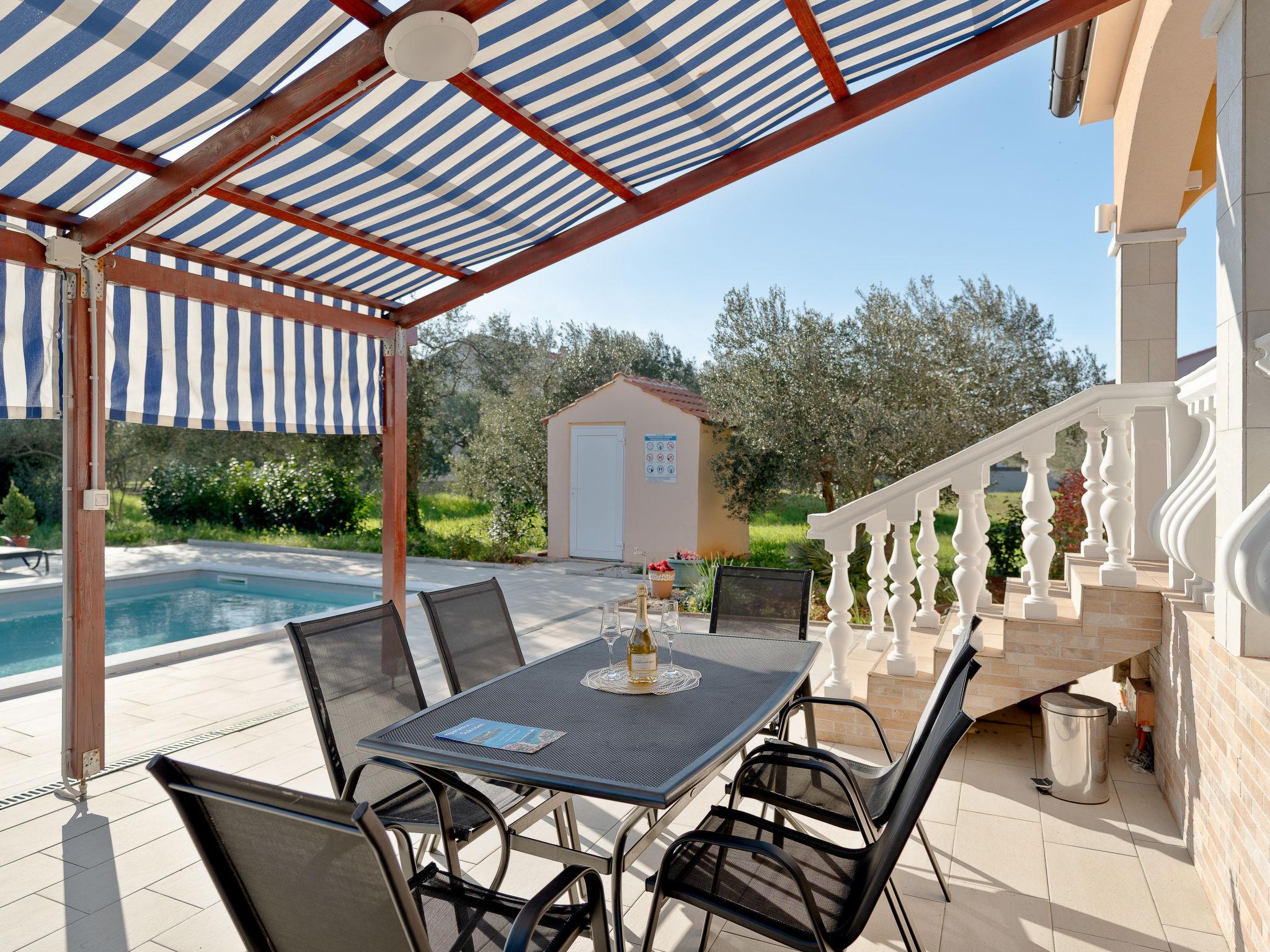 Single-family house "Danijel". 12 km from the centre of Zadar, 800 m from the centre of Sukošan, 18 km from the centre of Biograd, in the residential district, 700 m from the sea, 700 m from the beach. Private: property 700 m2, meadow, swimming pool angular (7 x 4 m, depth 150 cm, seasonal availability: 01.Apr. - 28.Oct.) with internal staircase. Outdoor shower, terrace, barbecue. In the house: internet access, washing machine. Parking (for 2 cars) on the premises. Supermarket 800 m, bus stop 1 km, rocky beach 700 m.