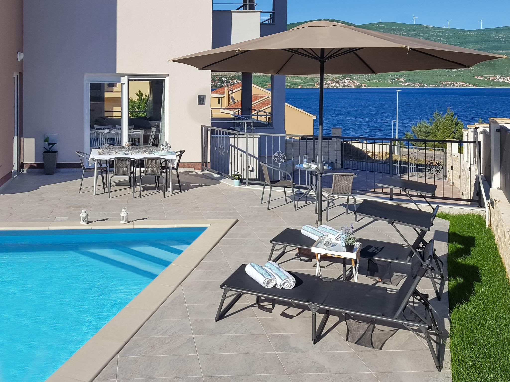 Single-family house "Sea Front Villa Lucija", 3 storeys, built in 2019. 2 km from the centre of Pridraga, on the outskirts, 6 km from the centre of Novigrad, 35 km from the centre of Zadar, 50 m from the sea, 50 m from the beach. Private: property 550 m2 (fenced) with wildlife garden, swimming pool (7 x 7 m, depth 135 cm, seasonal availability: 01.May. - 02.Oct.) with internal staircase. Patio, garden furniture, pool maintenance by the owner/gardener. In the house: internet access, fitness room, air conditioning, washing machine. Parking (for 2 cars) at the house. Shop 2 km, supermarket 6 km, bus stop 17.3 km, pebble beach 50 m.