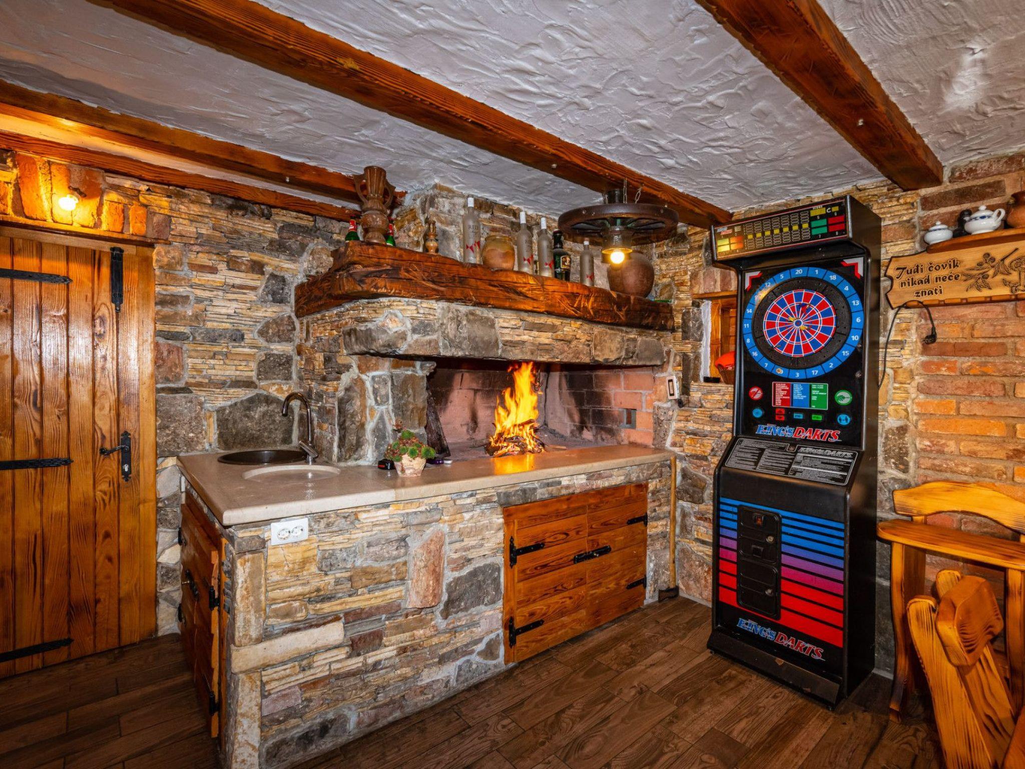 Inside, the villa boasts a total of 6 elegantly furnished bedrooms alongside 5 well-appointed bathrooms, ensuring ample space and privacy for all guests. The villa features a children's playroom, providing entertainment for the little ones, while adults can indulge in the luxury of their own private sauna and jacuzzi. Essential amenities such as a coffee machine, dishwasher, electric kettle, and a fireplace are provided to enhance your stay, making it a home away from home.