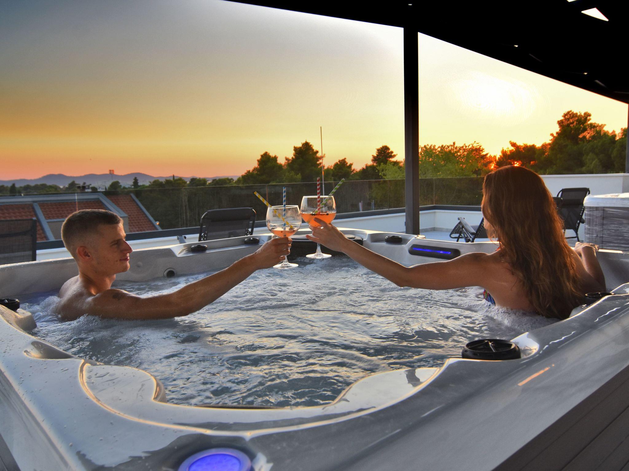 The large roof terrace of 63 m2 has a spectacular view of Zadar, the sea and the islands and there is a hot tube for 5 people, a shower, sun loungers and garden furniture .