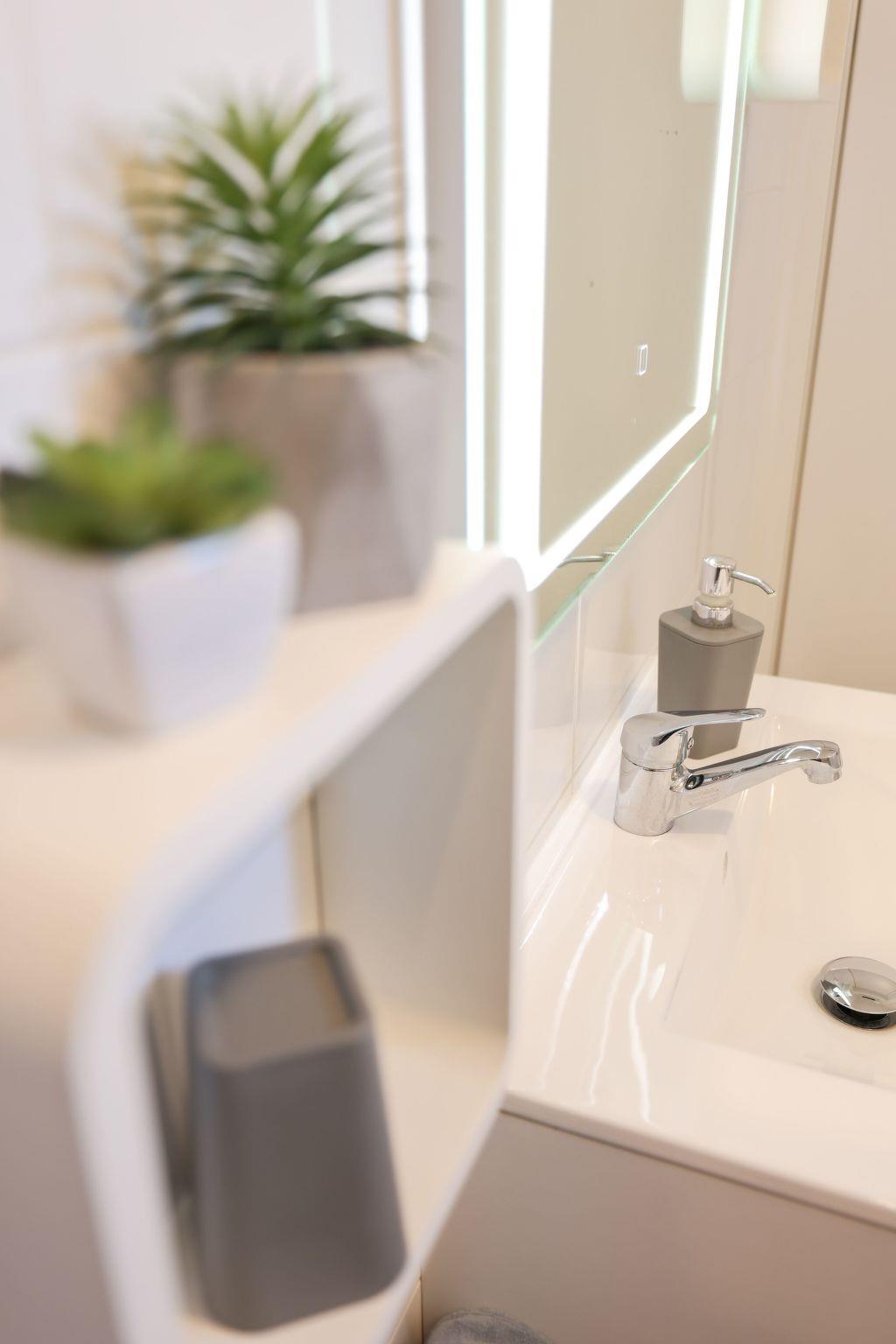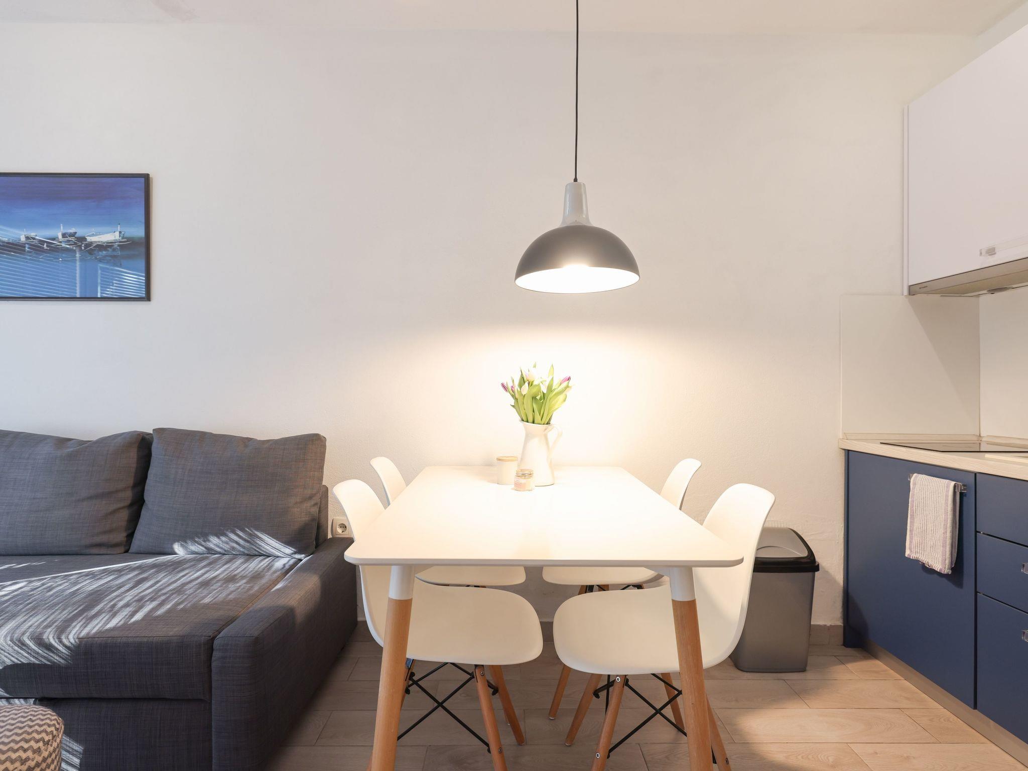 It is equipped to accommodate up to three persons and features a living area, fully equipped kitchen unit, a bright and modern bathroom and one double bedrooms. The bedrooms has a 160cm x 180cm king size bed. The living room enjoys air conditioning (hot/cold) and is furnished with a sofa, cable and satellite TV. The sofa can be converted into a bed, providing a comfortable additional sleeping space for one more persons. The kitchen is complete with Ceran cooktop, microwave fridge and large freezer compartment, electric kettle, coffee machine and a toaster. The modern bathroom is equipped with a shower, a wash basin with large walled mirror, and a toilet. WLAN internet access, inside the apartment and in the garden area, is available free of charge.