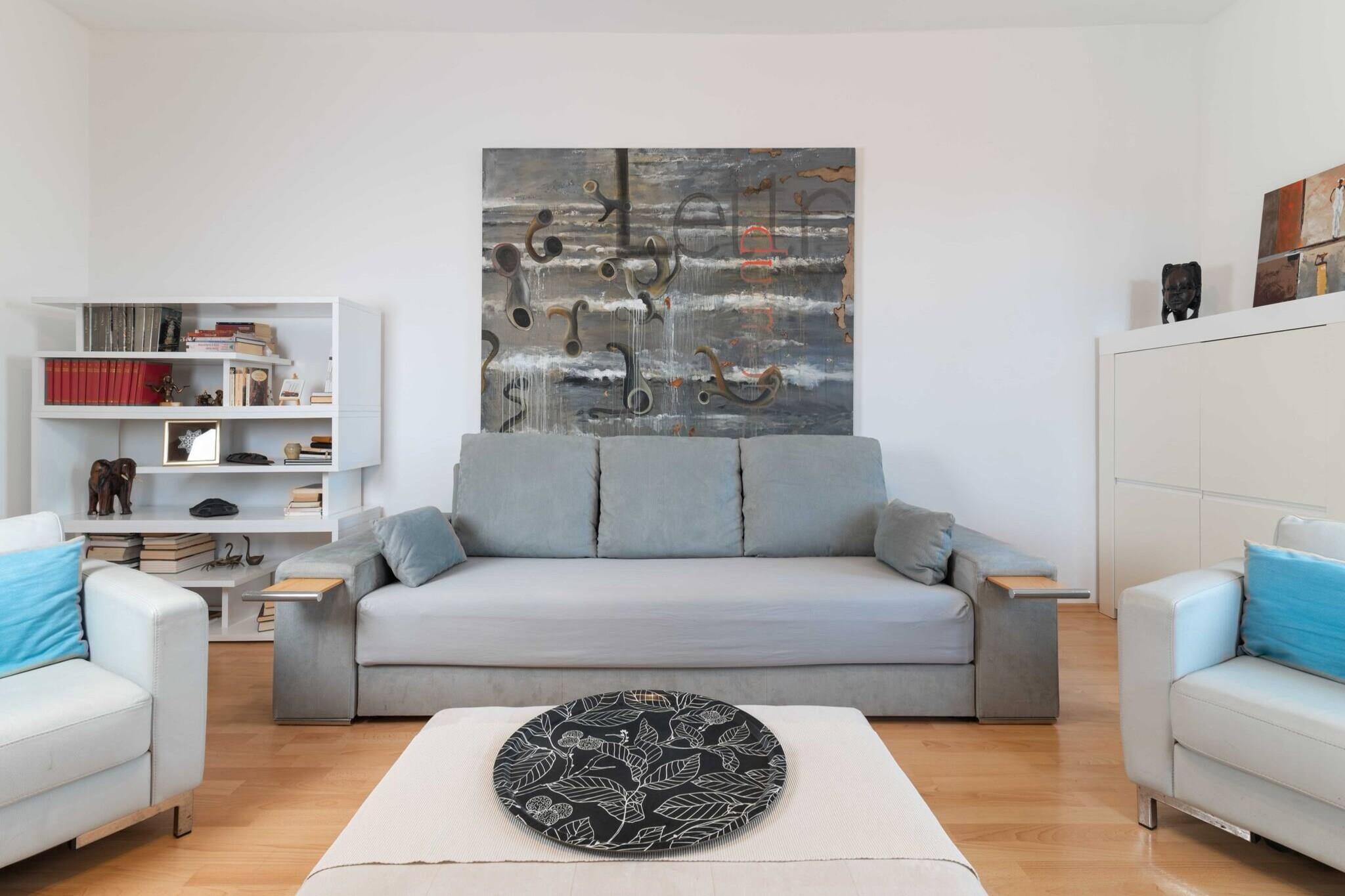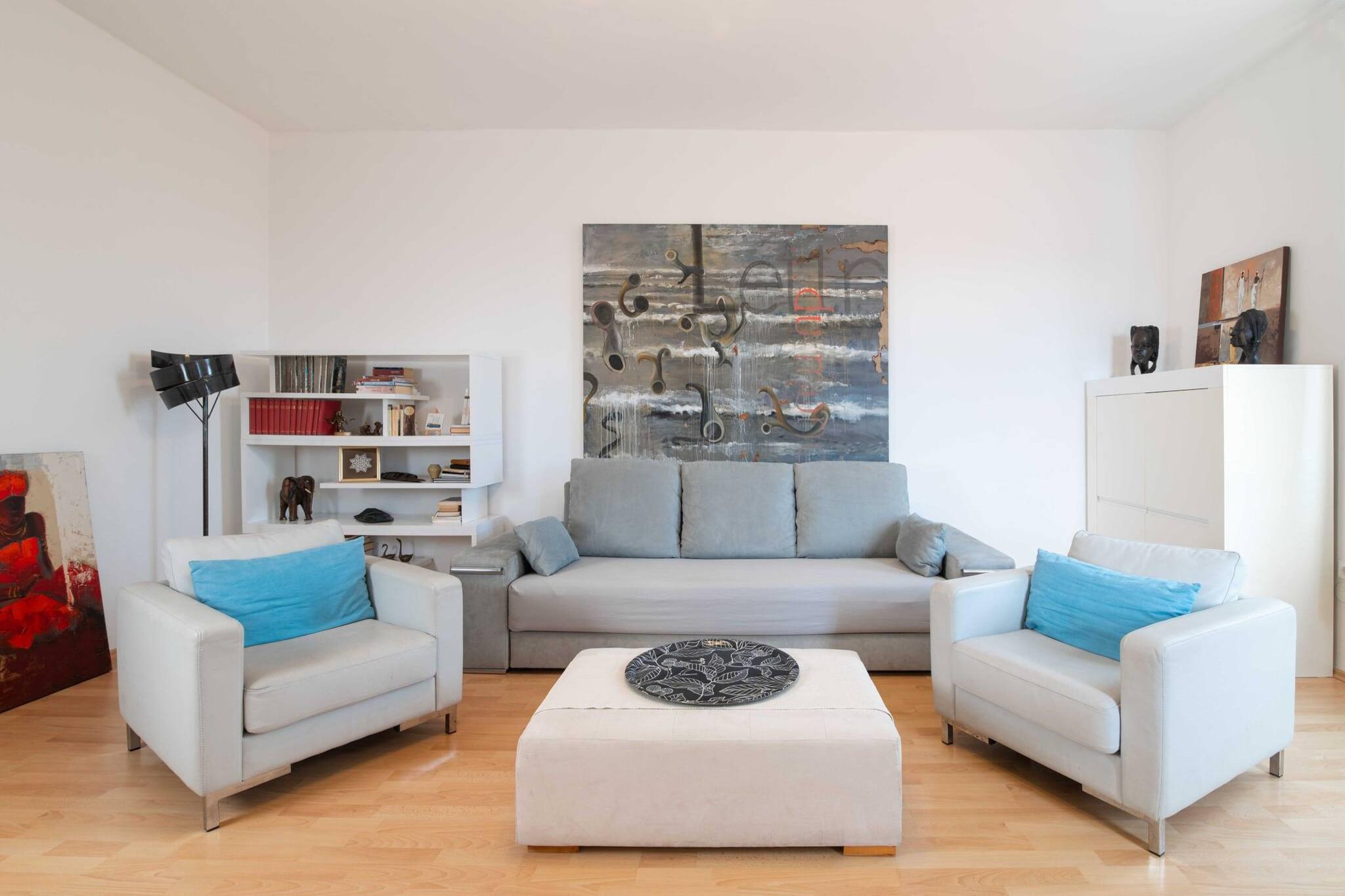 På 4. etage: (Stue(dobbeltsovesofa, Fjernsyn(fladskærm, parabol, Smart-TV), spisebord, sofahjørne), Køkken(kogeplade, elkedel, brødrister, kaffemaskine, ovn, mikrobølgeovn, opvaskemaskine , køle-fryseskab, Saftpresser, , Wine glasses), soveværelse(king size-seng), soveværelse(enkeltseng, enkeltseng), badeværelse(badekar, håndvask, toilet, føntørrer)) Internetadgang, Havemøbler, vaskemaskine, balkon, klimaanlæg, strygejern, , , Cleaning products