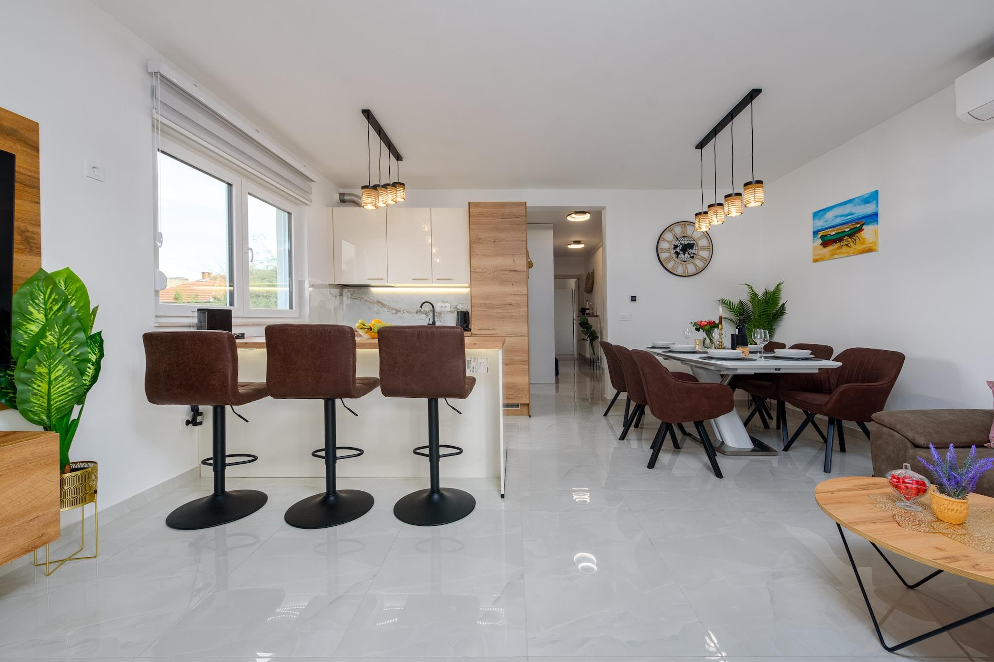 The lejlighed i Zadar har 2 soveværelse(r) og kapacitet til 5 person(er). Bolig på 60 m² gode møbler og er moderne, med udsigt til stranden. Er beliggende 900 m from coffee shop, 1 km fra supermarkedet "Supermarket Tommy", 1 km from the restaurant "KFC Zadar", 3 km fra byen "Zadar center", 3 km from hospital "Opca bolnica Zadar", 3 km fra stenstranden "Beach Kolovare", 6 km fra stranden "Beach Borik", 10 km fra lufthavnen "ZL Zadar", 10 km fra lufthavnen "ZL Zadar", 39 km fra sø "Vransko jezero", 52 km fra naturparken "NP Paklenica" og er beliggende i et beboelses område og i centrum af byen. Tilbyder indhegnet grund, 40 m² terrasse, vaskemaskine, grill, strygejern, internet (wifi), hårtørrer, altan, spa, elektrisk varmen, aircondition, utildækket parkering til den samme bygning, myggenet i hele lejligheden, 1 TV, satellit (Sprog: Spansk, Engelsk, Tysk, Hollandsk), radio. The amerikanske køkken, elektrisk, med service og køleskab, ovn, fryser, opvaskemaskine, tallerkener/bestik, køkkenredskaber, kaffemaskine og kedel.