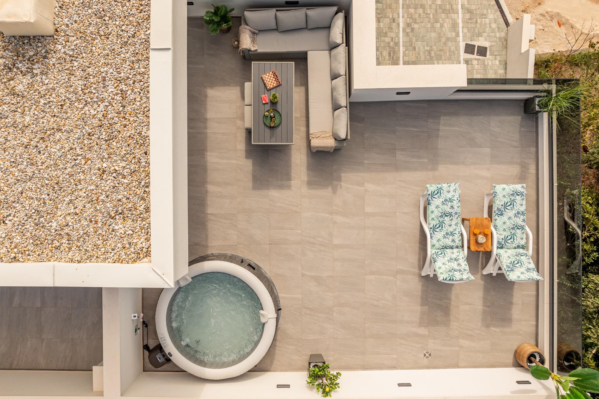 Stue(enkeltsovesofa, Fjernsyn(fladskærm, parabol), spisebord, sofahjørne, radio), Køkken(kogeplade, elkedel, kaffemaskine, ovn, opvaskemaskine , køle-fryseskab, , ), soveværelse(dobbeltseng), soveværelse(dobbeltseng), badeværelse(bruser, håndvask, toilet, føntørrer), Internetadgang, hottub, vaskemaskine, balkon, varme(elektrisk), klimaanlæg, terrasse, have, havemøbler, grill, parkering, strygejern