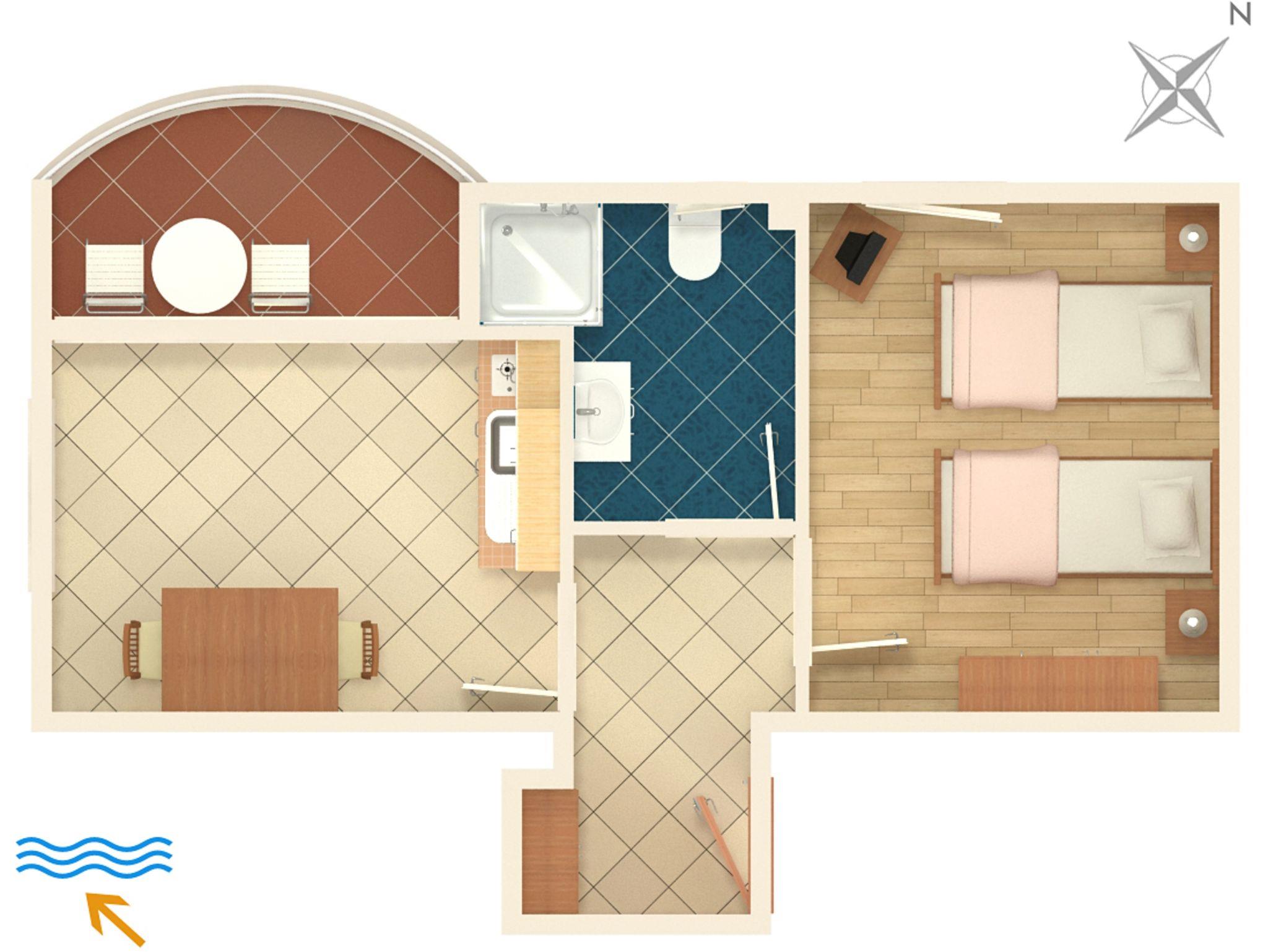 Ferienwohnung bietet Platz für 2 Gäste. Die Betten sind in Schlafzimmern, die es 1 gibt, innerhalb einer Gesamtfläche von 30m2, angeordnet. Die Gäste haben eine eigene Terrasse zur Verfügung, auf der sie in warmen Sommernächten genießen können. Das Apartment bietet Meerblick. Es ist erlaubt, Speisen auf dem Gemeinschafts-Grill vorzubereiten. IM PREIS INBEGRIFFEN: Kurtaxe, Endreinigung, Klimatisierung, Parkplatz, Internet, Bügeleisen, Bügelbrett, Föhn. VERBINDLICHE ZUSÄTZLICHE KOSTEN: Aufzahlung für Kurzaufenthalte (prozentualer Zuschlag pro Nächtigungsanzahl: 30% - 1, 20% - 2, 10% - 3). UNVERBINDLICHE ZUSÄTZLICHE KOSTEN: Wäschewaschen (5,00 € Waschen). Die Verfügbarkeit zusätzlicher Dienstleistungen in Ihrem reservierten Termin und die Preise derselben (falls nicht aufgeführt) müssen im Voraus überprüft werden. Zusätzliche Dienstleistungen die in der Zahlungsaufforderung nicht aufgeführt sind werden direkt beim Vermieter bezahlt, angenommen der Gast nutzt auch diese.