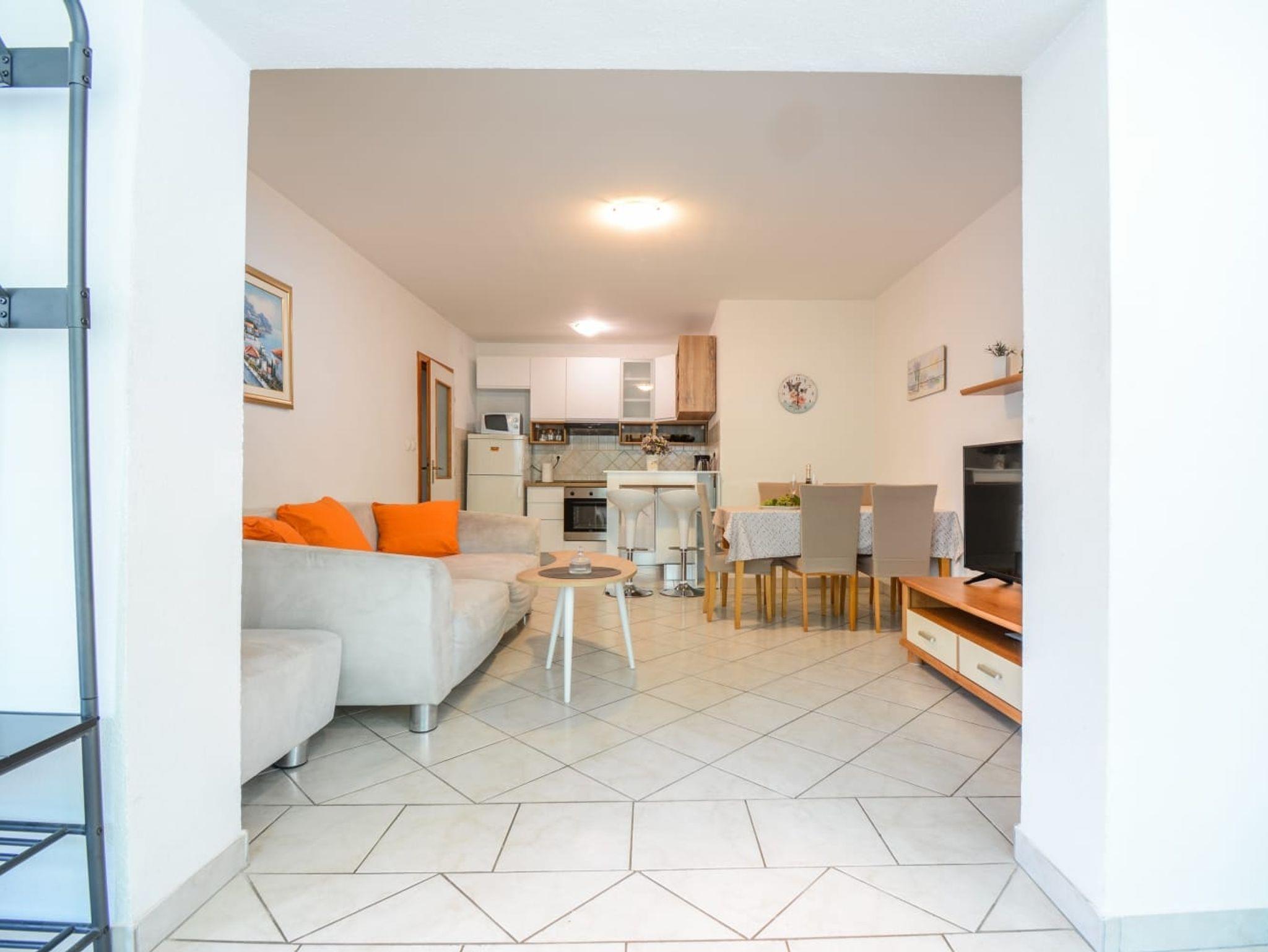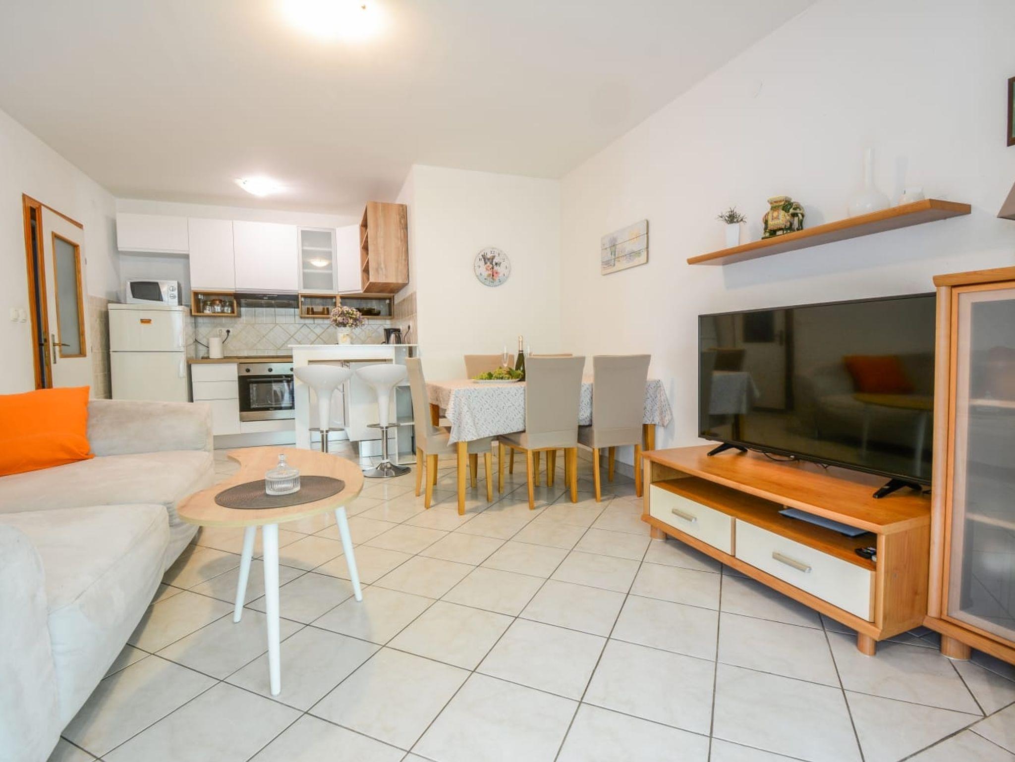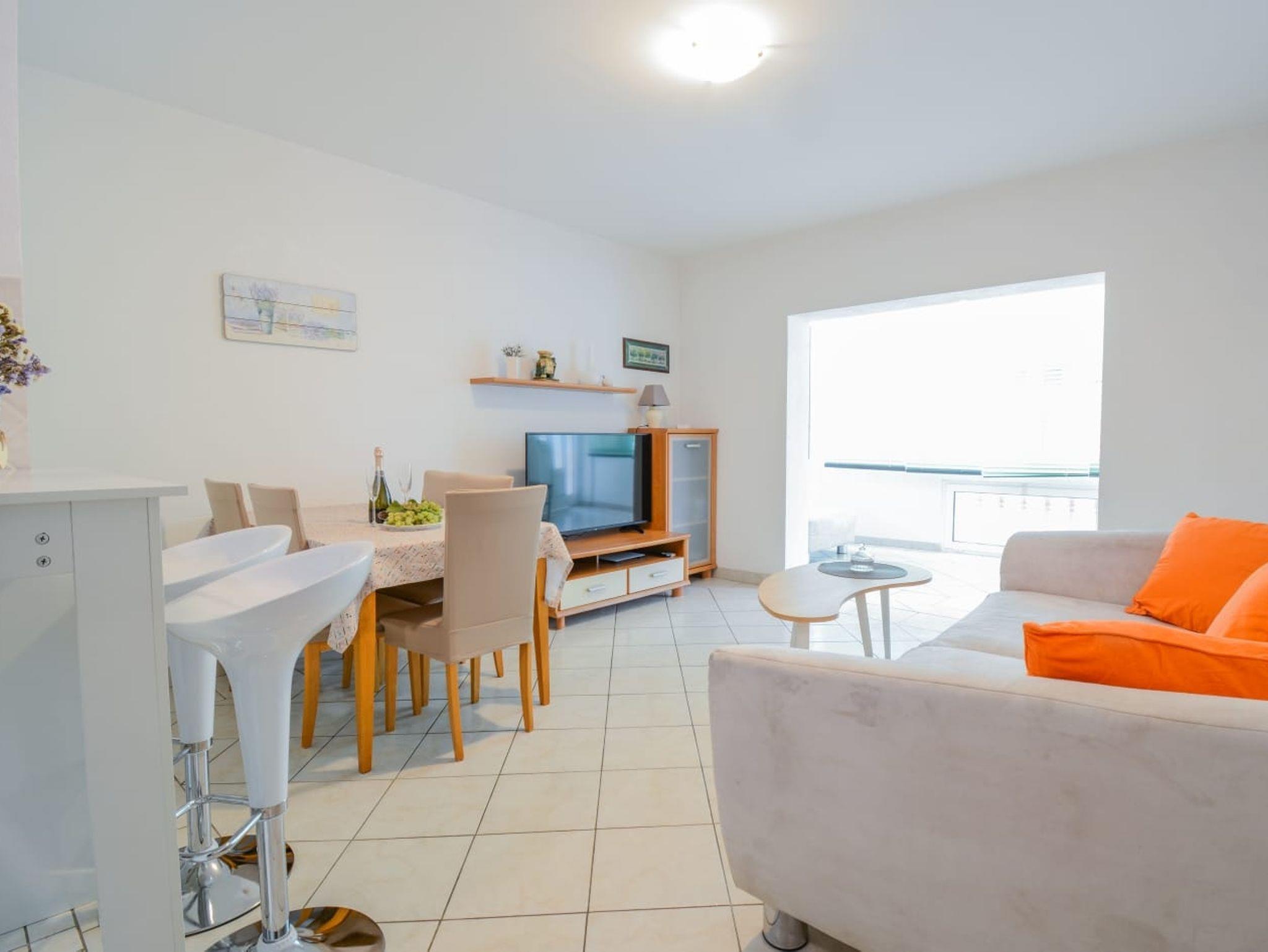 Ferienwohnung bietet Platz für 5 Gäste. Die Betten sind in Schlafzimmern, die es 2 gibt, und in Wohnzimmer, innerhalb einer Gesamtfläche von 59m2, angeordnet. Die Gäste haben eine eigene Terrasse zur Verfügung, auf der sie in warmen Sommernächten genießen können. Es ist erlaubt, Speisen auf dem Gemeinschafts-Grill vorzubereiten. In der Unterkunftseinheit besteht die Möglichkeit des Mitbringens von Haustieren gegen Aufpreis. IM PREIS INBEGRIFFEN: Kurtaxe, Endreinigung, Klimatisierung, Parkplatz, Internet, Kinderbett, Bügeleisen, Bügelbrett, Föhn. VERBINDLICHE ZUSÄTZLICHE KOSTEN: Aufzahlung für Kurzaufenthalte (prozentualer Zuschlag pro Nächtigungsanzahl: 30% - 1, 20% - 2, 10% - 3). UNVERBINDLICHE ZUSÄTZLICHE KOSTEN: Haustiere (10,00 € pro Nacht), Zusatzbett (10,00 € pro Nacht). Die Verfügbarkeit zusätzlicher Dienstleistungen in Ihrem reservierten Termin und die Preise derselben (falls nicht aufgeführt) müssen im Voraus überprüft werden. Zusätzliche Dienstleistungen die in der Zahlungsaufforderung nicht aufgeführt sind werden direkt beim Vermieter bezahlt, angenommen der Gast nutzt auch diese. Ermäßigung auf den Grundpreis: Gratistag 14=13 (bei einem Aufenthalt von 14 Tagen oder mehr erhalten Sie einen Gratistag für den Aufenthalt bis 31.12.26).
