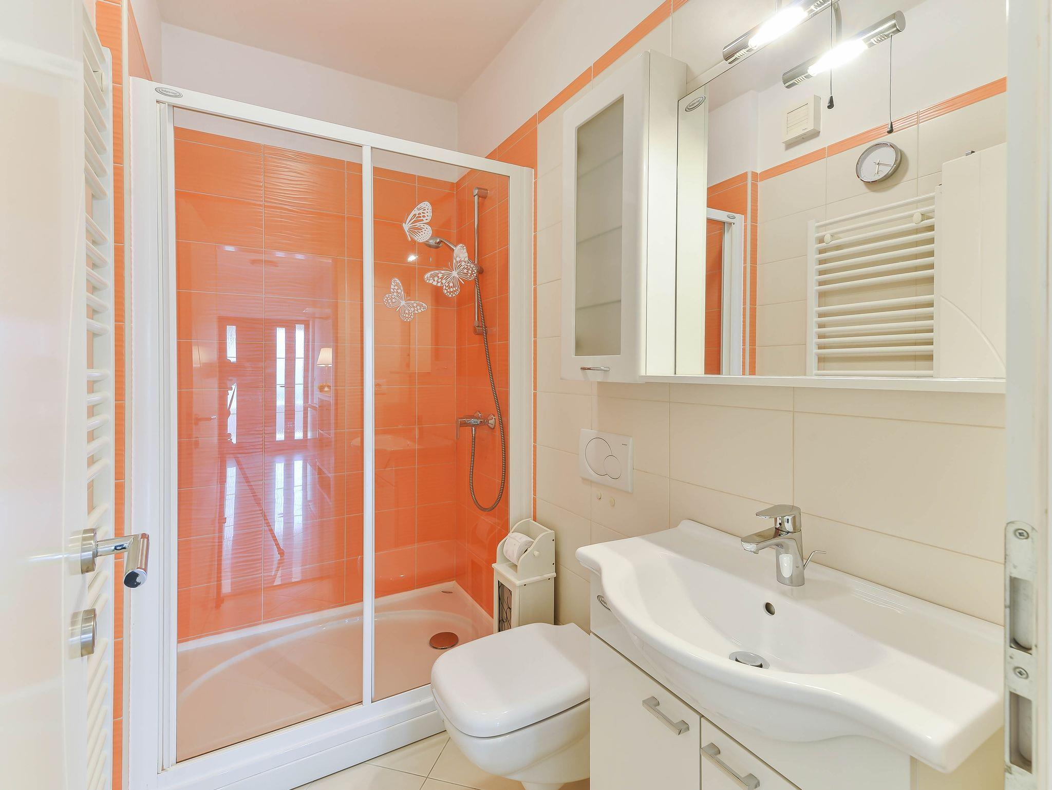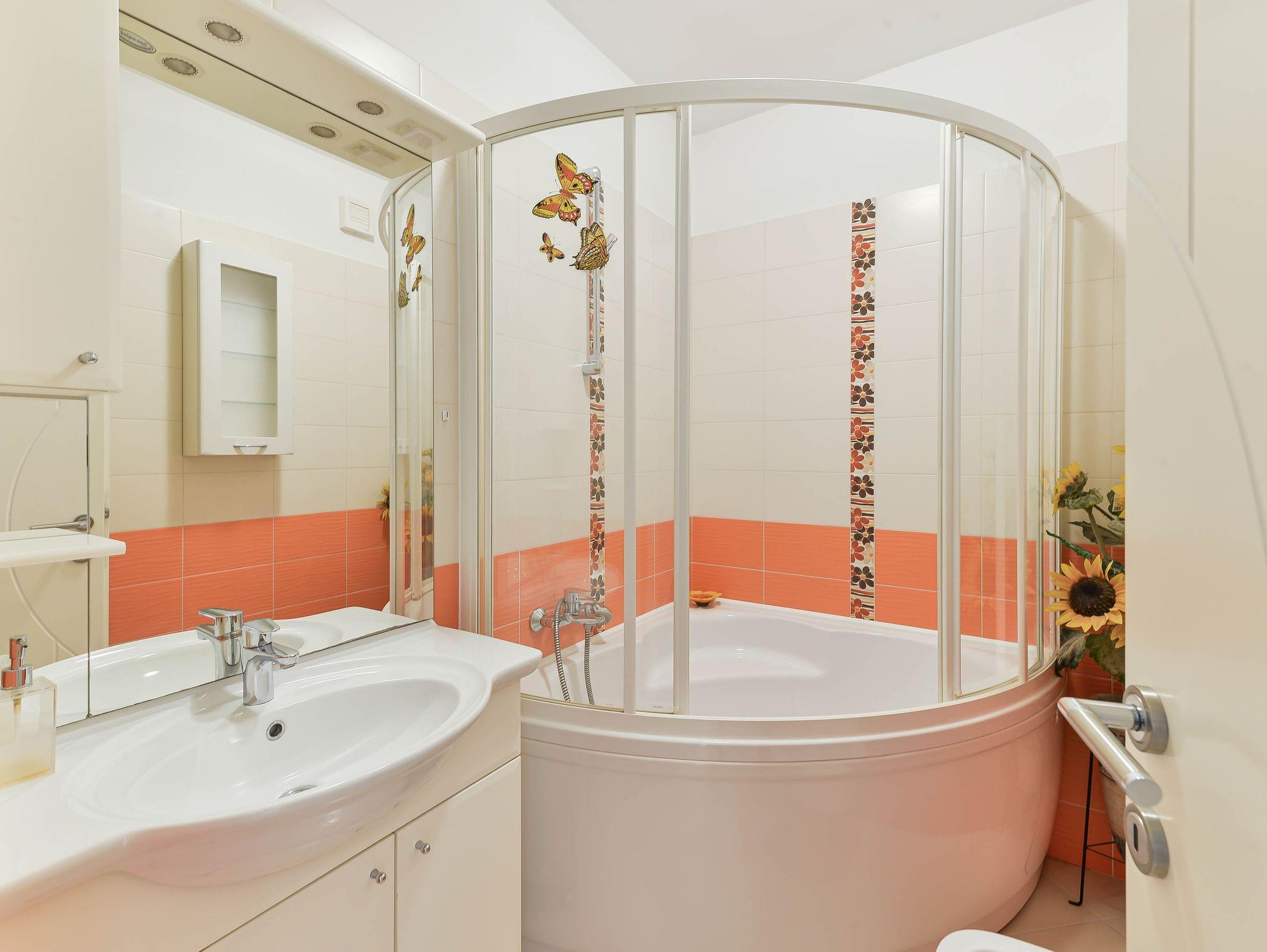 Ferienwohnung bietet Platz für 3 Gäste. Die Betten sind in Schlafzimmern, die es 2 gibt, innerhalb einer Gesamtfläche von 63m2, angeordnet. Die Gäste haben eine eigene Terrasse zur Verfügung, auf der sie in warmen Sommernächten genießen können. Es ist erlaubt, Speisen auf dem Gemeinschafts-Grill vorzubereiten. Während ihres Aufenthalts können Gäste das gemeinsam zur Nutzung stehende Schwimmbad benutzen. In der gebuchten Unterkunftseinheit zahlt man am Ort ein Depositum ( der Preis ist an der Internetseite angeführt ). IM PREIS INBEGRIFFEN: Kurtaxe, Endreinigung, Klimatisierung, Pool, Parkplatz, Internet, Kinderbett, Bügeleisen, Bügelbrett, Föhn, tragbarer Grill. VERBINDLICHE ZUSÄTZLICHE KOSTEN: Kaution (100,00 € Einmalzahlung), Aufzahlung für Kurzaufenthalte (prozentualer Zuschlag pro Nächtigungsanzahl: 30% - 1, 20% - 2, 10% - 3). UNVERBINDLICHE ZUSÄTZLICHE KOSTEN: Wäschewaschen (5,00 € Waschen). Die Verfügbarkeit zusätzlicher Dienstleistungen in Ihrem reservierten Termin und die Preise derselben (falls nicht aufgeführt) müssen im Voraus überprüft werden. Zusätzliche Dienstleistungen die in der Zahlungsaufforderung nicht aufgeführt sind werden direkt beim Vermieter bezahlt, angenommen der Gast nutzt auch diese.