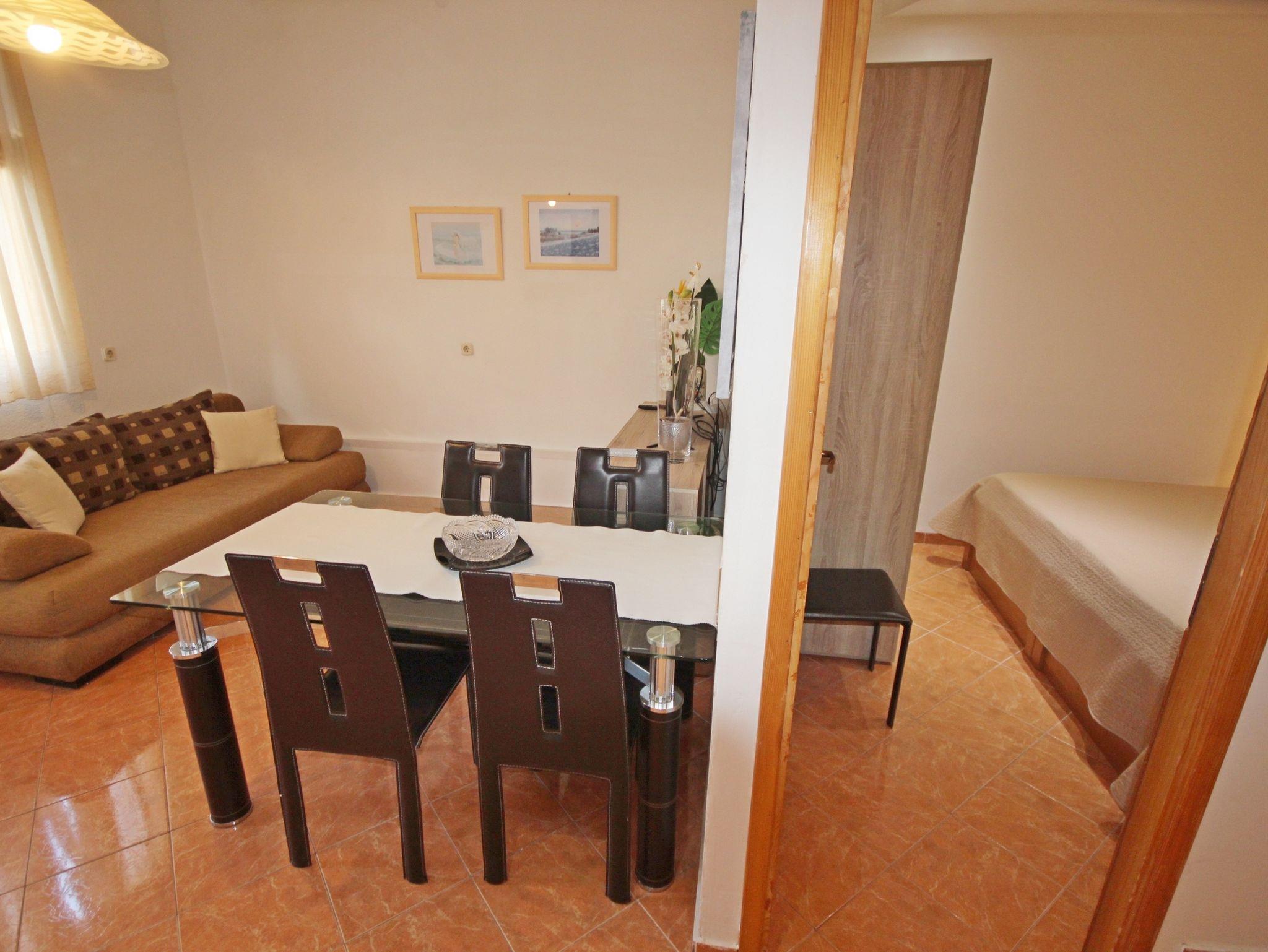 Ferienwohnung bietet Platz für 4 Gäste. Die Betten sind in Schlafzimmern, die es 1 gibt, und in Wohnzimmer, innerhalb einer Gesamtfläche von 33m2, angeordnet. Die Gäste haben eine eigene Terrasse zur Verfügung, auf der sie in warmen Sommernächten genießen können. Es ist erlaubt, Speisen auf dem Gemeinschafts-Grill vorzubereiten. In der Unterkunftseinheit besteht die Möglichkeit des Mitbringens von Haustieren gegen Aufpreis. IM PREIS INBEGRIFFEN: Kurtaxe, Endreinigung, Klimatisierung, Parkplatz, Internet, Bügeleisen, Bügelbrett, Föhn. VERBINDLICHE ZUSÄTZLICHE KOSTEN: Aufzahlung für Kurzaufenthalte (prozentualer Zuschlag pro Nächtigungsanzahl: 30% - 1, 20% - 2, 10% - 3). UNVERBINDLICHE ZUSÄTZLICHE KOSTEN: Haustiere (6,00 € pro Nacht). Die Verfügbarkeit zusätzlicher Dienstleistungen in Ihrem reservierten Termin und die Preise derselben (falls nicht aufgeführt) müssen im Voraus überprüft werden. Zusätzliche Dienstleistungen die in der Zahlungsaufforderung nicht aufgeführt sind werden direkt beim Vermieter bezahlt, angenommen der Gast nutzt auch diese.