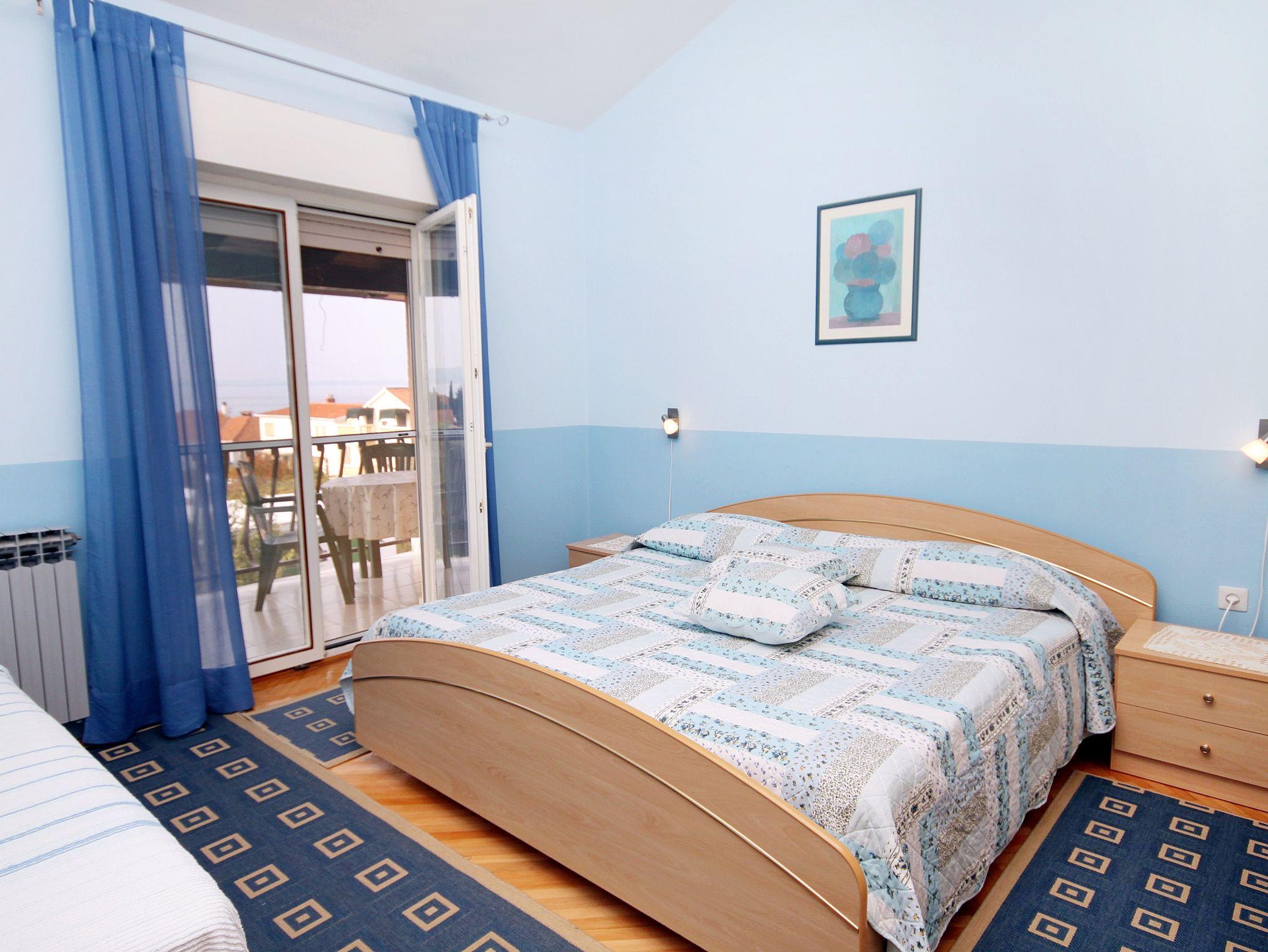 Ferienwohnung bietet Platz für 4 Gäste. Die Betten sind in Schlafzimmern, die es 2 gibt, innerhalb einer Gesamtfläche von 48m2, angeordnet. Die Gäste haben eine eigene Terrasse zur Verfügung, auf der sie in warmen Sommernächten genießen können. Das Apartment bietet Meerblick. Es ist erlaubt, Speisen auf dem Gemeinschafts-Grill vorzubereiten. IM PREIS INBEGRIFFEN: Kurtaxe, Endreinigung, Parkplatz, Internet. VERBINDLICHE ZUSÄTZLICHE KOSTEN: Aufzahlung für Kurzaufenthalte (prozentualer Zuschlag pro Nächtigungsanzahl: 30% - 1, 20% - 2, 10% - 3). UNVERBINDLICHE ZUSÄTZLICHE KOSTEN: Klimatisierung (10,00 € pro Nacht), Wäschewaschen (7,00 € Waschen). Die Verfügbarkeit zusätzlicher Dienstleistungen in Ihrem reservierten Termin und die Preise derselben (falls nicht aufgeführt) müssen im Voraus überprüft werden. Zusätzliche Dienstleistungen die in der Zahlungsaufforderung nicht aufgeführt sind werden direkt beim Vermieter bezahlt, angenommen der Gast nutzt auch diese. Ermäßigung auf den Grundpreis: Gratistag 14=13 (bei einem Aufenthalt von 14 Tagen oder mehr erhalten Sie einen Gratistag für den Aufenthalt bis 31.12.26).