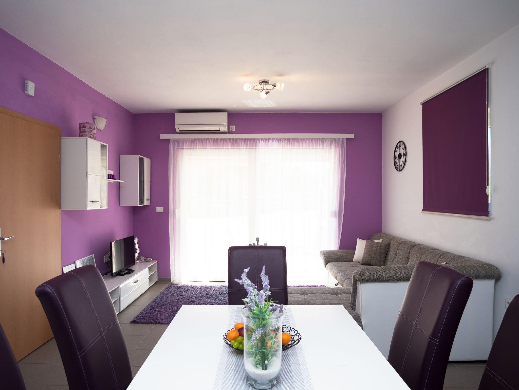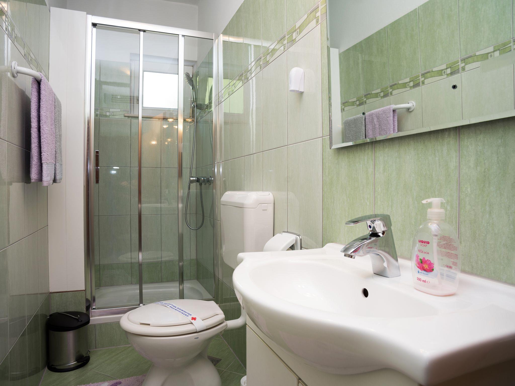 Ferienwohnung bietet Platz für 5 Gäste. Die Betten sind in Schlafzimmern, die es 1 gibt, und in Wohnzimmer, innerhalb einer Gesamtfläche von 41m2, angeordnet. Die Gäste haben eine eigene Terrasse zur Verfügung, auf der sie in warmen Sommernächten genießen können. Es ist erlaubt, Speisen auf dem Gemeinschafts-Grill vorzubereiten. IM PREIS INBEGRIFFEN: Kurtaxe, Endreinigung, Klimatisierung, Parkplatz, Internet, Bügeleisen, Föhn. VERBINDLICHE ZUSÄTZLICHE KOSTEN: Aufzahlung für Kurzaufenthalte (prozentualer Zuschlag pro Nächtigungsanzahl: 30% - 1, 20% - 2, 10% - 3). Die Verfügbarkeit zusätzlicher Dienstleistungen in Ihrem reservierten Termin und die Preise derselben (falls nicht aufgeführt) müssen im Voraus überprüft werden. Zusätzliche Dienstleistungen die in der Zahlungsaufforderung nicht aufgeführt sind werden direkt beim Vermieter bezahlt, angenommen der Gast nutzt auch diese.