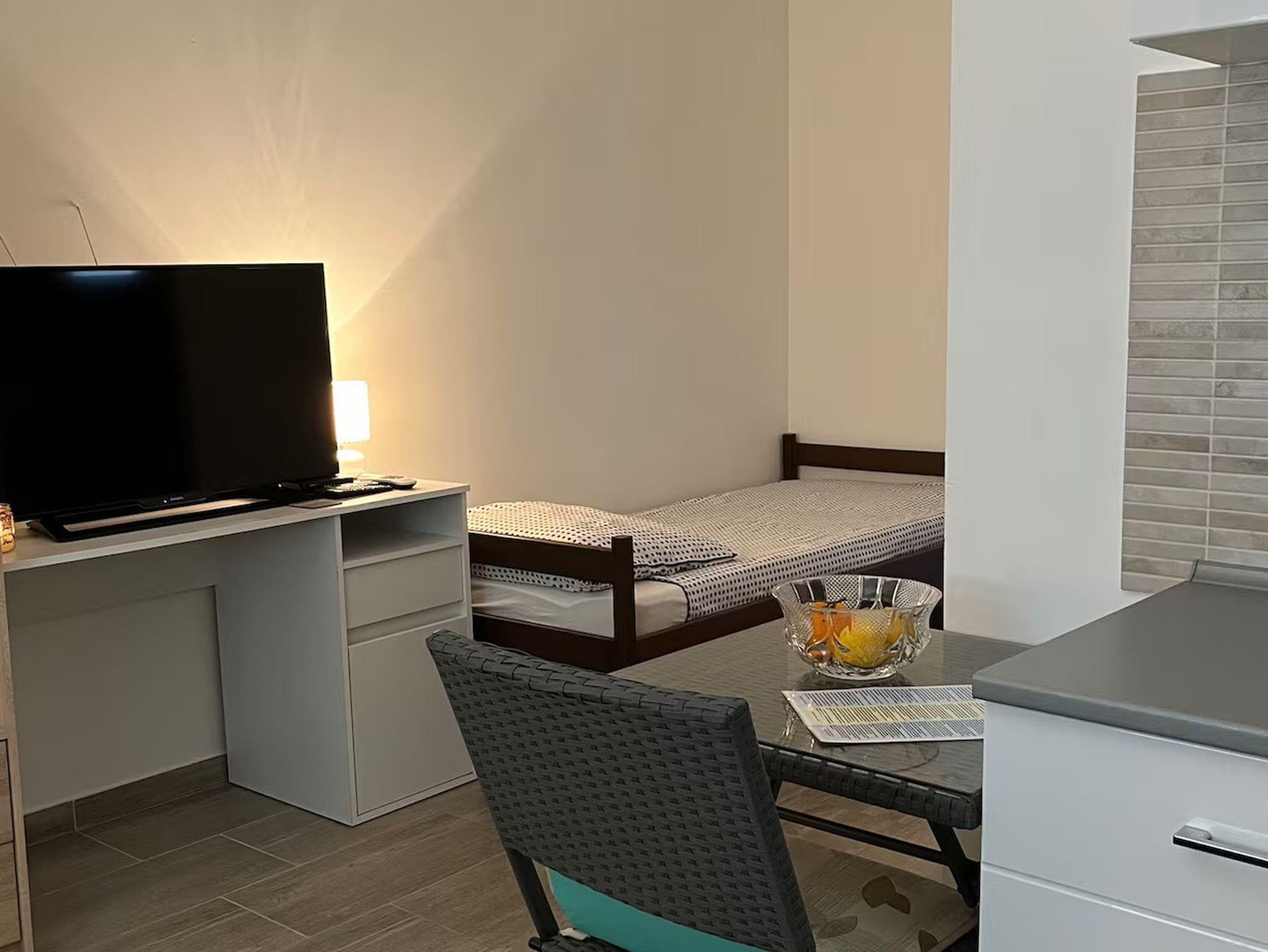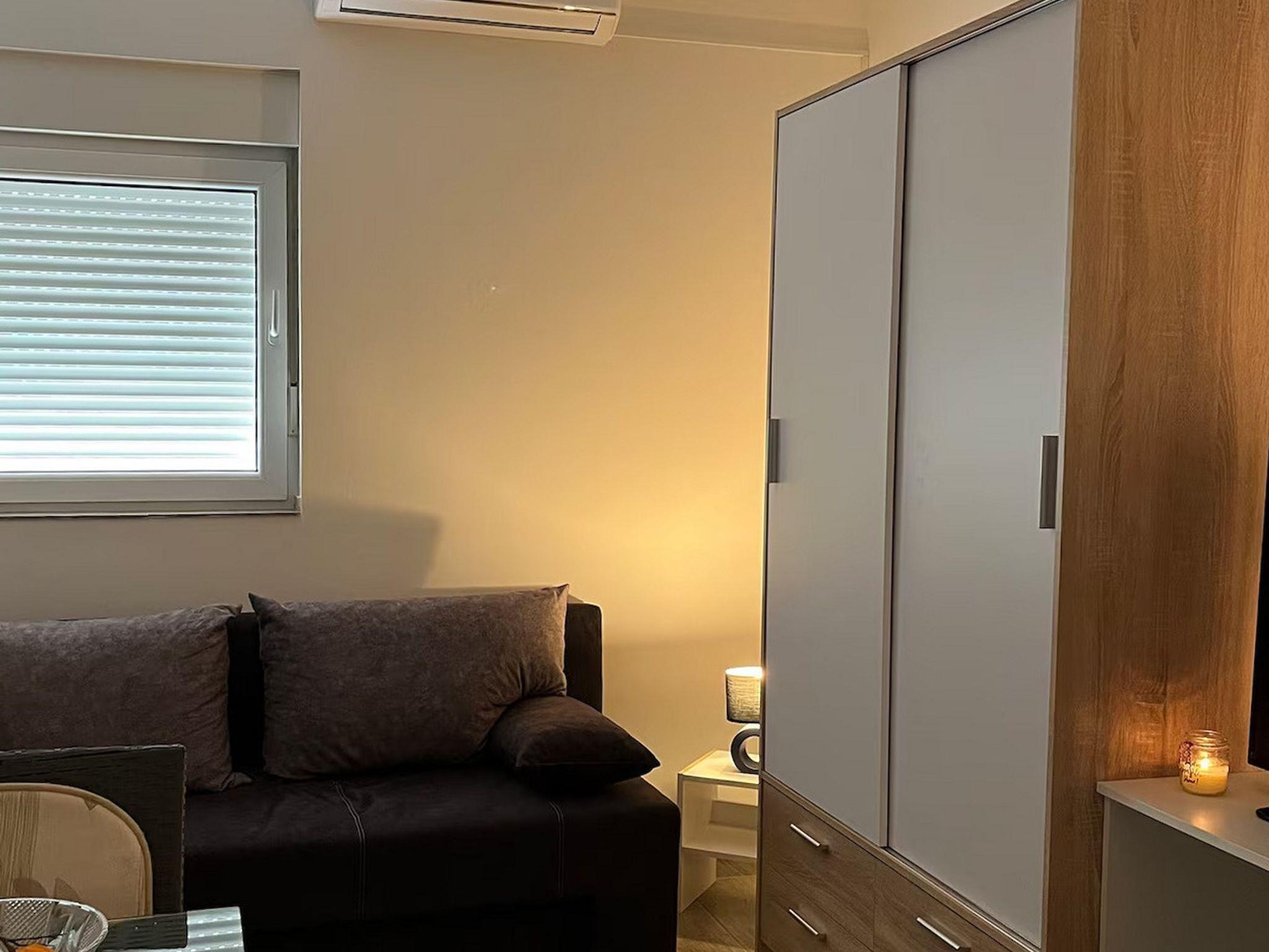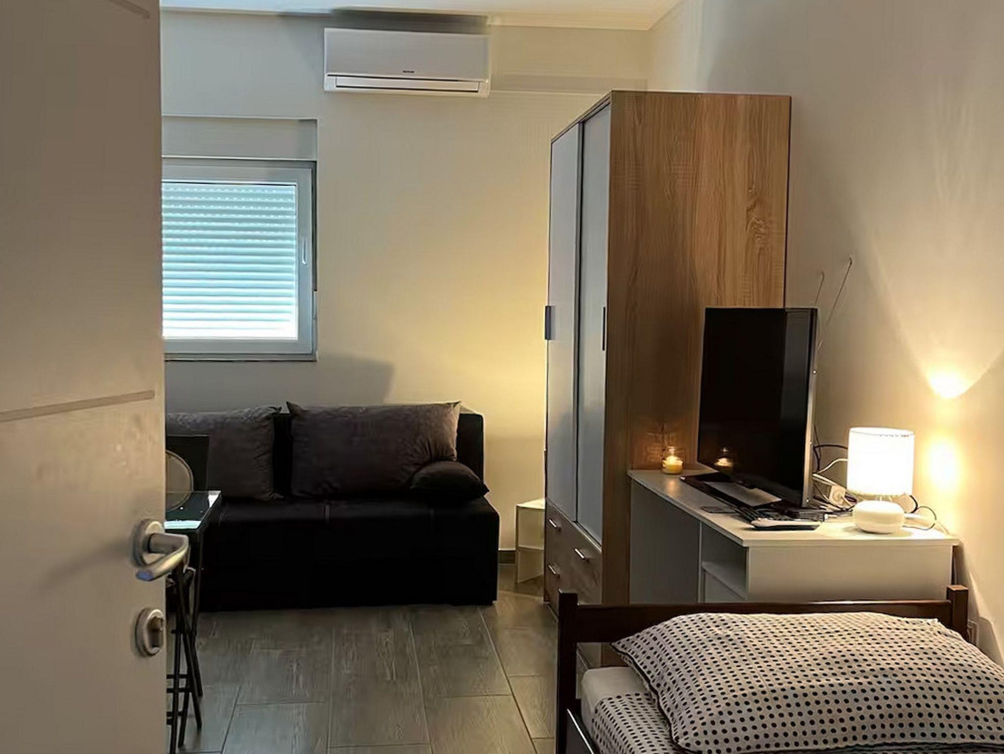 Studio bietet Platz für 2 Gäste. Die Betten sind in Schlafzimmern, die es 1 gibt, innerhalb einer Gesamtfläche von 20m2, angeordnet. Die reservierte Unterkunftseinheit hat keinen Balkon und keine Terrasse. IM PREIS INBEGRIFFEN: Kurtaxe, Endreinigung, Klimatisierung, Parkplatz, Internet, Bügeleisen, Bügelbrett, Föhn. VERBINDLICHE ZUSÄTZLICHE KOSTEN: Aufzahlung für Kurzaufenthalte (prozentualer Zuschlag pro Nächtigungsanzahl: 30% - 1, 20% - 2, 10% - 3). Die Verfügbarkeit zusätzlicher Dienstleistungen in Ihrem reservierten Termin und die Preise derselben (falls nicht aufgeführt) müssen im Voraus überprüft werden. Zusätzliche Dienstleistungen die in der Zahlungsaufforderung nicht aufgeführt sind werden direkt beim Vermieter bezahlt, angenommen der Gast nutzt auch diese. Ermäßigung auf den Grundpreis: Aktion (erzielen Sie während der Buchung zusätzliche Ermäßigung von 10%).