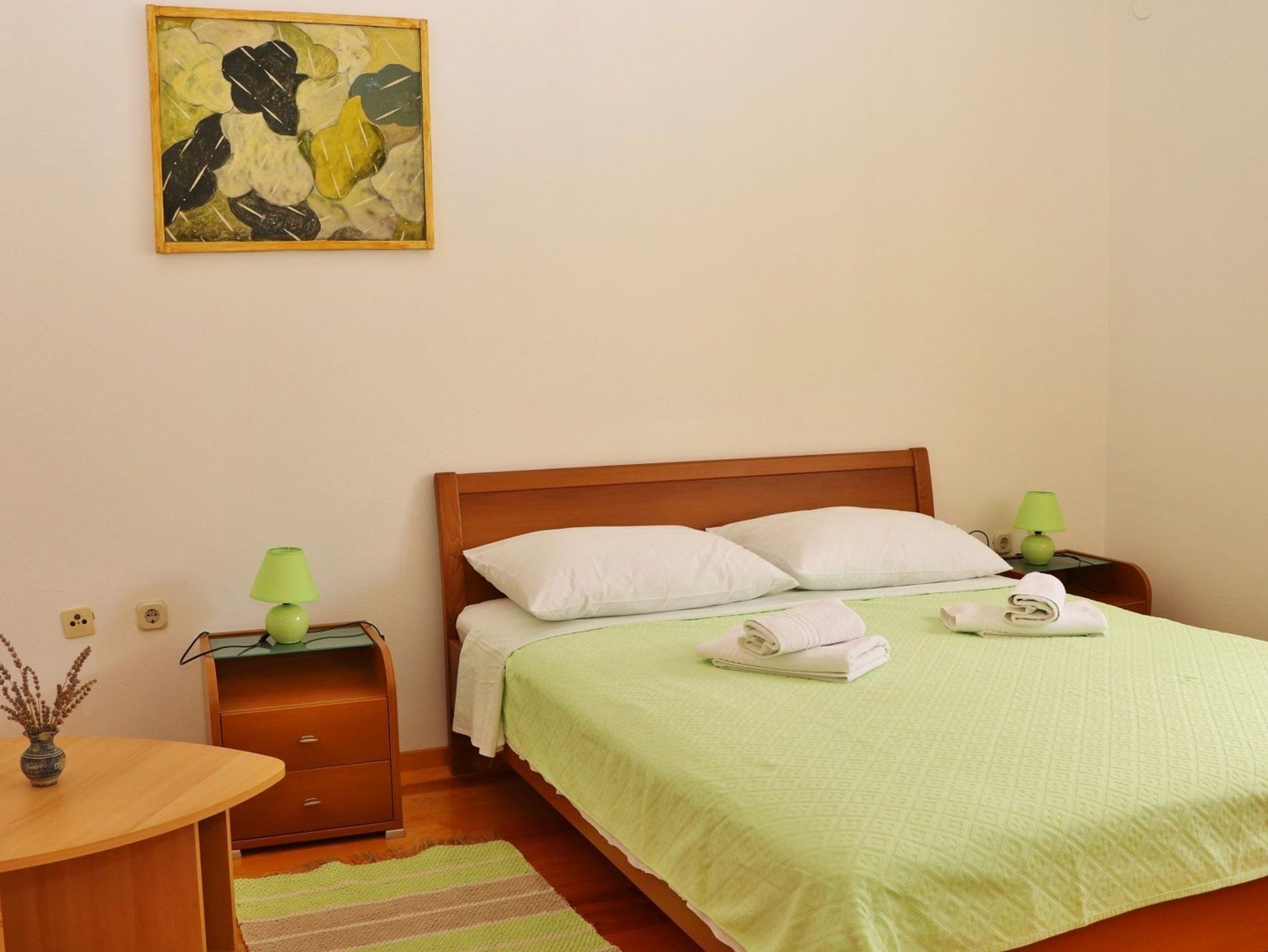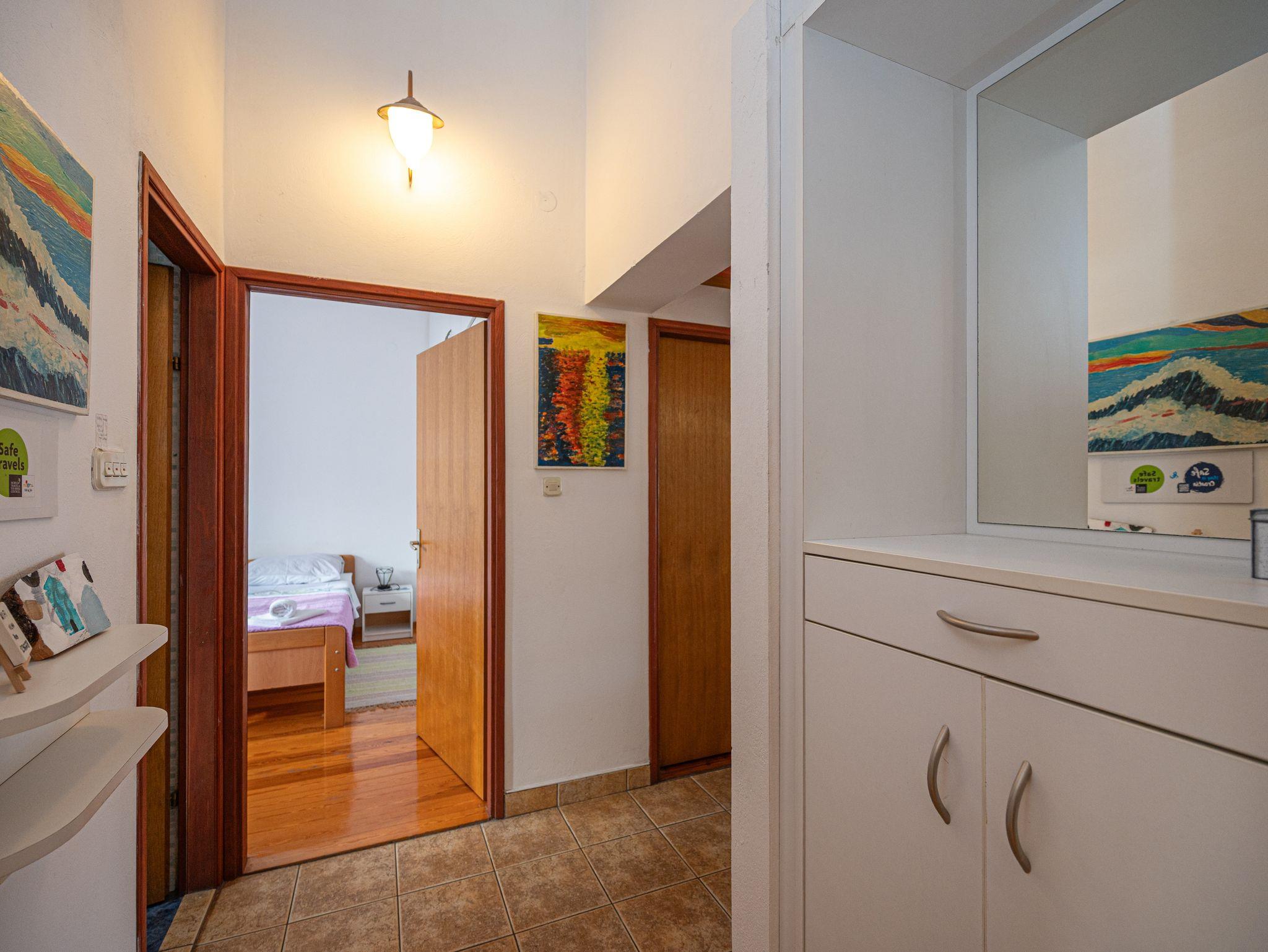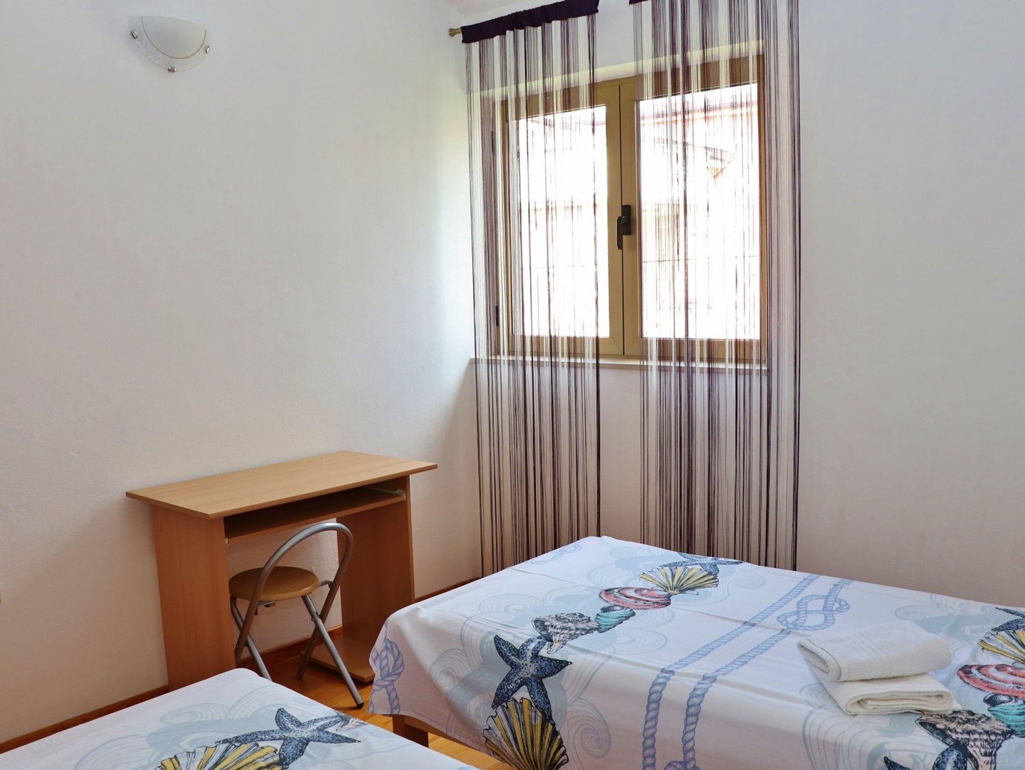 Ferienwohnung bietet Platz für 6 Gäste. Die Betten sind in Schlafzimmern, die es 3 gibt, und in Wohnzimmer, innerhalb einer Gesamtfläche von 72m2, angeordnet. Die Gäste haben eine eigene Terrasse zur Verfügung, auf der sie in warmen Sommernächten genießen können. Es ist erlaubt, Speisen auf dem Gemeinschafts-Grill vorzubereiten. IM PREIS INBEGRIFFEN: Kurtaxe, Endreinigung, Klimatisierung, Parkplatz, Internet, Kinderbett, Bügeleisen, Bügelbrett, Föhn, tragbarer Grill. VERBINDLICHE ZUSÄTZLICHE KOSTEN: Aufzahlung für Kurzaufenthalte (prozentualer Zuschlag pro Nächtigungsanzahl: 30% - 1, 20% - 2, 10% - 3). Die Verfügbarkeit zusätzlicher Dienstleistungen in Ihrem reservierten Termin und die Preise derselben (falls nicht aufgeführt) müssen im Voraus überprüft werden. Zusätzliche Dienstleistungen die in der Zahlungsaufforderung nicht aufgeführt sind werden direkt beim Vermieter bezahlt, angenommen der Gast nutzt auch diese. Ermäßigung auf den Grundpreis: Gratistag 14=13 (bei einem Aufenthalt von 14 Tagen oder mehr erhalten Sie einen Gratistag für den Aufenthalt bis 31.12.26).