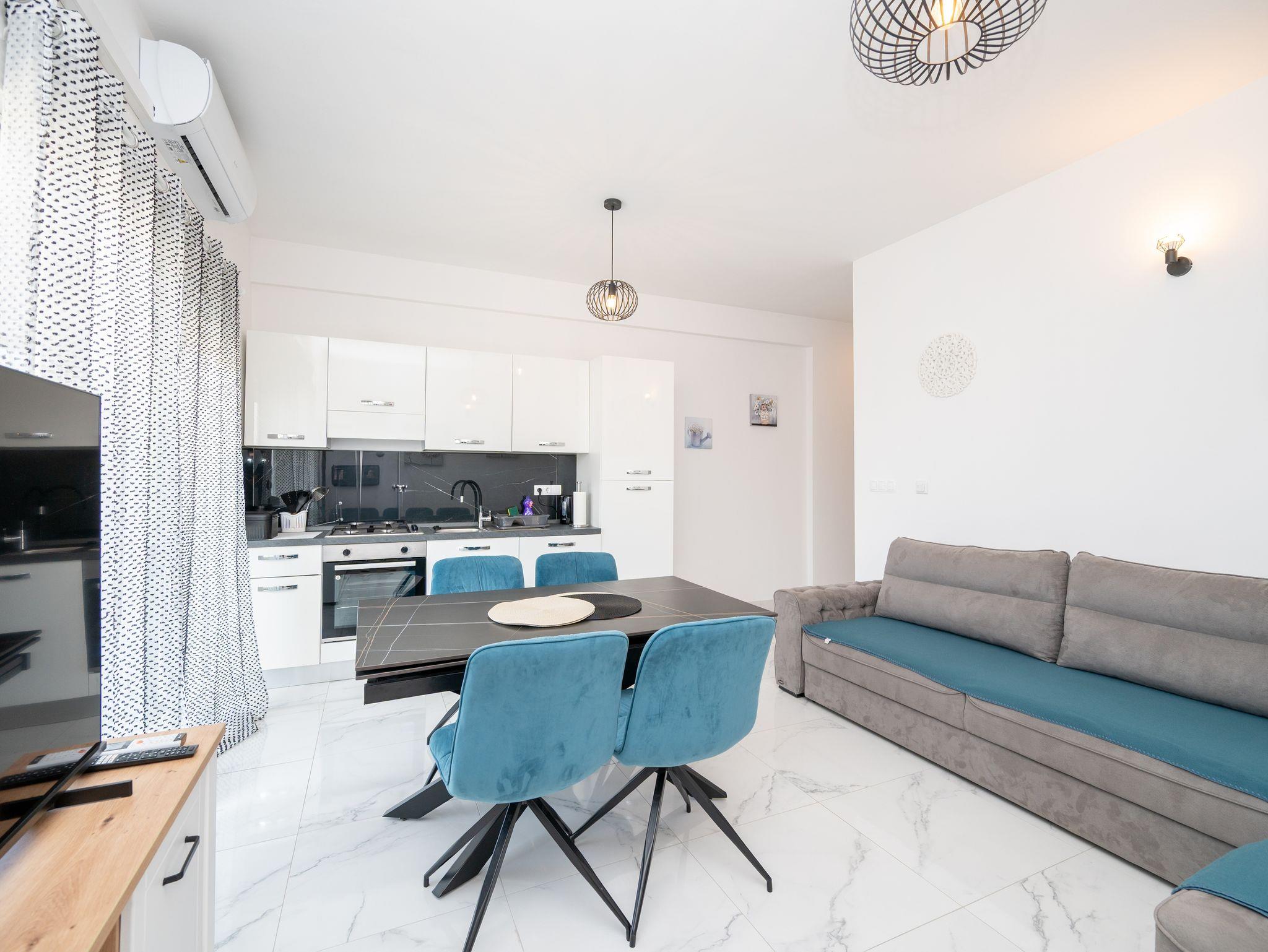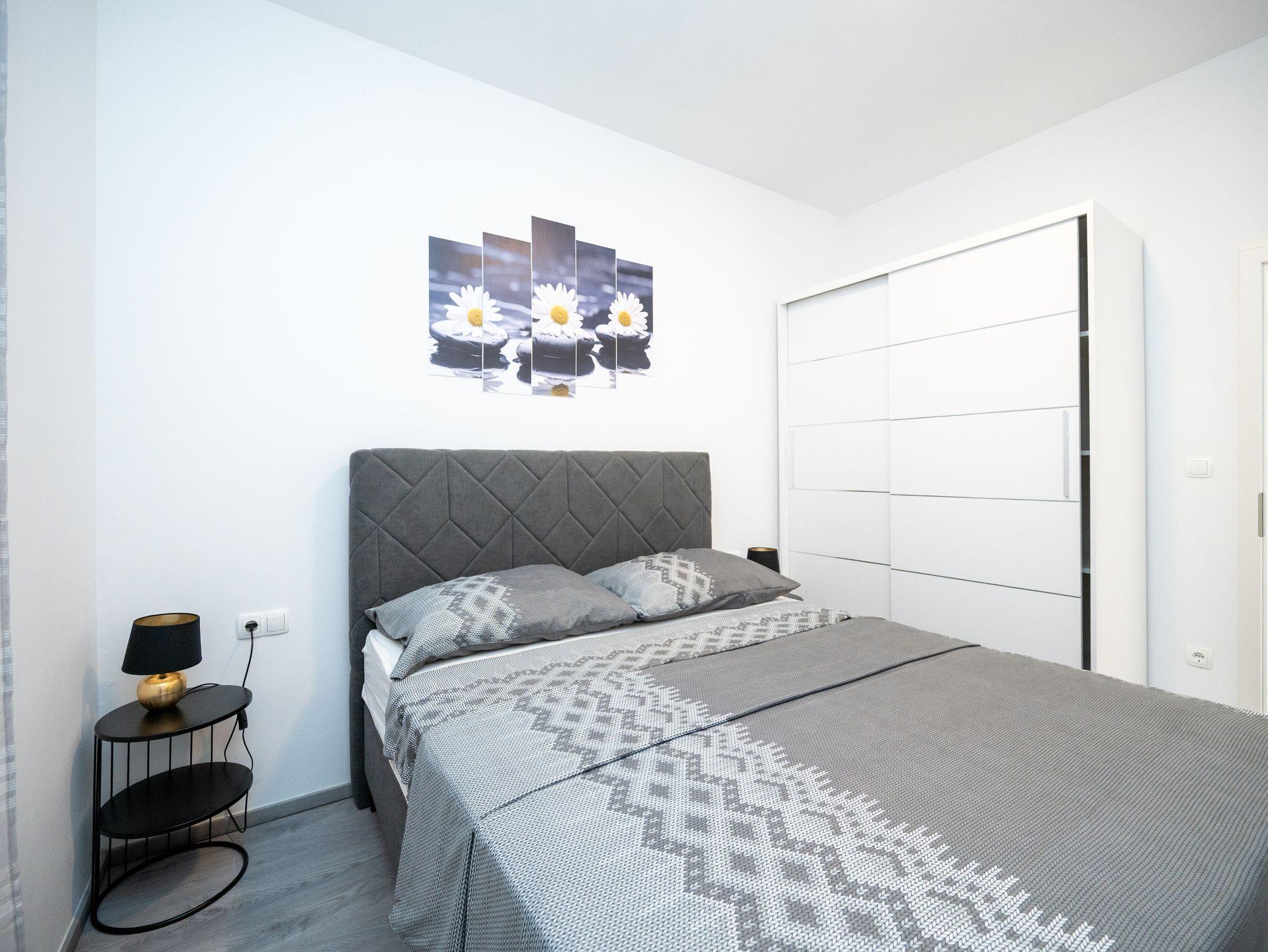 Ferienwohnung bietet Platz für 4 Gäste. Die Betten sind in Schlafzimmern, die es 2 gibt, innerhalb einer Gesamtfläche von 55m2, angeordnet. Die Gäste haben einen eigenen Balkon zur Verfügung, auf der sie in warmen Sommernächten genießen können. IM PREIS INBEGRIFFEN: Kurtaxe, Endreinigung, Klimatisierung, Parkplatz, Internet, Bügeleisen, Bügelbrett, Föhn. Die Verfügbarkeit zusätzlicher Dienstleistungen in Ihrem reservierten Termin und die Preise derselben (falls nicht aufgeführt) müssen im Voraus überprüft werden. Zusätzliche Dienstleistungen die in der Zahlungsaufforderung nicht aufgeführt sind werden direkt beim Vermieter bezahlt, angenommen der Gast nutzt auch diese. Ermäßigung auf den Grundpreis: Gratistag 21=19 (bei einem Aufenthalt von 21 Tagen oder mehr erhalten Sie 2 Gratistage für den Aufenthalt bis 31.12.26).