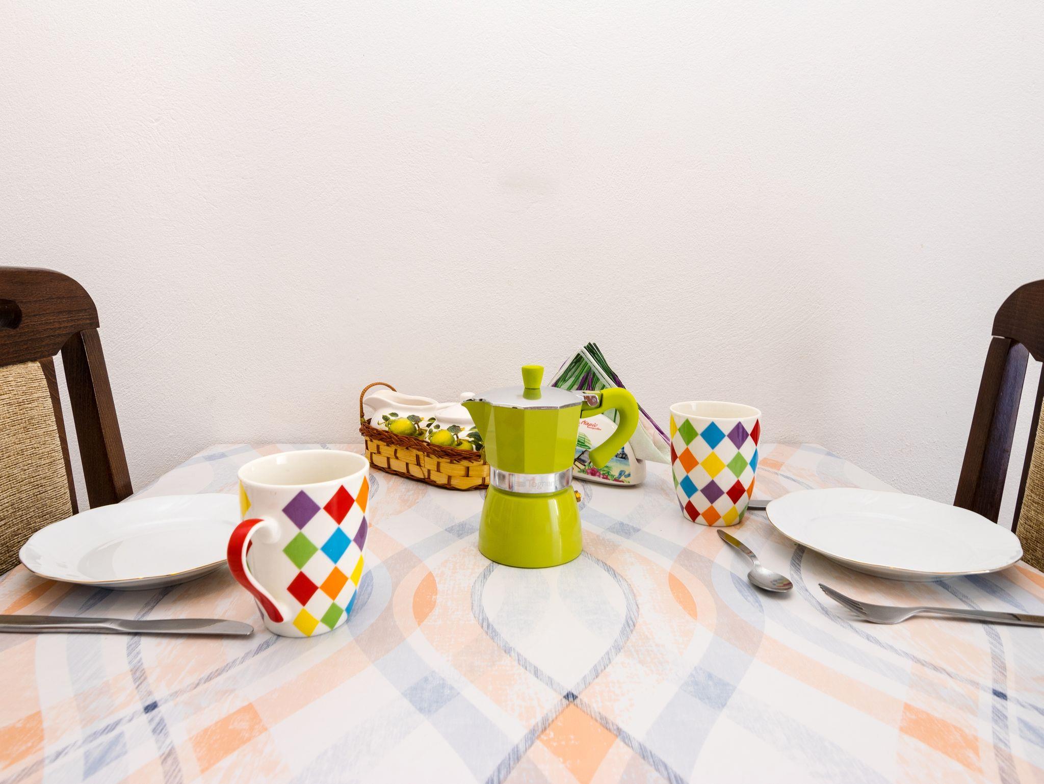 Hof (50m2, Sitzbereich), Parkplatz (Anzahl der Parkplätze: 6, Entfernung vom Objekt: im Hof), Grill: gemeinsam, WiFi Internet, Wäschewaschen, Föhn, Bügeleisen, Bügelbrett