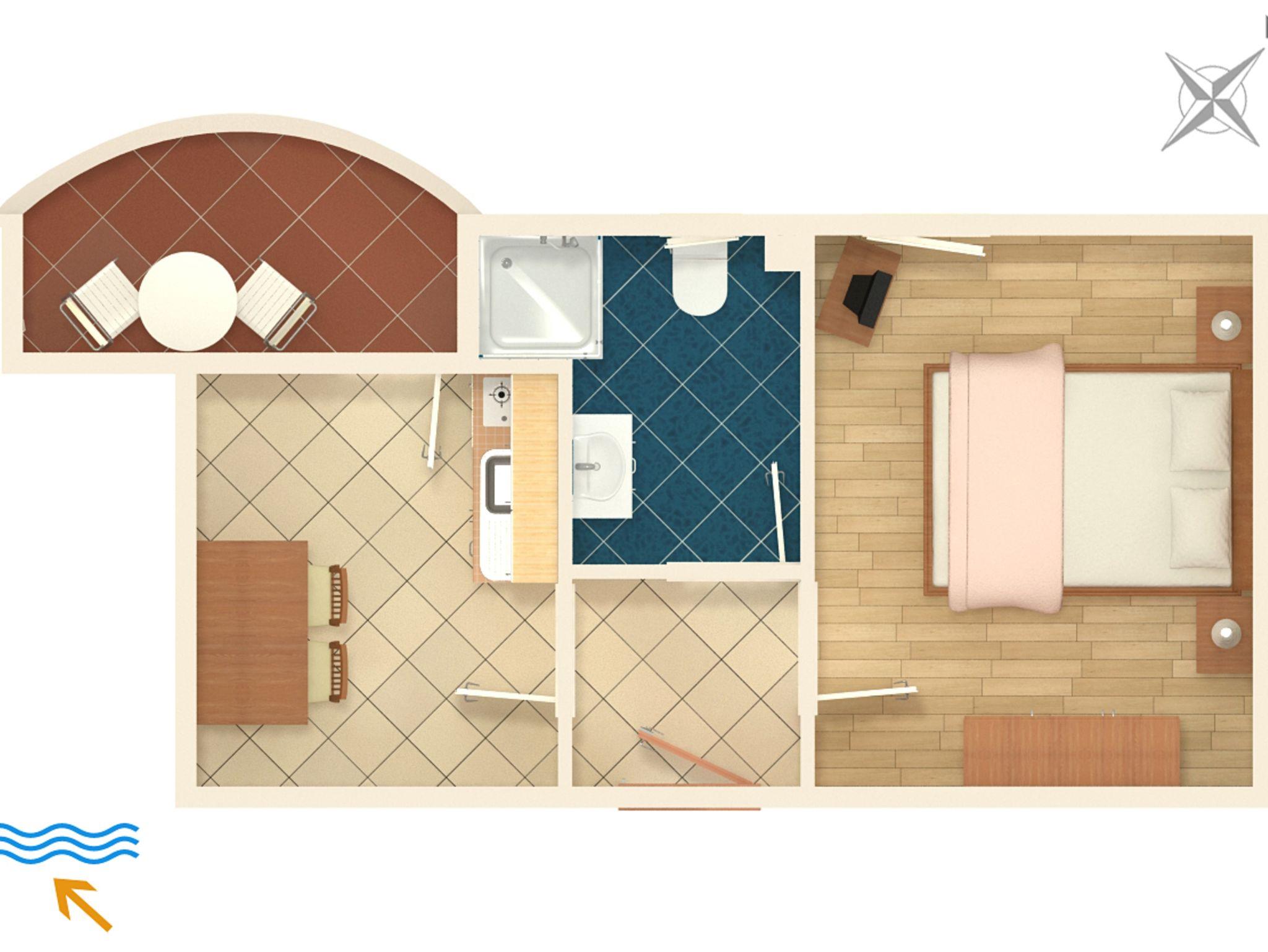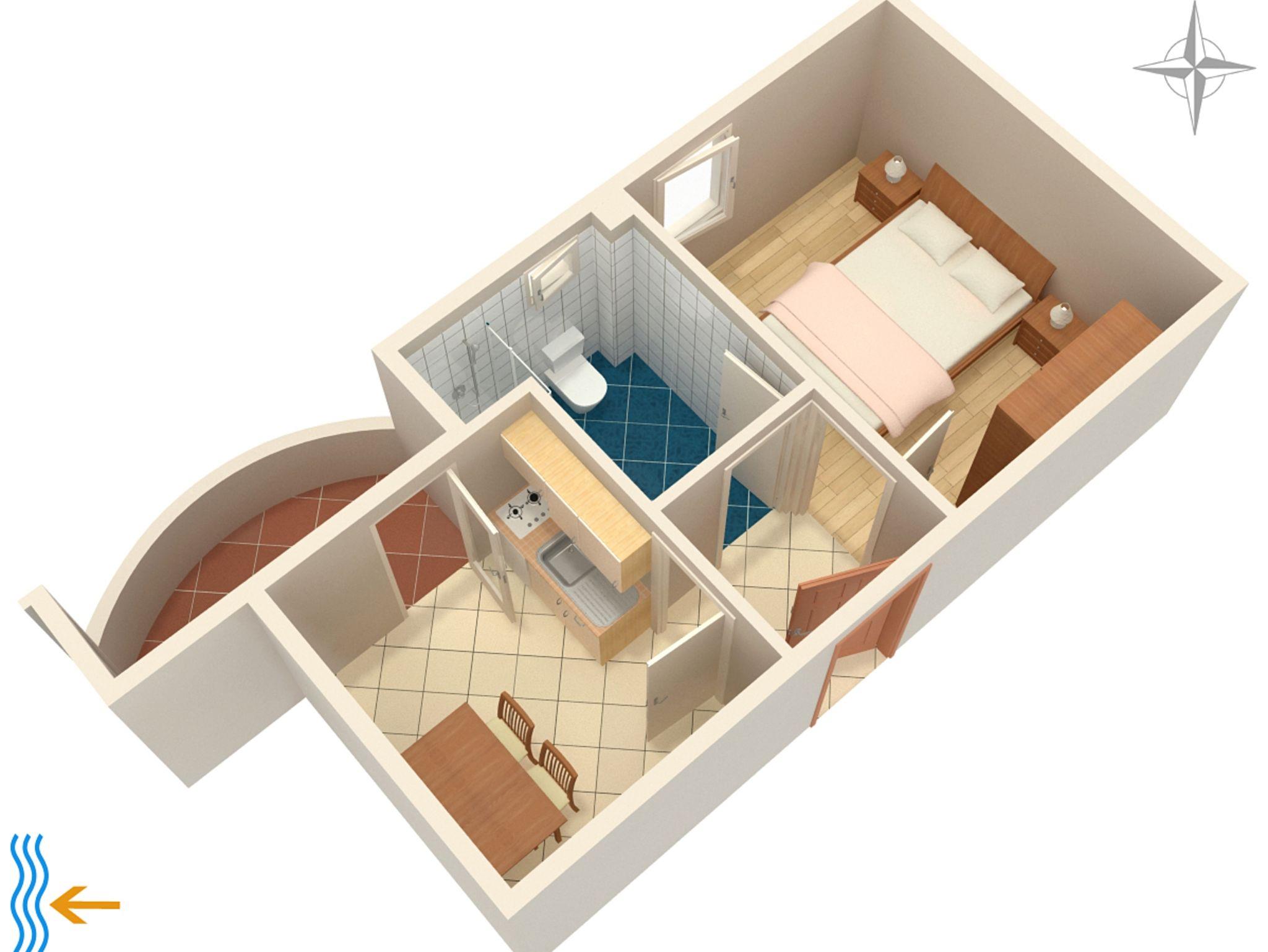 Ferienwohnung bietet Platz für 2 Gäste. Die Betten sind in Schlafzimmern, die es 1 gibt, innerhalb einer Gesamtfläche von 25m2, angeordnet. Die Gäste haben eine eigene Terrasse zur Verfügung, auf der sie in warmen Sommernächten genießen können. Es ist erlaubt, Speisen auf dem Gemeinschafts-Grill vorzubereiten. IM PREIS INBEGRIFFEN: Kurtaxe, Endreinigung, Klimatisierung, Parkplatz, Internet, Bügeleisen, Bügelbrett, Föhn. VERBINDLICHE ZUSÄTZLICHE KOSTEN: Aufzahlung für Kurzaufenthalte (prozentualer Zuschlag pro Nächtigungsanzahl: 30% - 1, 20% - 2, 10% - 3). UNVERBINDLICHE ZUSÄTZLICHE KOSTEN: Wäschewaschen (5,00 € Waschen). Die Verfügbarkeit zusätzlicher Dienstleistungen in Ihrem reservierten Termin und die Preise derselben (falls nicht aufgeführt) müssen im Voraus überprüft werden. Zusätzliche Dienstleistungen die in der Zahlungsaufforderung nicht aufgeführt sind werden direkt beim Vermieter bezahlt, angenommen der Gast nutzt auch diese.
