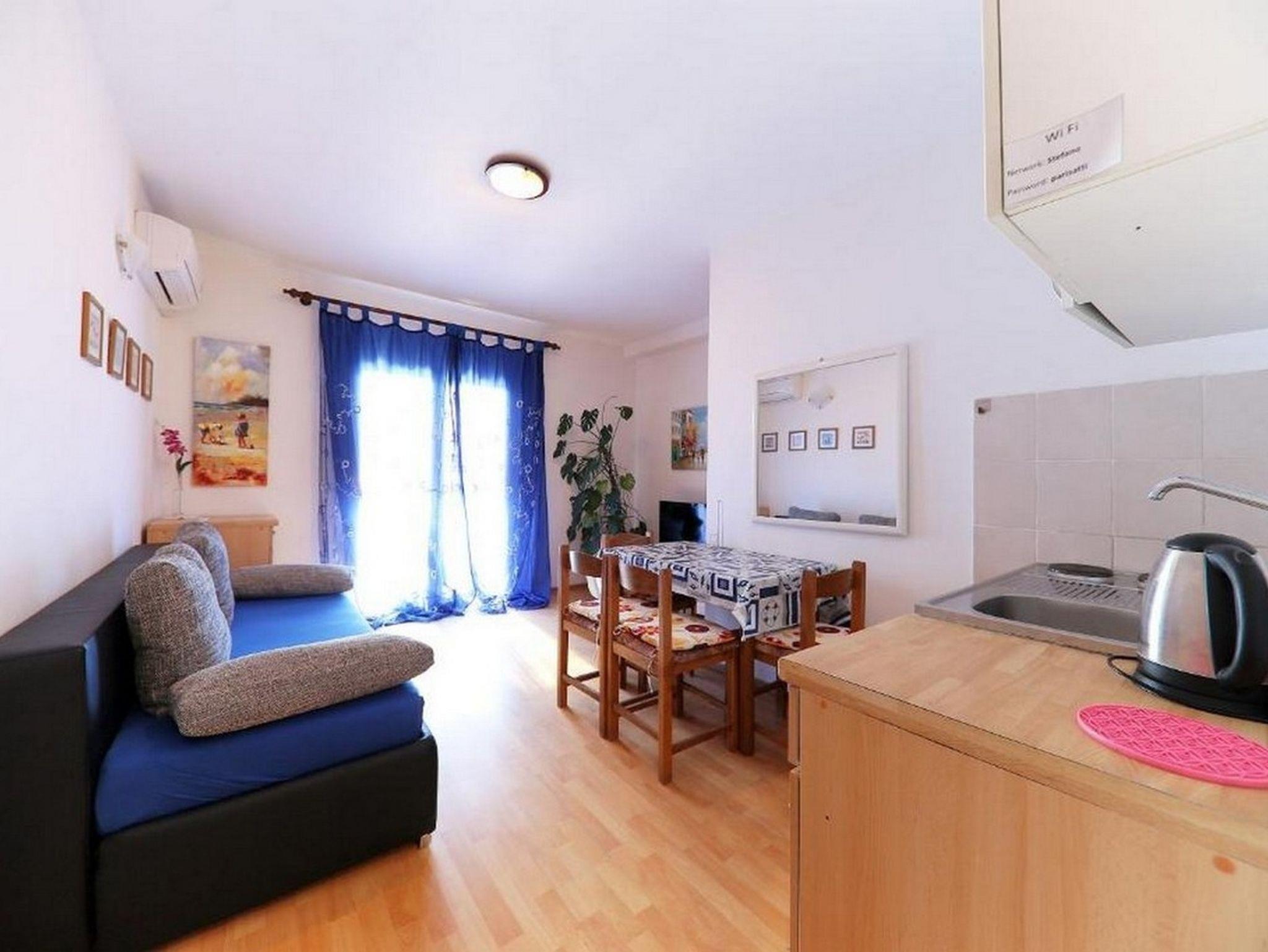 Ferienwohnung bietet Platz für 4 Gäste. Die Betten sind in Schlafzimmern, die es 2 gibt, innerhalb einer Gesamtfläche von 45m2, angeordnet. Die Gäste haben eine eigene Terrasse zur Verfügung, auf der sie in warmen Sommernächten genießen können. Das Apartment bietet Meerblick. IM PREIS INBEGRIFFEN: Kurtaxe, Endreinigung, Klimatisierung, Parkplatz, Internet. VERBINDLICHE ZUSÄTZLICHE KOSTEN: Aufzahlung für Kurzaufenthalte (prozentualer Zuschlag pro Nächtigungsanzahl: 30% - 1, 20% - 2, 10% - 3). UNVERBINDLICHE ZUSÄTZLICHE KOSTEN: Zusatzbett (10,00 € pro Nacht). Die Verfügbarkeit zusätzlicher Dienstleistungen in Ihrem reservierten Termin und die Preise derselben (falls nicht aufgeführt) müssen im Voraus überprüft werden. Zusätzliche Dienstleistungen die in der Zahlungsaufforderung nicht aufgeführt sind werden direkt beim Vermieter bezahlt, angenommen der Gast nutzt auch diese.
