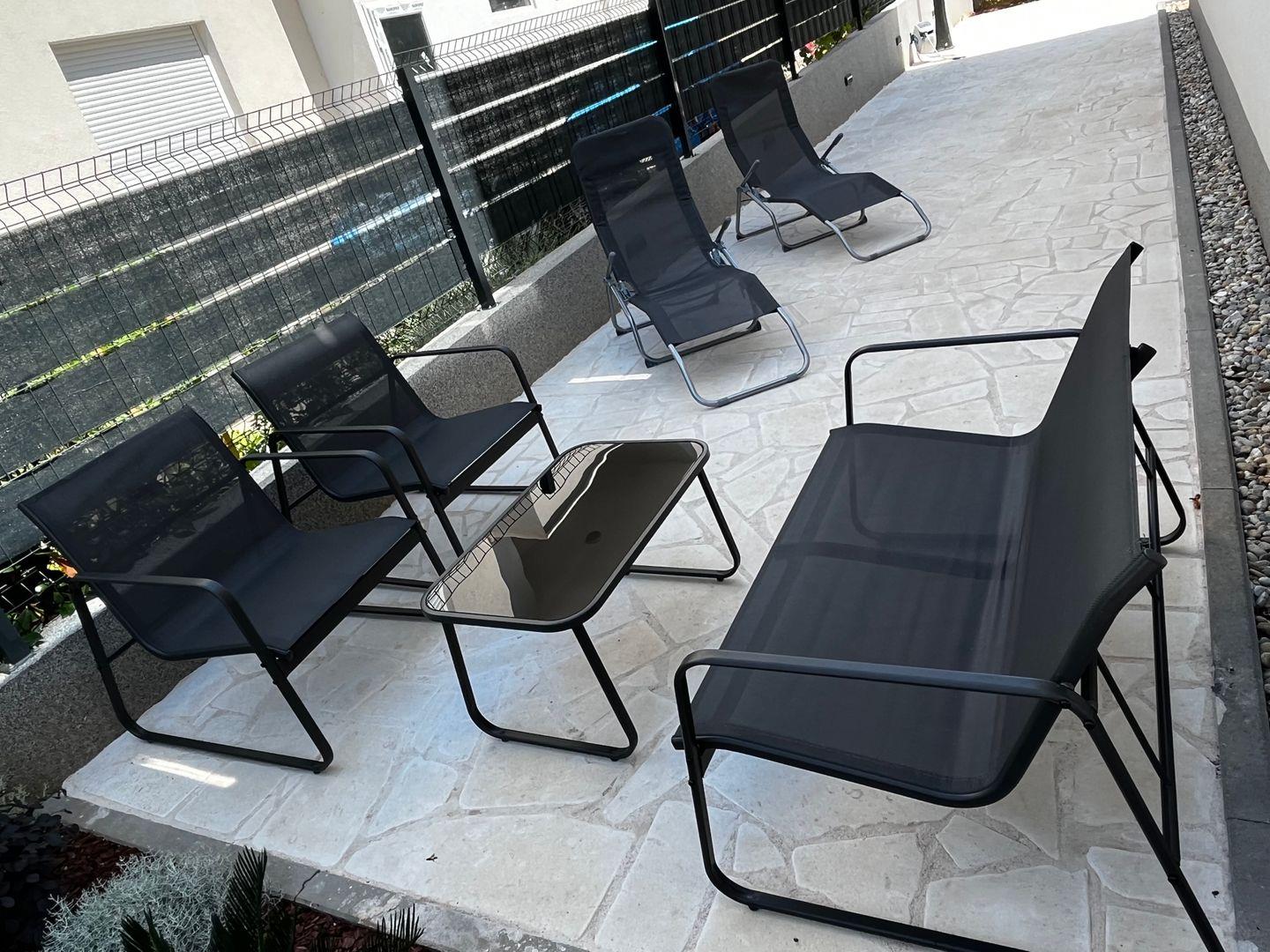 Ein echtes Highlight sind die beiden Außenbereiche: die möblierte Terrasse mit Außendusche und der Balkon bieten viel Platz für sonnige Stunden, entspannte Abende oder ein Frühstück im Freien – umgeben von Ruhe, frischer Meeresluft und mediterranem Flair.