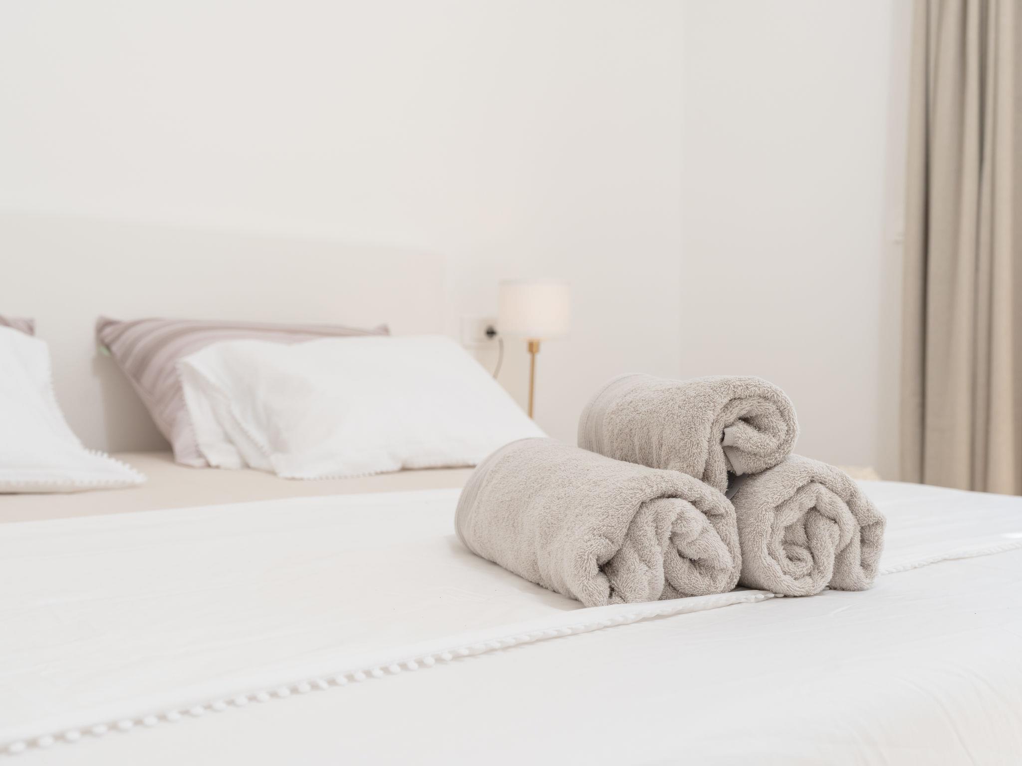 5-room villa 150 m2, south-west facing position. In 2025, modern furnishings: living/dining room 40 m2 with satellite TV (flat screen), air conditioning. Exit to the terrace. 1 room with 1 french bed (160 cm, length 200 cm), air conditioning. 2 rooms, each room with 1 french bed (160 cm, length 200 cm), air conditioning. 1 room with 1 french bed (180 cm, length 200 cm), air conditioning. Exit to the terrace. Open kitchen (oven, dishwasher, 2 ceramic glass hob hotplates, 2 gas rings, kettle, microwave, freezer, electric coffee machine). 2 showers/WC, sep. WC. No heating option. 2 terraces 25 m2. Terrace furniture, deck chairs. View of the swimming pool. Facilities: safe, hair dryer. Internet (WiFi, free).