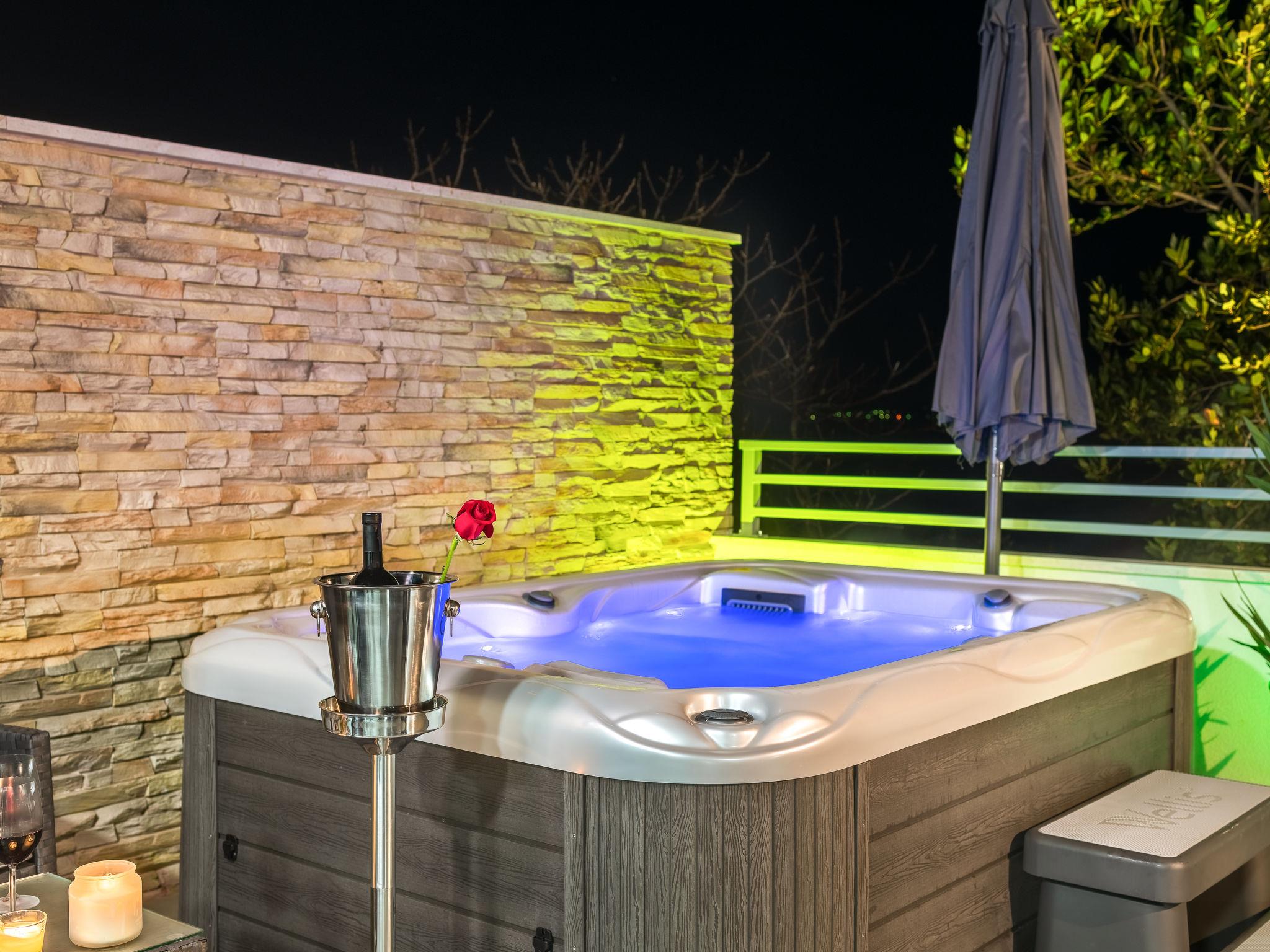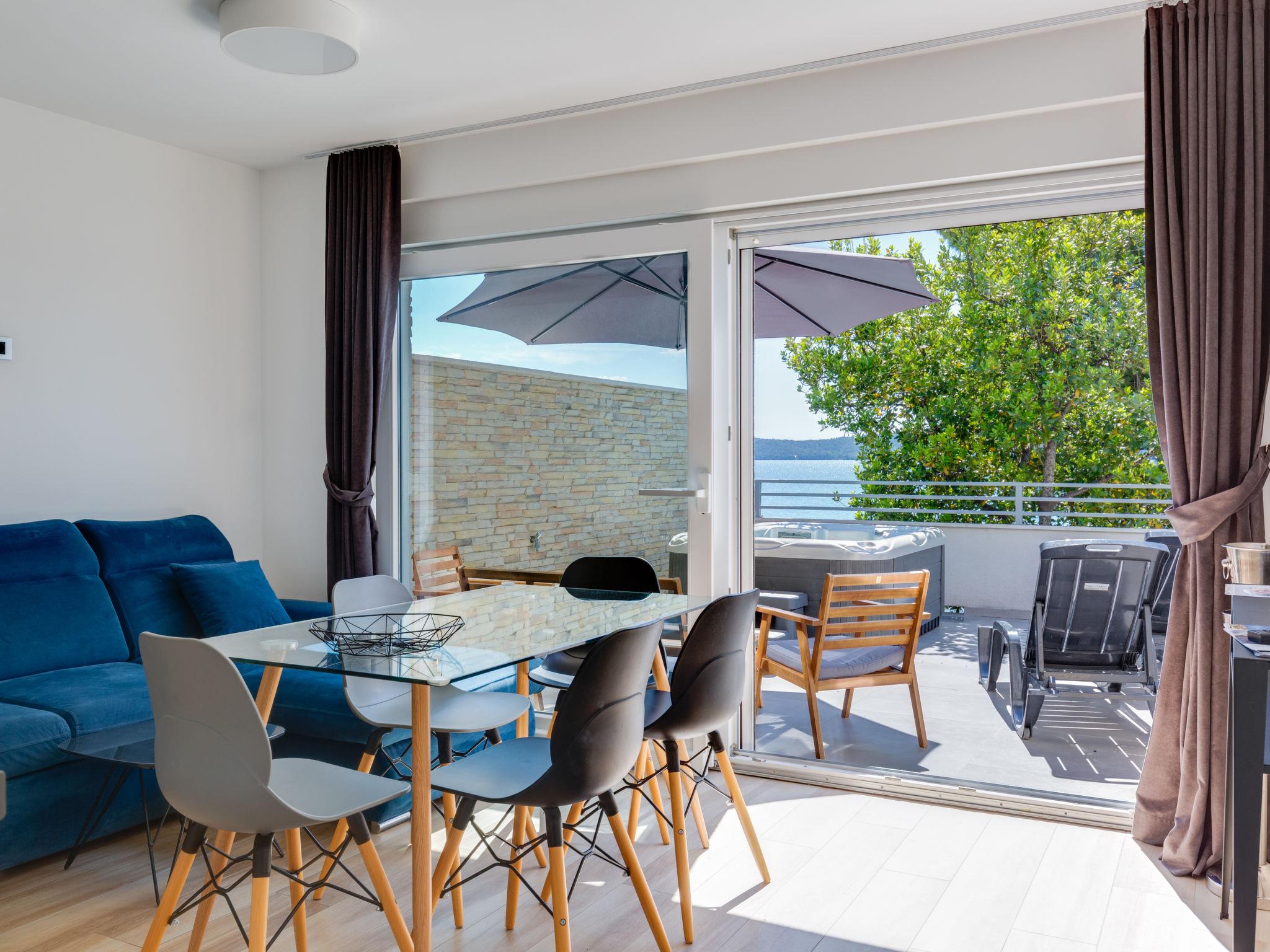 Modern apartment house "Sun & Salt". 1.1 km from the centre of Bibinje, 7 km from the centre of Zadar, in a sunny position, 15 m from the sea, 15 m from the beach, direct access to the beach. For shared use: property (fenced). Private: hot tub. In the house: internet access. Parking at the house on the premises. Shop 750 m, restaurant 1.1 km, bus stop 2.3 km, pebble beach 15 m. Please note: airfield 9 km from the property.