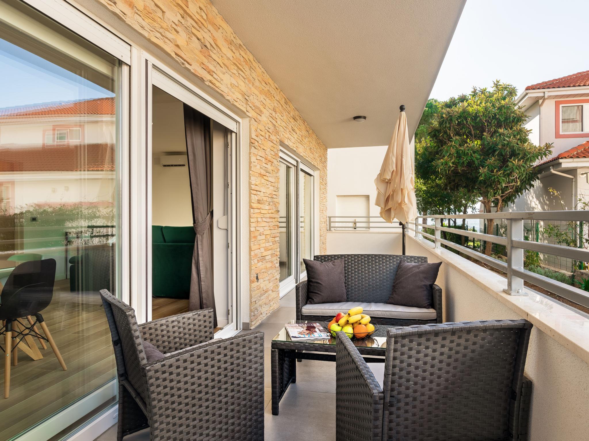 "Picigin", 3-room apartment 69 m2, on the ground floor. Tasteful furnishings: living/dining room with 1 double sofabed (120 cm, length 200 cm), satellite TV (flat screen), air conditioning. Exit to the terrace. 2 rooms, each room with 1 french bed (180 cm, length 200 cm). Open kitchen (dishwasher, 2 ceramic glass hob hotplates, kettle, microwave, freezer). 2 showers/WC. No heating option. Terrace 20 m2, roofed. Terrace furniture. Facilities: safe, iron, mosquito net, hair dryer. Internet (WiFi, free).