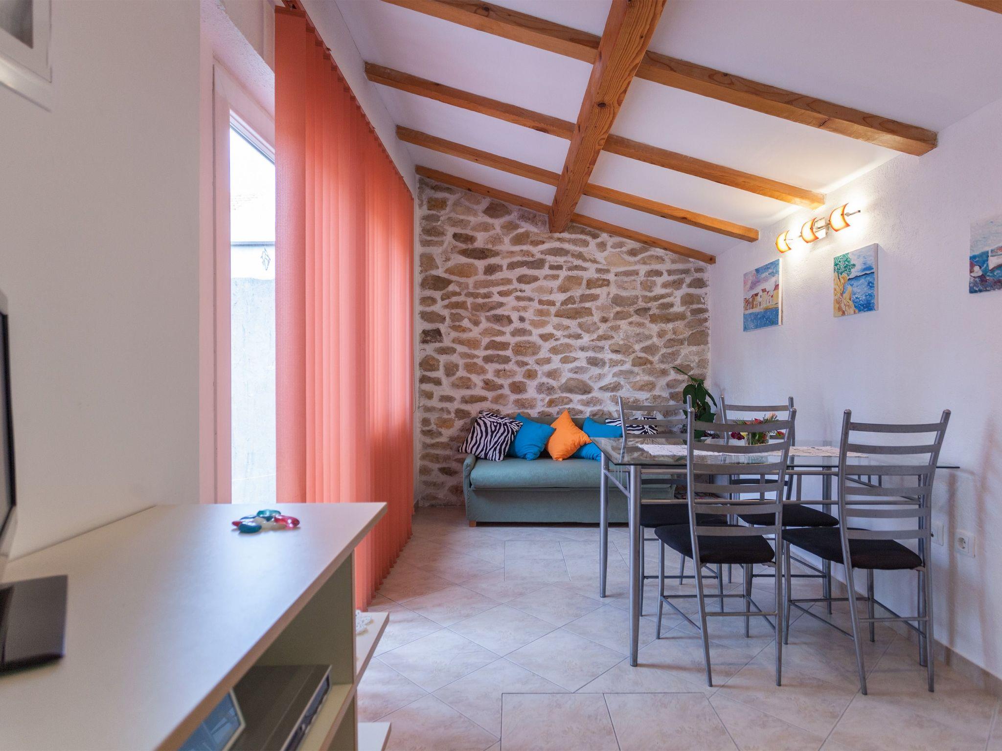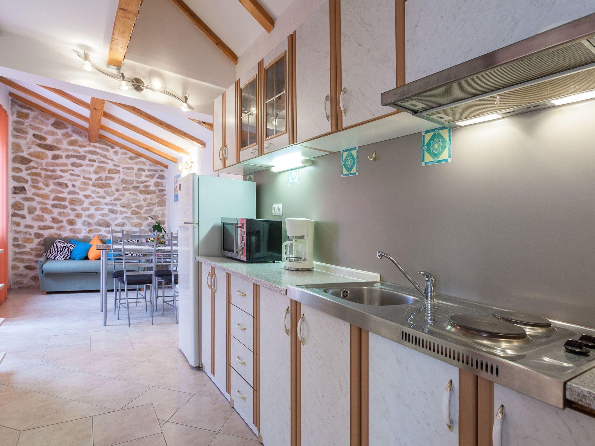 There are restaurants, open and close markets 200-500 m far from the house. There are several beaches 100-200 m far away, but you can easily access the sea just 20 m far from the house, because the house is in the old center, in the middle of a penninsula, so you are practically sorrounded with the sea, and there is first suitable entrance just around the corner.