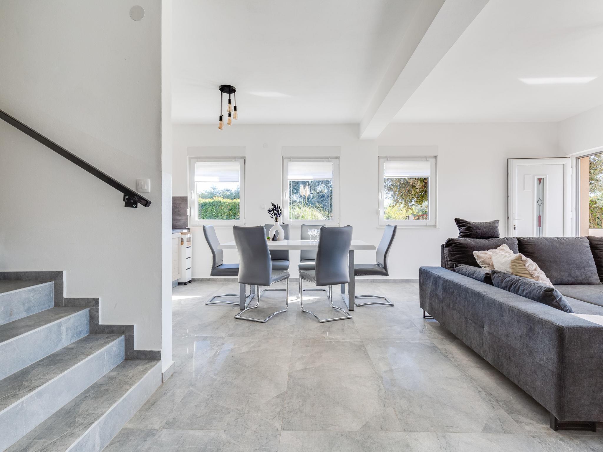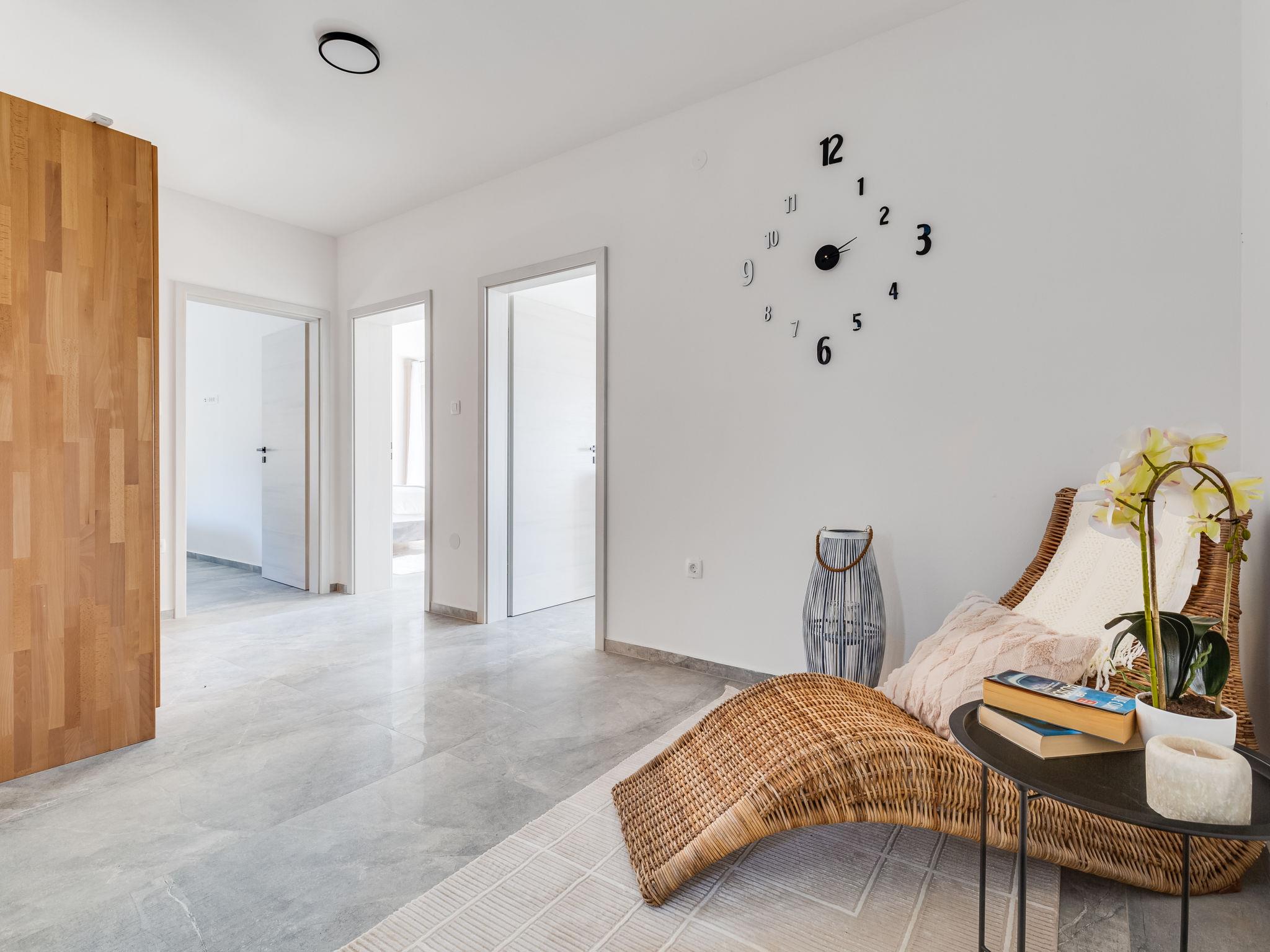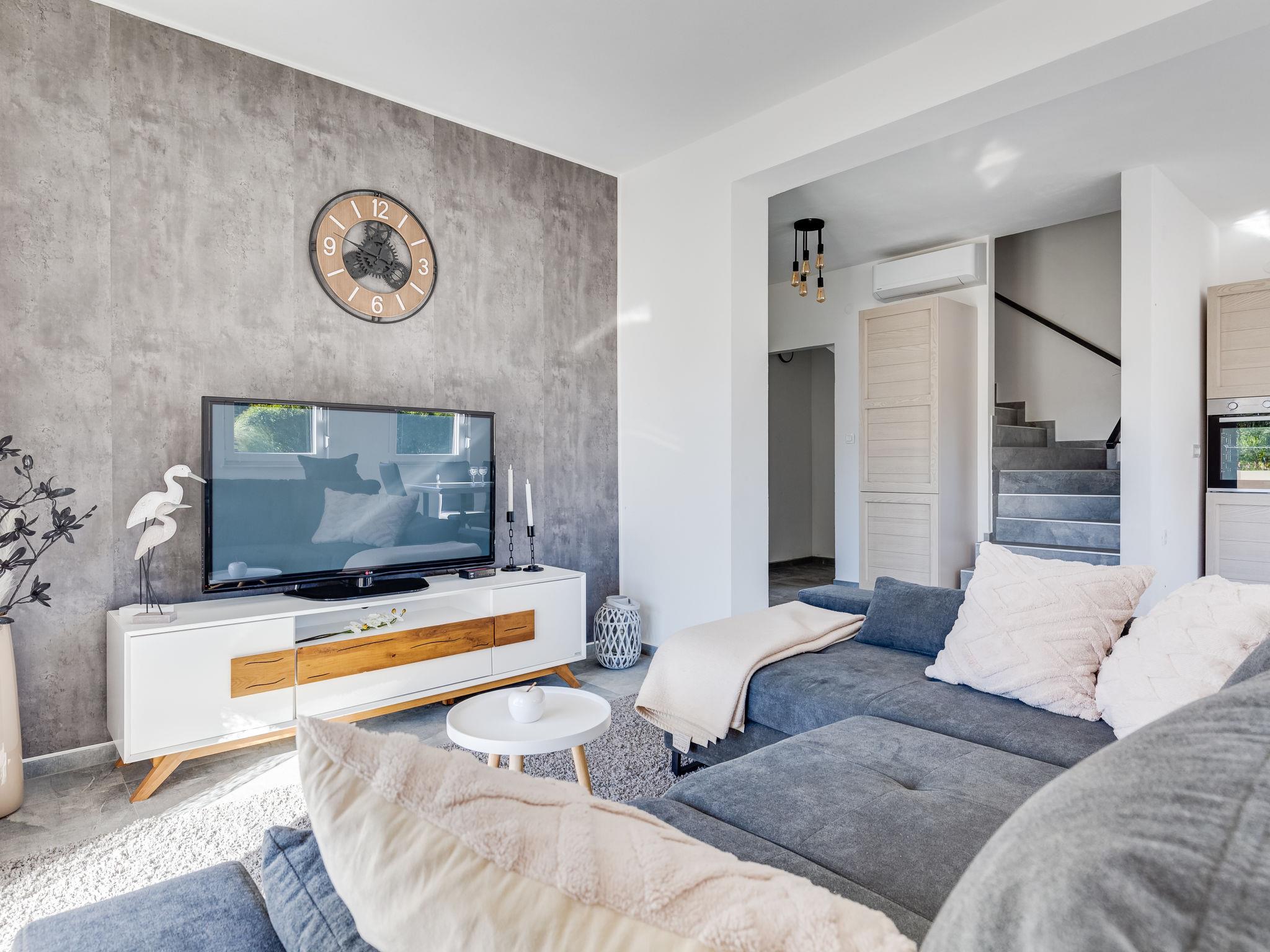 Modern terraced house "Aria", 2 storeys, built in 2024. 900 m from the centre of Sukošan, 11 km from the centre of Zadar, in a sunny position, 1.2 km from the sea, 1.5 km from the beach. For shared use: property 500 m2, lawn, swimming pool (8 x 4 m, depth 150 cm, seasonal availability: 01.May. - 01.Oct.). Outdoor shower. In the house: internet access, washing machine. Parking (for 3 cars) at the house on the premises. Shop 700 m, supermarket 750 m, restaurant 700 m, bus stop 750 m, sandy beach 1.5 km. Marina 1.7 km. Please note: airfield 8 km from the property.