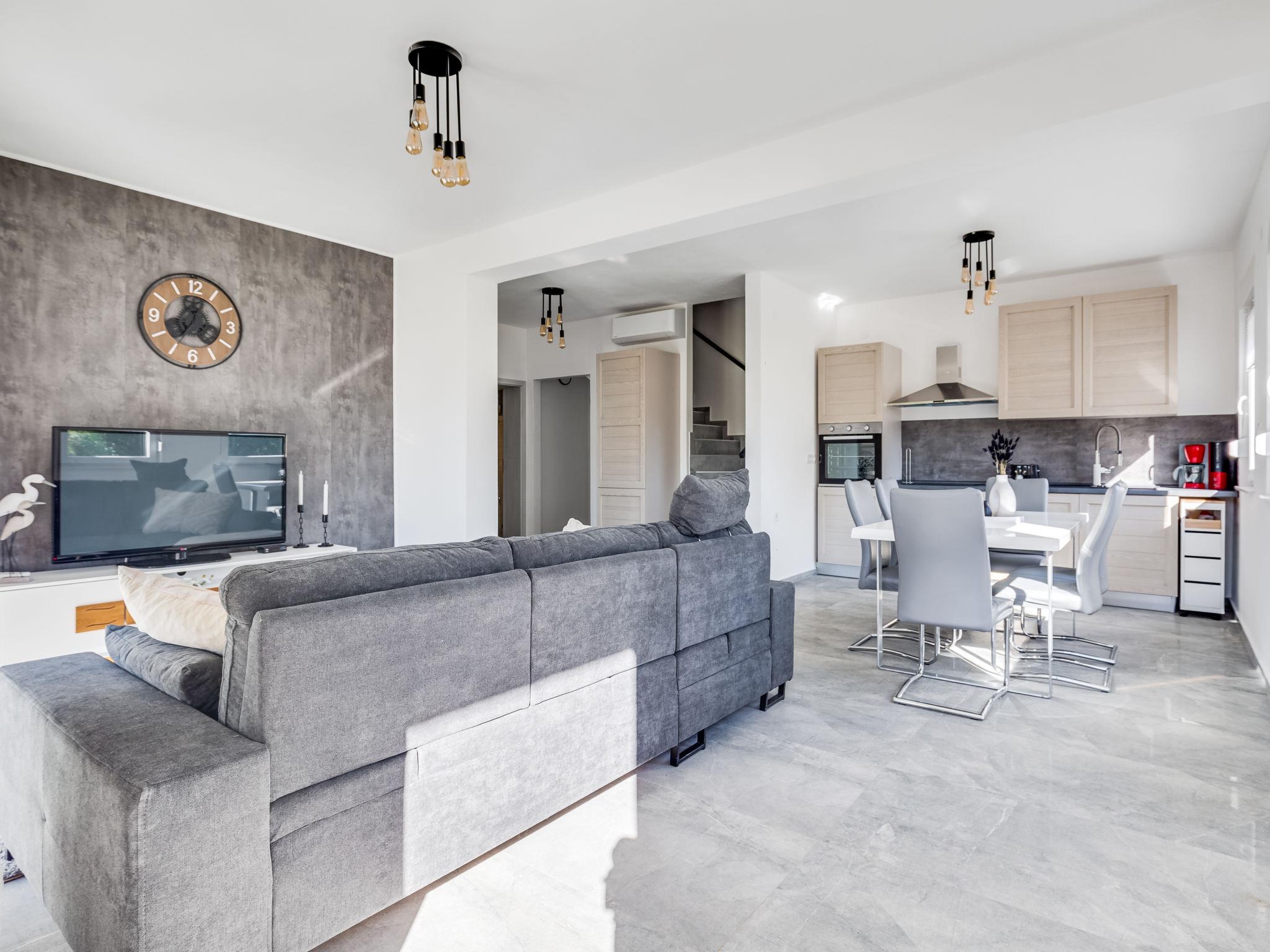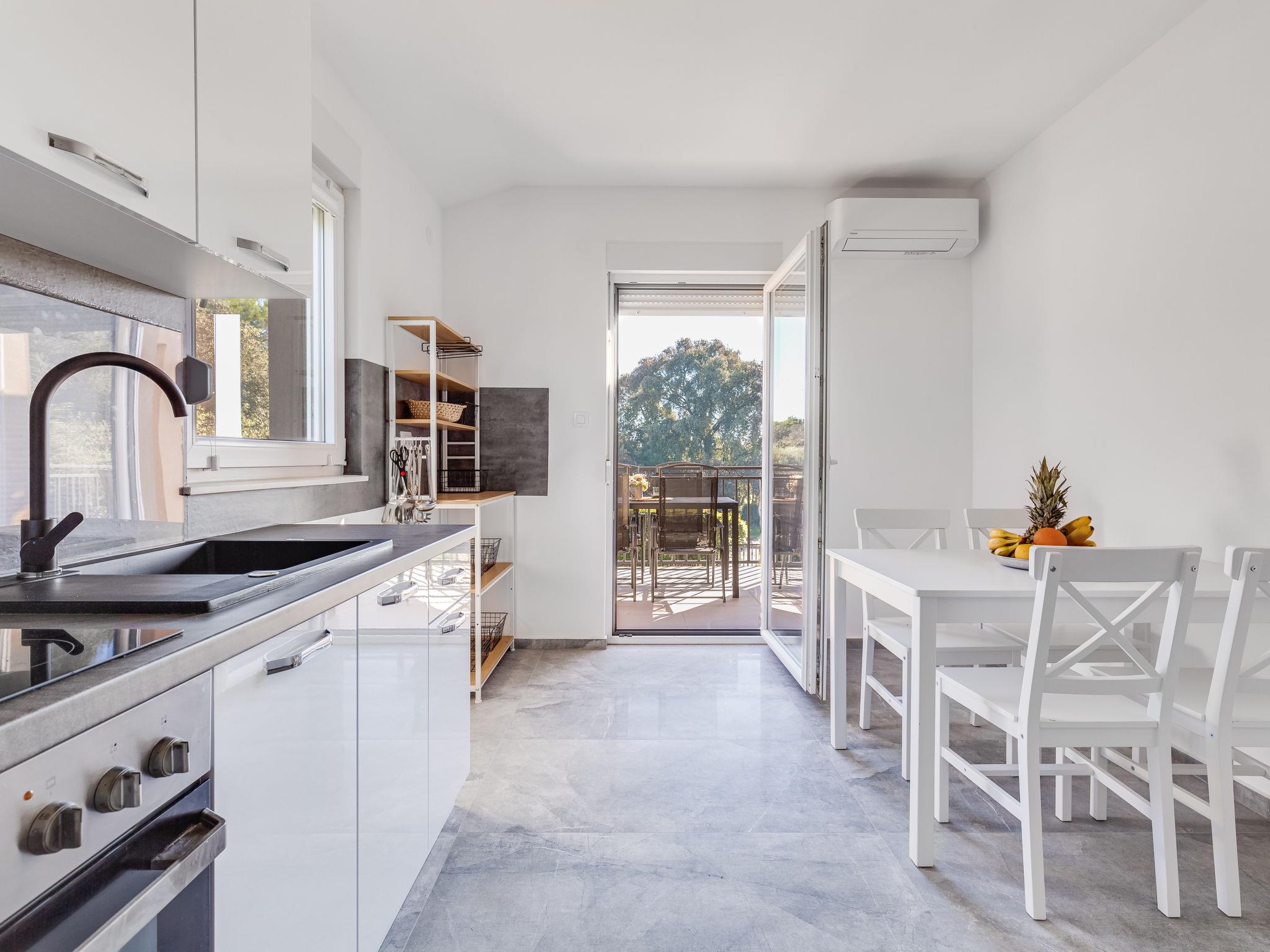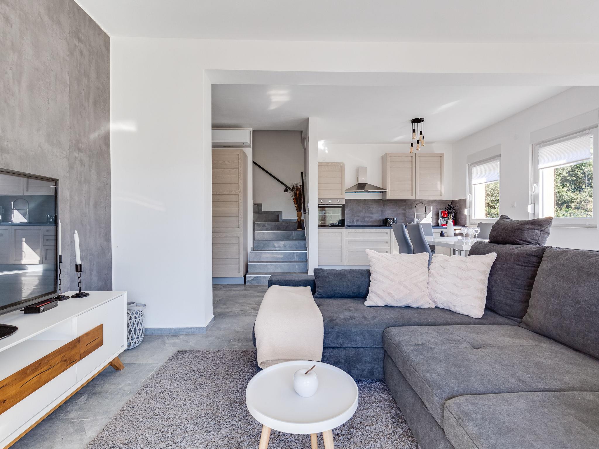 Modern terraced house "Aria", 2 storeys, built in 2024. 900 m from the centre of Sukošan, 11 km from the centre of Zadar, in a sunny position, 1.2 km from the sea, 1.5 km from the beach. For shared use: property 500 m2, lawn, swimming pool (8 x 4 m, depth 150 cm, seasonal availability: 01.May. - 01.Oct.). Outdoor shower. In the house: internet access, washing machine. Parking (for 3 cars) at the house on the premises. Shop 700 m, supermarket 750 m, restaurant 700 m, bus stop 750 m, sandy beach 1.5 km. Marina 1.7 km. Please note: airfield 8 km from the property.