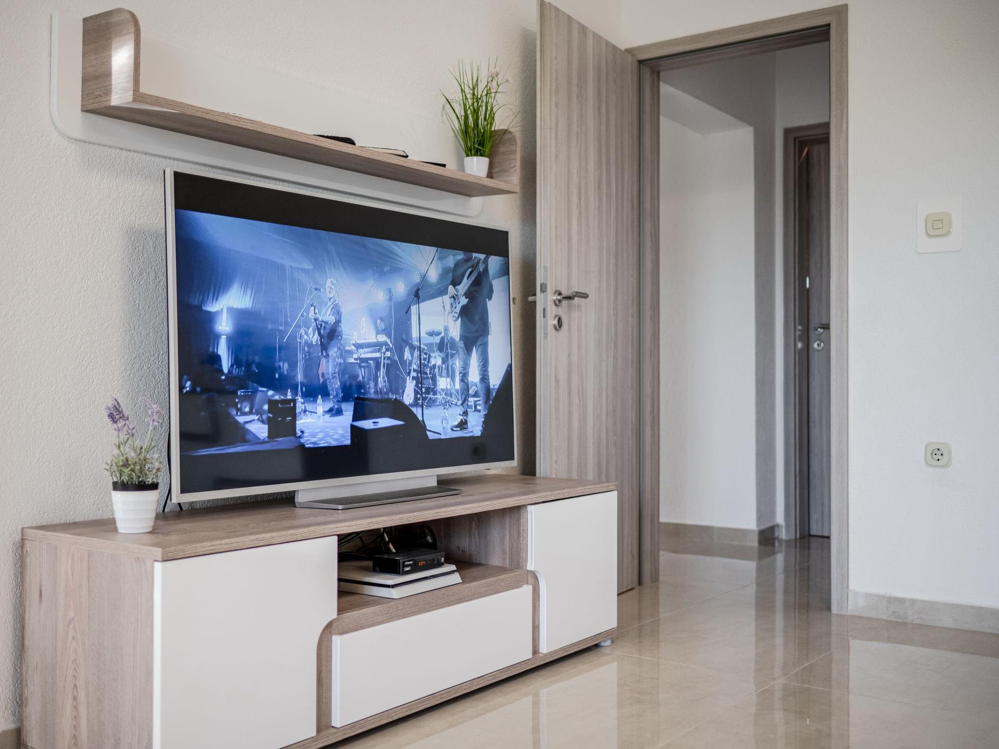 4-room house 100 m2. Comfortable furnishings: living/dining room with 1 sofabed (140 cm, length 200 cm), satellite TV (flat screen), air conditioning. Exit to the terrace. 3 rooms, each room with 1 french bed (180 cm, length 200 cm). Open kitchen (oven, dishwasher, 4 ceramic glass hob hotplates, kettle, freezer, electric coffee machine). Sep. WC, bath/shower/WC. Terrace 18 m2, roofed. Terrace furniture. Facilities: washing machine, baby cot. Internet (WiFi, free). Available: playstation 5 (included). UP/I-335-02/24-02/3887