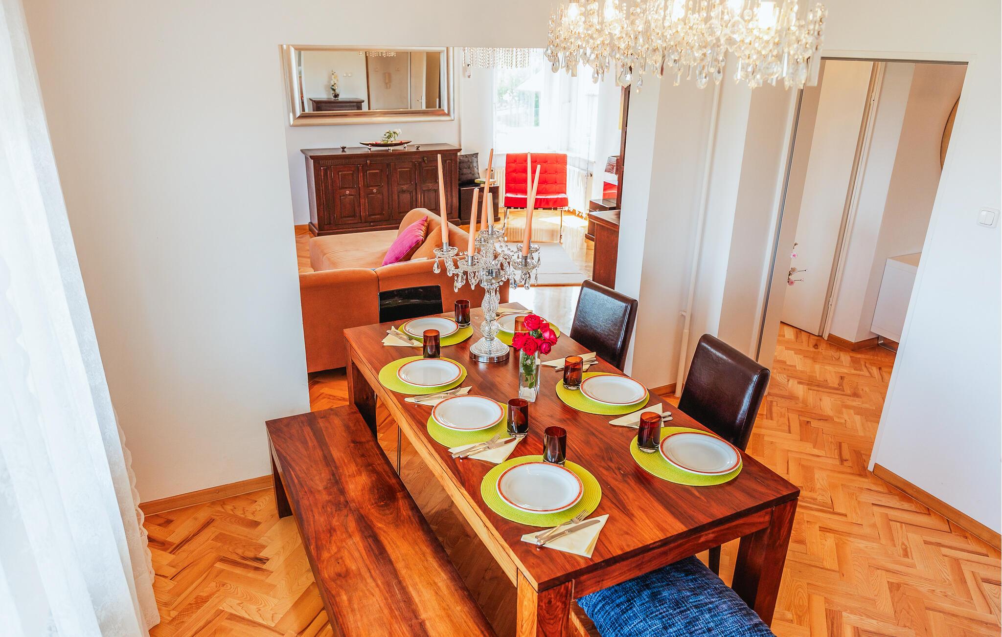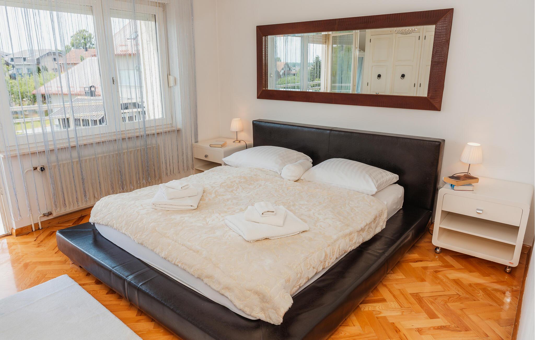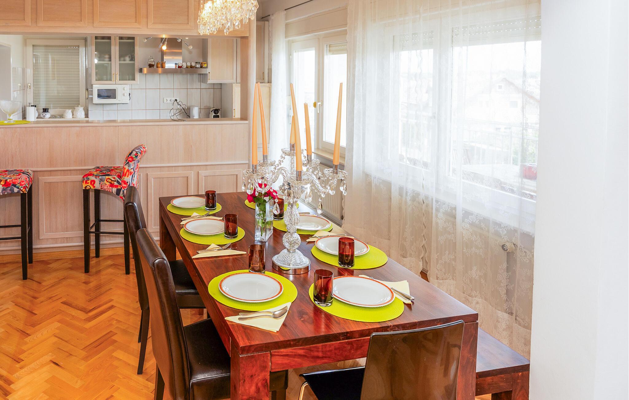 Ikke langt fra den pulserende by Zagreb inviterer dette veludstyrede feriehus jer til en solrig ferie med venner eller familie. Gør ferieretterne klar i det moderne, fuldt udstyrede køkken og tag plads ved det stilfulde spisebord. Om aftenen kan I føle jer godt tilpas på det store sofaområde, streame en spændende serie eller arrangere en spilleaften.