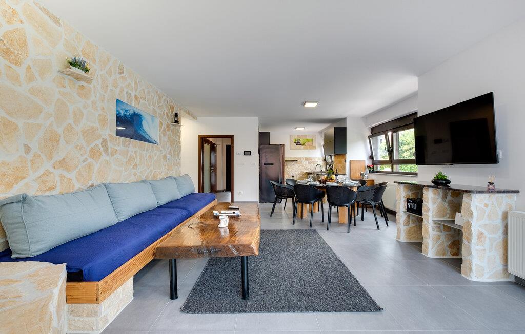 Dette vennefamilielige feriehus i Jakovlje er noget særligt med moderne møbler og en indbydende atmosfære. Det åbne, komfortable køkken er ideelt til madlavningsaftener sammen, mens den lyse stue og den hyggelige spiseplads lægger op til en masse hyggestunder. Der tilbydes underholdning: det er ikke kun børnene, der kan have det sjovt med at spille videospil i spillelokalet, og fitnessrummet er tilgængeligt for aktive timer.