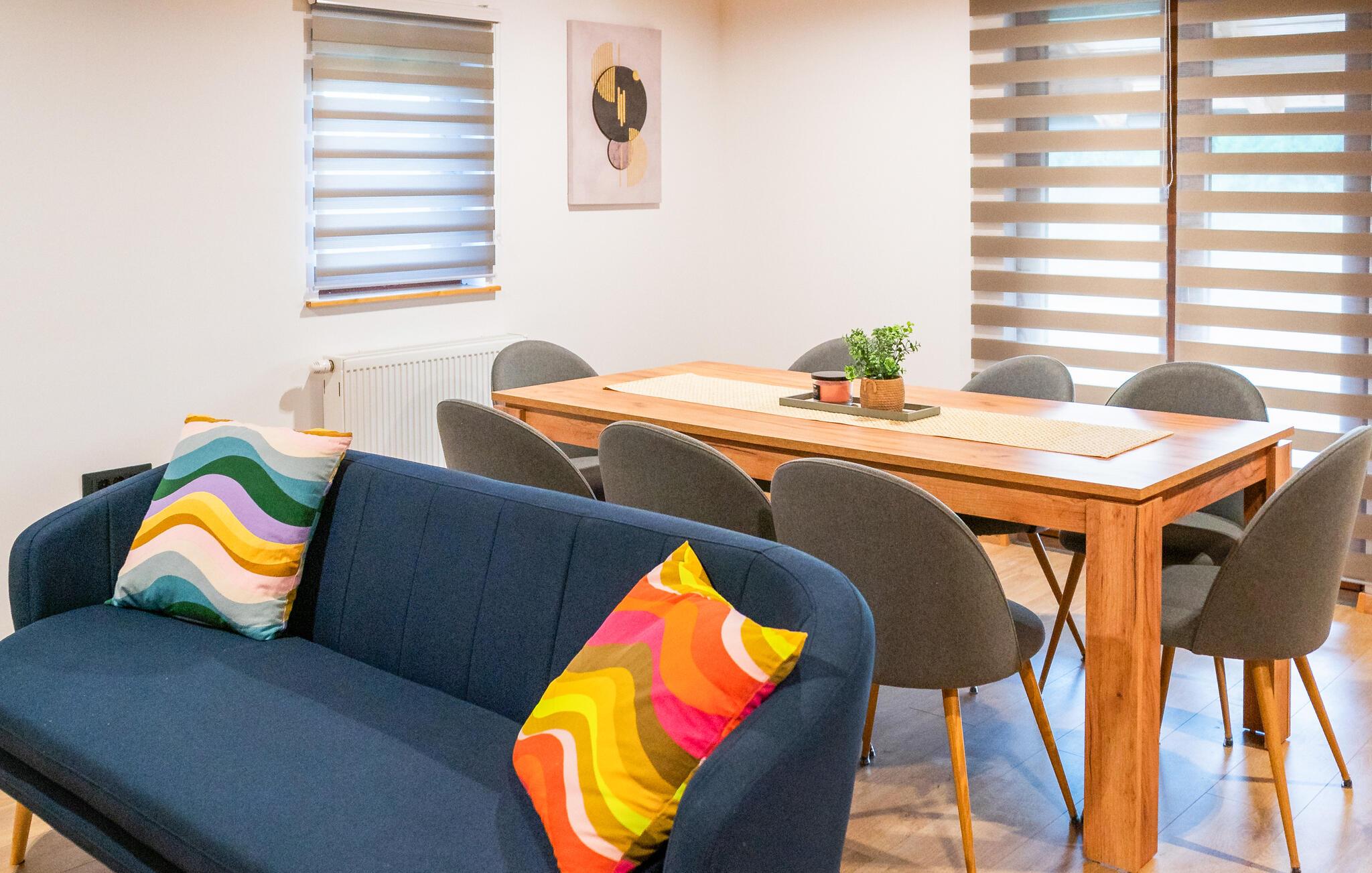 På en stor, børnevenlig grund ligger dette moderne og smagfulde feriehus, hvor I kan tilbringe uforglemmelige dage med familien. Tilbered kroatiske retter og find sammen omkring det indbydende spisebord, som er perfekt til sjove aftener med spil. Forkæl jer selv med afslappende øjeblikke i saunaen og fordyb jer i jeres ferielæsning på jeres yndlingssted.
