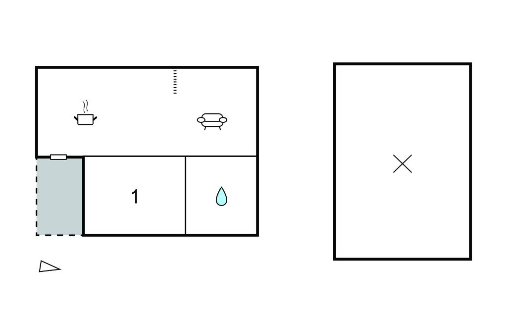 Opholdsstue 12m2 - 1 Soveplads. (Sofa, madras eller lignende).