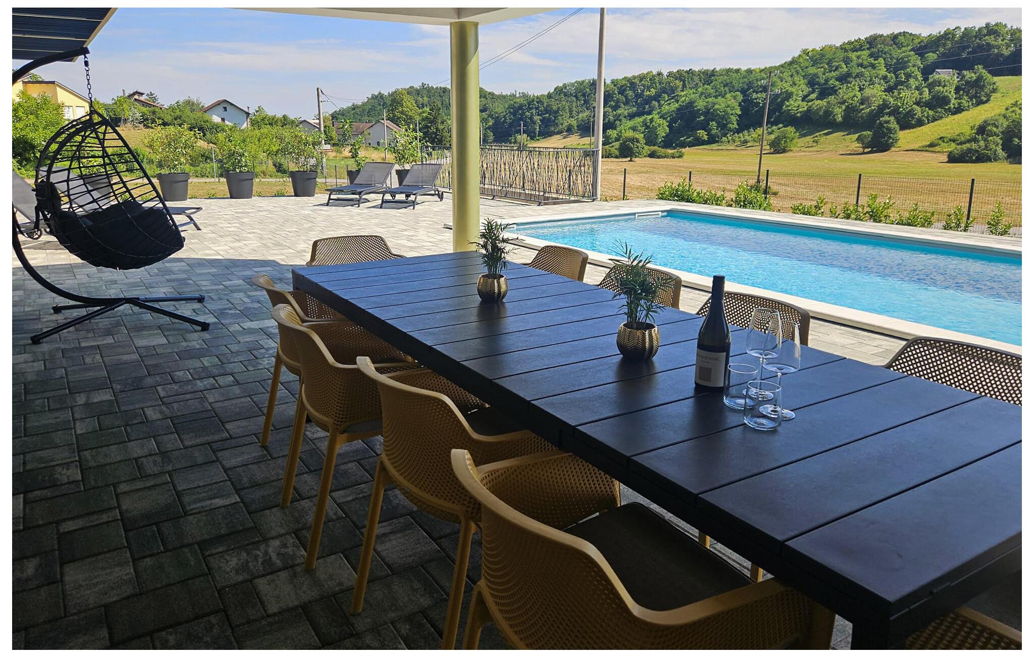 Tilbring uforglemmelige dage i dette idyllisk beliggende feriehus med pool. Nyd en afslappende ferie i et hus, der indbyder til at blive hængende med sit tidløse trælook og komfortable sofagruppe – ideelt til at genoplade batterierne. Lyt til jeres yndlingsmusik eller en spændende podcast, inden I tryller lækre måltider frem i det veludstyrede køkken. Afslut aftenen i ro og mag med en film, eller brug den rolige tid til at planlægge den næste feriedag. Start morgenen med at åbne gulv-til-loft-vinduerne og træde ud på den rummelige terrasse med en kop friskbrygget kaffe. Forfrisk jer selv i poolen, mens I nyder det idylliske landlige landskab. Afslut dagen med at slappe af med et godt glas vin, mens jeres børn morer sig på gyngerne og rutsjebanerne. Oplev det smukke landskab omkring Sveti Ivan Zelina med dets bølgende bakker, vinmarker og traditionelle landsbyer. Gå på vandretur eller cykeltur gennem det frodige, grønne landskab, og nyd regionale specialiteter på familiedrevne kroer. Besøg lokale vingårde, og smag autentiske kroatiske vine direkte fra vinproducenten. Eller tag en tur til havet, og forfrisk jer selv med en svømmetur i Adriaterhavet.