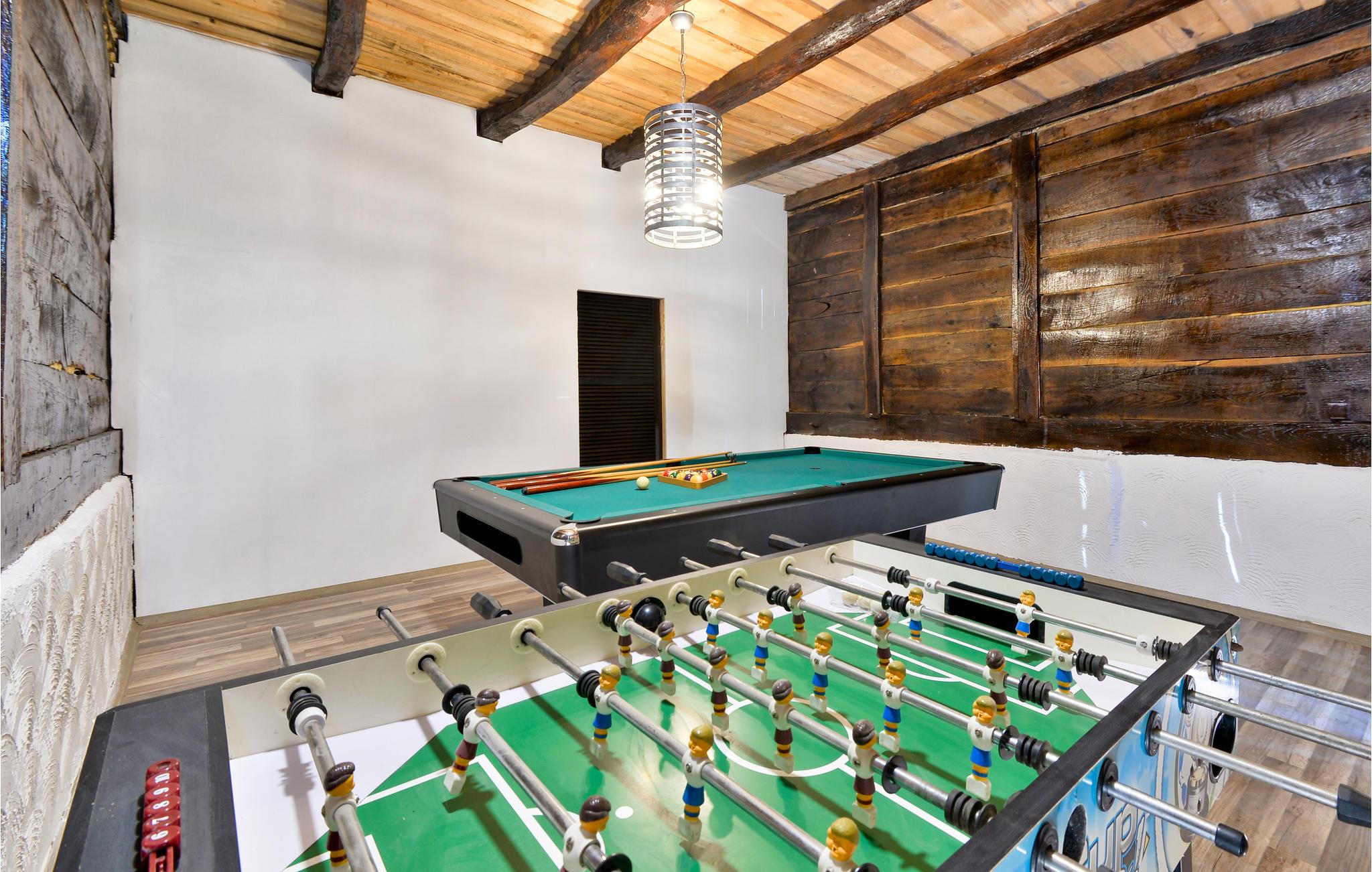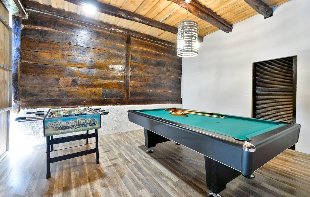I dette feriehus kan I tilbringe en afslappende ferie med wellness, hvorfra I vender hjem afslappede og med masser af gode minder. Husets traditionelle konstruktion afspejles også i dets indre. Massive træbjælker kan ses under loftet i de fleste rum, og rå murstensvægge er heller ikke ualmindelige. Den rustikke indretning passer til dette, hvilket giver huset ekstra hygge og charme. Takket være det børnevenlige anlæg med et aktivitetsrum, får alle familiemedlemmer noget for pengene her. jeres kæledyr er også velkomne i dette hus.