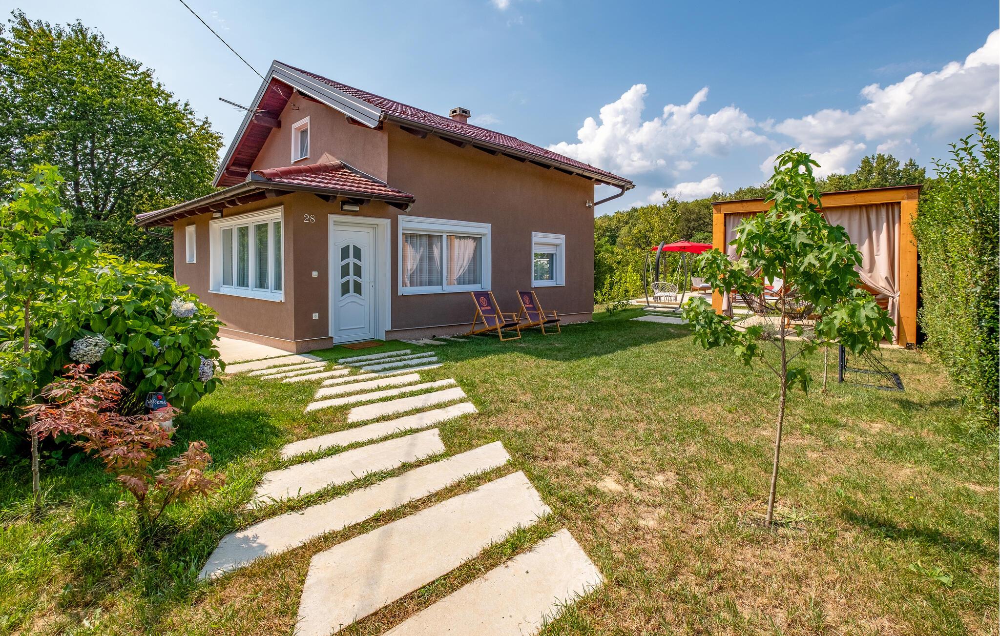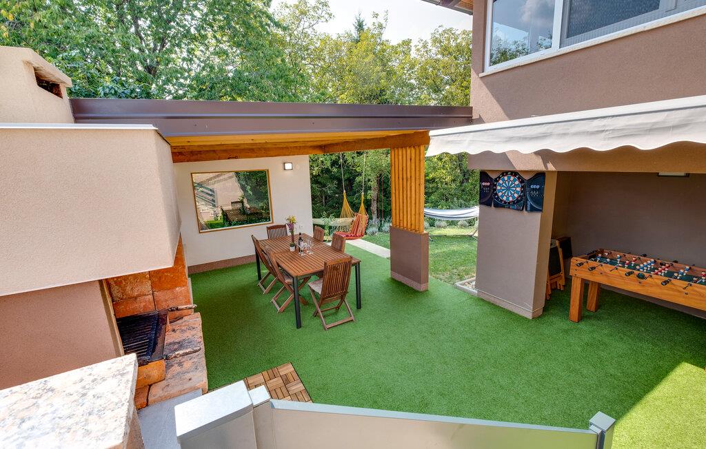 Nyd jeres ferie i dette smukke og meget komfortable feriehus med mange faciliteter. I dette familievenlige feriehus vil I opleve ren komfort og afslapning. Nyd de moderne møbler af høj kvalitet og føl jer hjemme på begge etager. Husets åbne galleri skaber en luftig rumfølelse, mens opholdsrummet er indbydende indrettet. Børn vil nyde de mange indendørs og udendørs legeredskaber, mens I kan slappe af i det indendørs SPA-område med spabad eller i den opvarmede udendørs pool. Det omgængelige område med bordfodbold og dart sørger for underholdende aftener. Slap af på de forskellige terrasseområder, hvoraf det ene også har et sommerkøkken, eller se børnene lege på legepladsen fra hængekøjen. Gornji Vinkovec tilbyder jer et roligt, landligt miljø, ideelt for friluftsmennesker. Nyd de mange cykel- og vandrestier, der fører gennem det maleriske landskab, eller besøg den nærliggende sø for afslappende fisketure. Zagreb med sine kulturelle og historiske seværdigheder er optimal til en dagstur. Et særligt højdepunkt er Aquapark Adamovec, perfekt til en sjov familieudflugt. Der er også vinruter og talrige restauranter i regionen, der lægger op til at opleve lokale specialiteter.