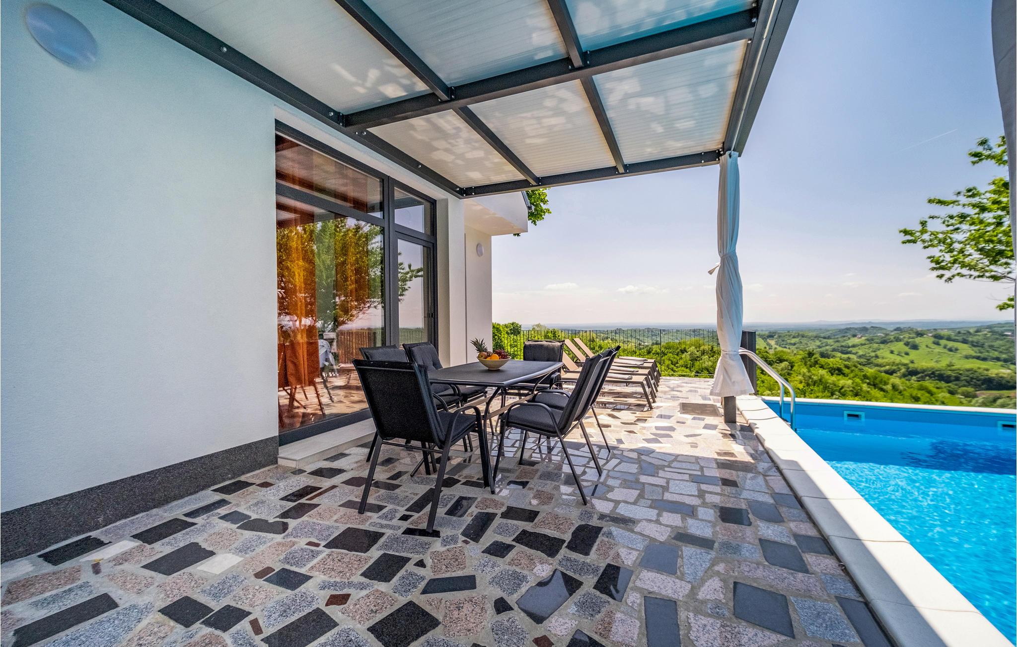 Tag en dyb indånding og nyd en skøn ferie i dette familievenlige feriehus. I kan finde jer tilpas med jeres kære i to etager og nyde det moderne og veludstyrede hus. Lav mad i det smukke køkken, krøl jer sammen i sofaen med en sjov film og foran brændeovnen, eller gå ud på terrassen for at nyde jeres måltid og solskinnet. Når I bader i poolen, kan I nyde det betagende naturlige panorama omkring jer og slappe af. jeres børn finder legeredskaber i haven, som I kan bruge til timevis af sjov.