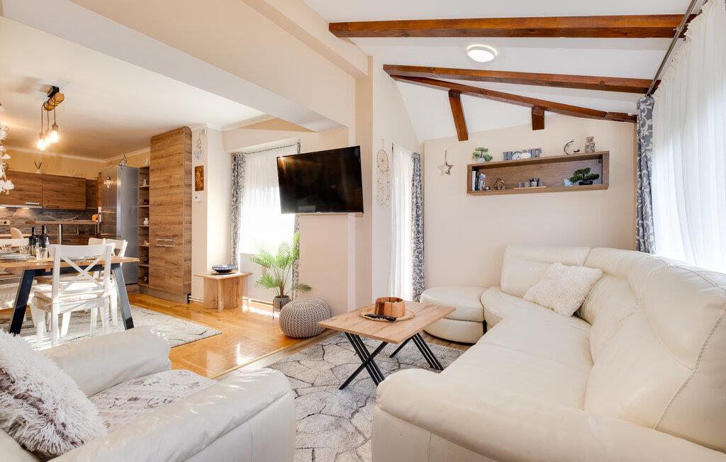 Nyd en uforglemmelig ferie i dette charmerende feriehus med spabad og sauna. Dette luksuriøse og familievenlige feriehus byder jer velkommen ved foden af Plešivica-bjergene og tilbyder adskillige ekstrafunktioner for alle aldre. Glæd jer til harmoniske måltider i den hyggelige spisestue, snak over et glas vin ved pejsen, eller nyd afslappende øjeblikke i saunaen, mens de yngre gæster morer sig med PlayStation eller bordfodbold. Det rummelige udendørsområde lader heller ikke noget tilbage at ønske. Lad blikket vandre over det maleriske landskab, mens I slapper af i spabadet. Spil badminton, basketball eller volleyball, mens børnene boltrer sig på legepladsen, og oplev stemningsfulde grillaftener under åben himmel. Udforsk de mange vandre- og cykelstier, og prøv de regionale vine på en af de mange vingårde. Oplev hulerne og Sveta Jana-kilden, eller spil paintball på det nærliggende anlæg. Prøv lykken med fiskeri, besøg Erdody Slot, og tag en dagstur til Zagreb med dets mange historiske og kulturelle attraktioner.