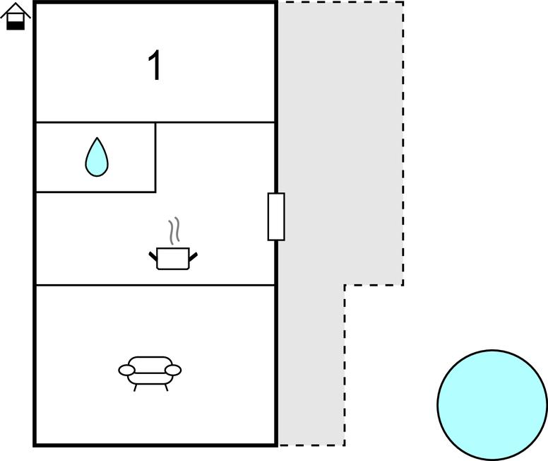 Opholdsstue 13m2 - 2 Sovepladser. (Sofa, madras eller lignende).