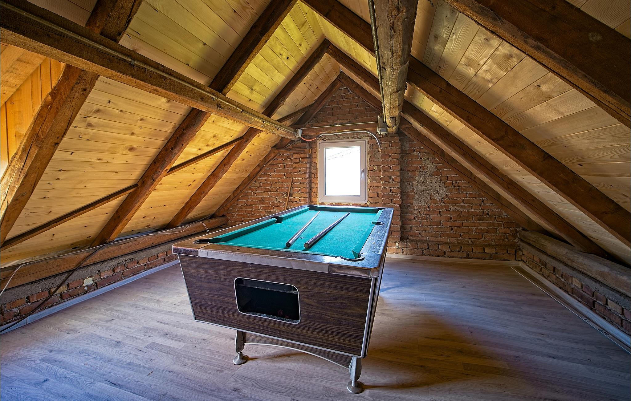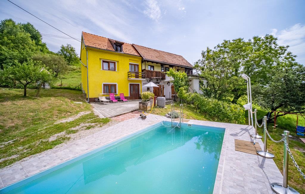 I kan se dette farverige hus på lang afstand, som venter jer ved foden af Plešivice-bjergene midt i smuk natur. Indenfor vil I næppe kunne få nok af de mange interessante detaljer i indretningen. Kraftige trælofter og antikke møbler giver feriehuset sin rustikke charme. Under taget kan I udfordre jeres medrejsende til billard. Føl jer godt tilpas på terrassen og lad blikket vandre ud over landskabet, så vil ferieafslapningen komme helt naturligt. Den store ejendom byder på masser af plads til at lege og slappe af. Jeres børn vil hygge sig på gyngerne og i sandkassen, mens I fremtryller noget lækkert på grillen. Poolen lover badesjov for hele familien. Under huset løber et vandløb, hvori der er en gammeldags mølle, hvor man efter aftale med ejeren kan se den gamle måde at male mel på.