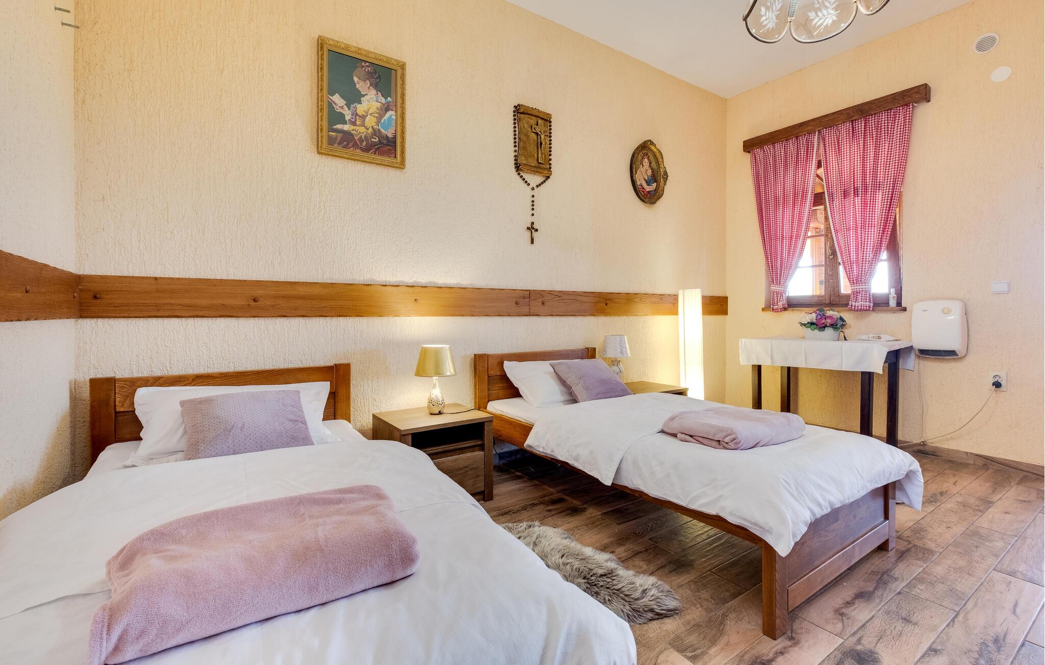 Tilbring en uforglemmelig ferie i jeres feriehus i Rozga, kun en kort køretur fra Zagreb. Denne charmerende indkvartering med privat pool tilbyder jer og jeres familie et afslappende tilflugtssted omgivet af grønne bakker og et malerisk landskab. Nyd den betagende panoramaudsigt over de omkringliggende skove, og læg hverdagen bag jer.