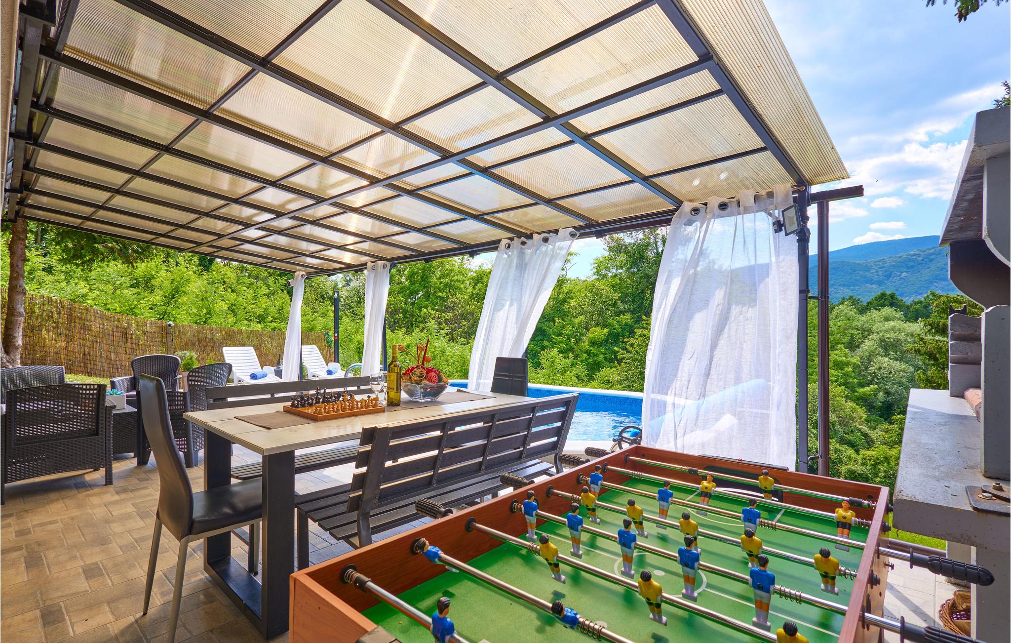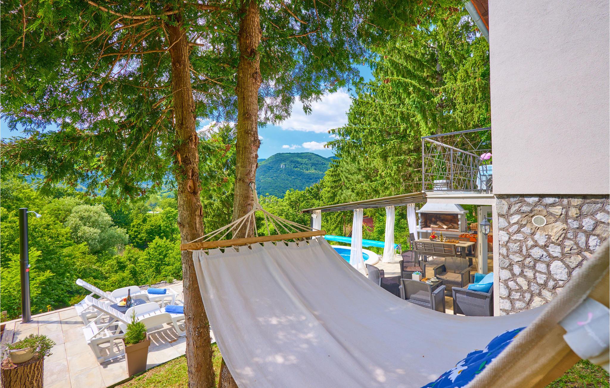Dette kreative feriehus med pool byder velkommen i smuk natur nord for Zagreb. Undslip din hverdag og tilbring en afslappende ferie i dette smukt designede og komfortable feriehus. Indkvarteringen er ideel for en lille familie eller ægtepar, der ønsker at nyde en rolig og afslappende ferie. Stueetagen og første sal er forbundet med en udvendig trappe og deler huset op i et opholds- og soveområde. Nyd dine måltider på den overdækkede terrasse og lad udsigten vandre over landskabet af den afsondrede natur i Podsljemen-zonen, mens du solbader og plasker rundt. Oplev området på de mange cykelruter og vandrestier på Sljeme. Du bor midt i naturen, men du kan hurtigt komme til byen og de fleste faciliteter i bil. Besøg byen Zagreb, som er rig på indhold, kulturelle og historiske seværdigheder, og vend tilbage til din oase af fred og velvære med mange indtryk!