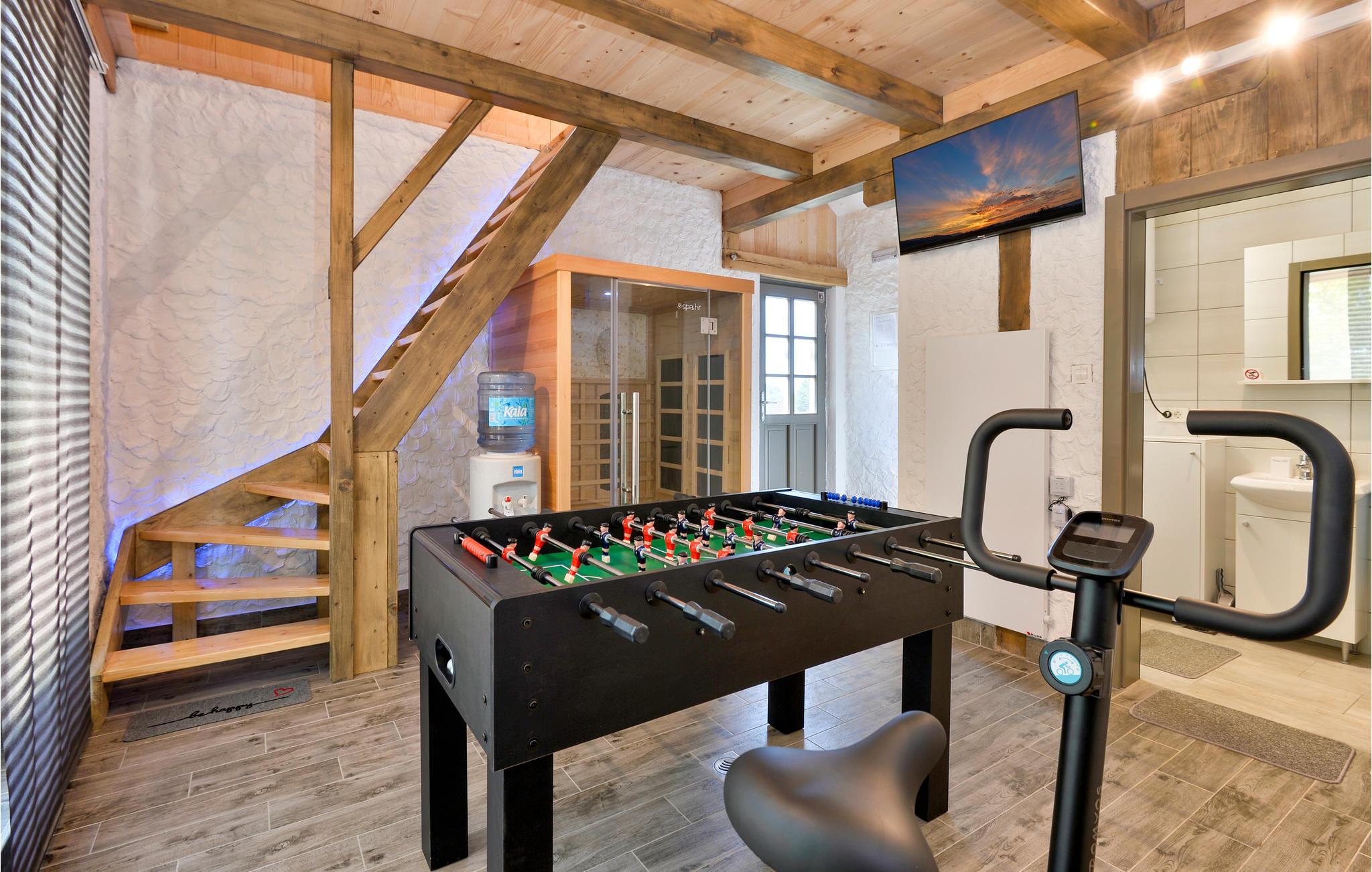 Om aftenen kan du lade dig varme op i saunaen, efter en tur på motionscyklen. Eller snør vandreskoene og tag på vandretur i området, den nærmeste vandresti starter kun 50 meter fra ejendommen.