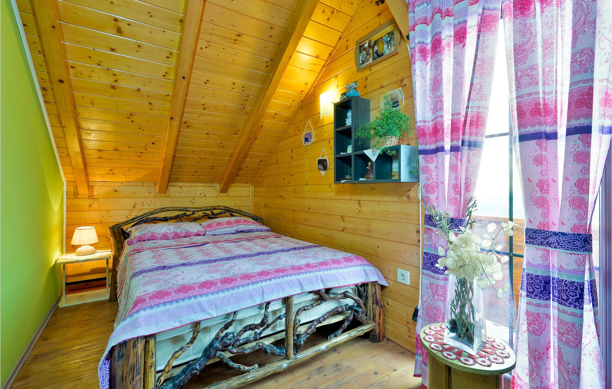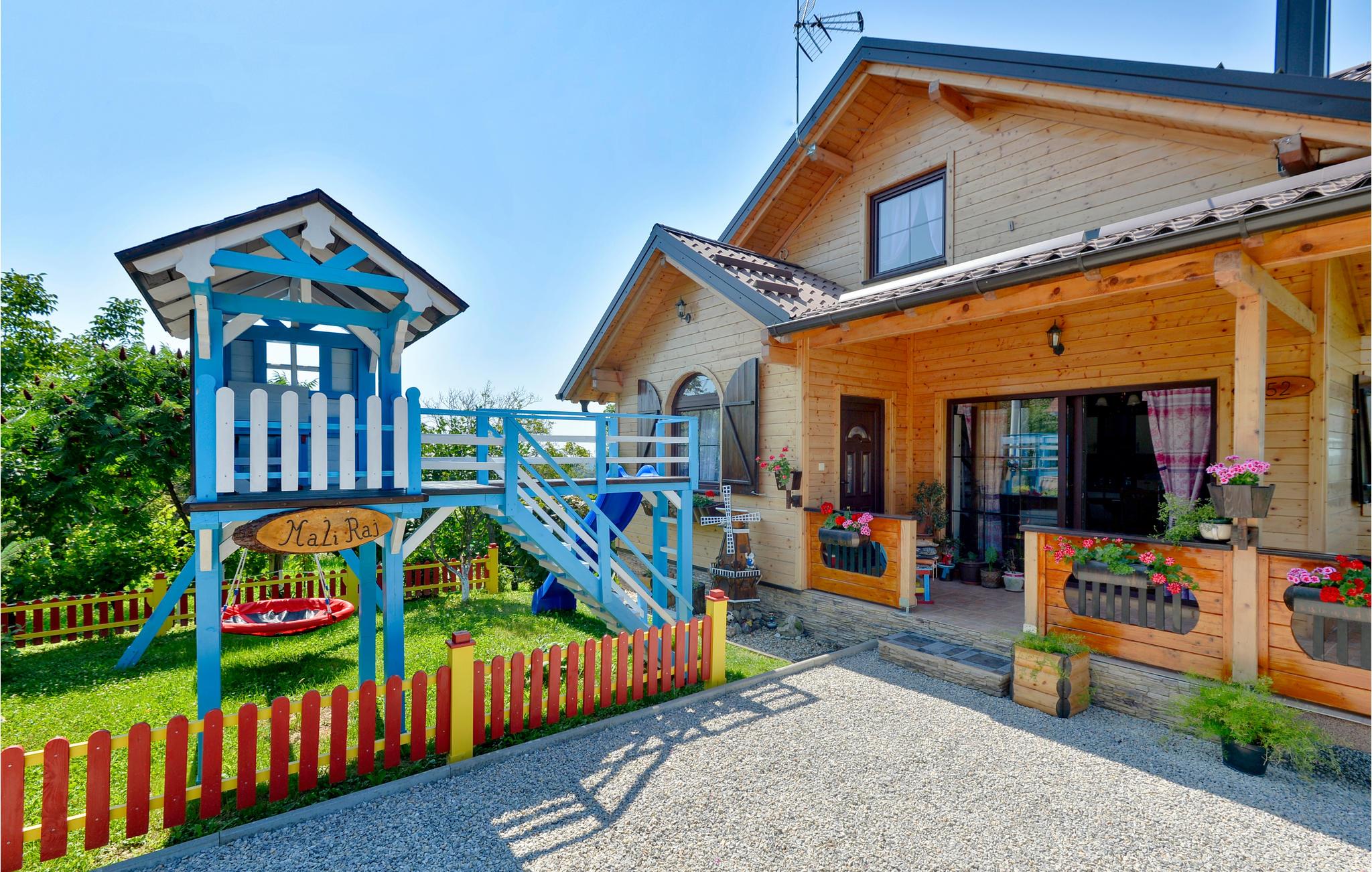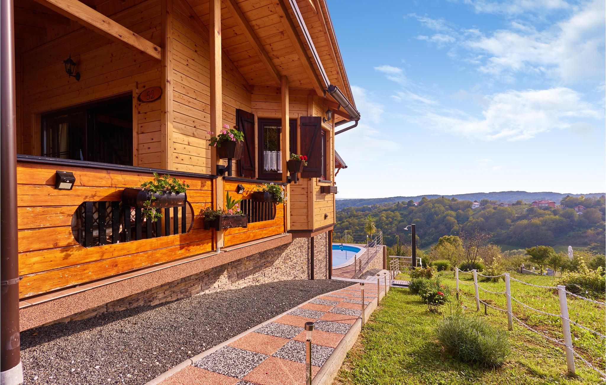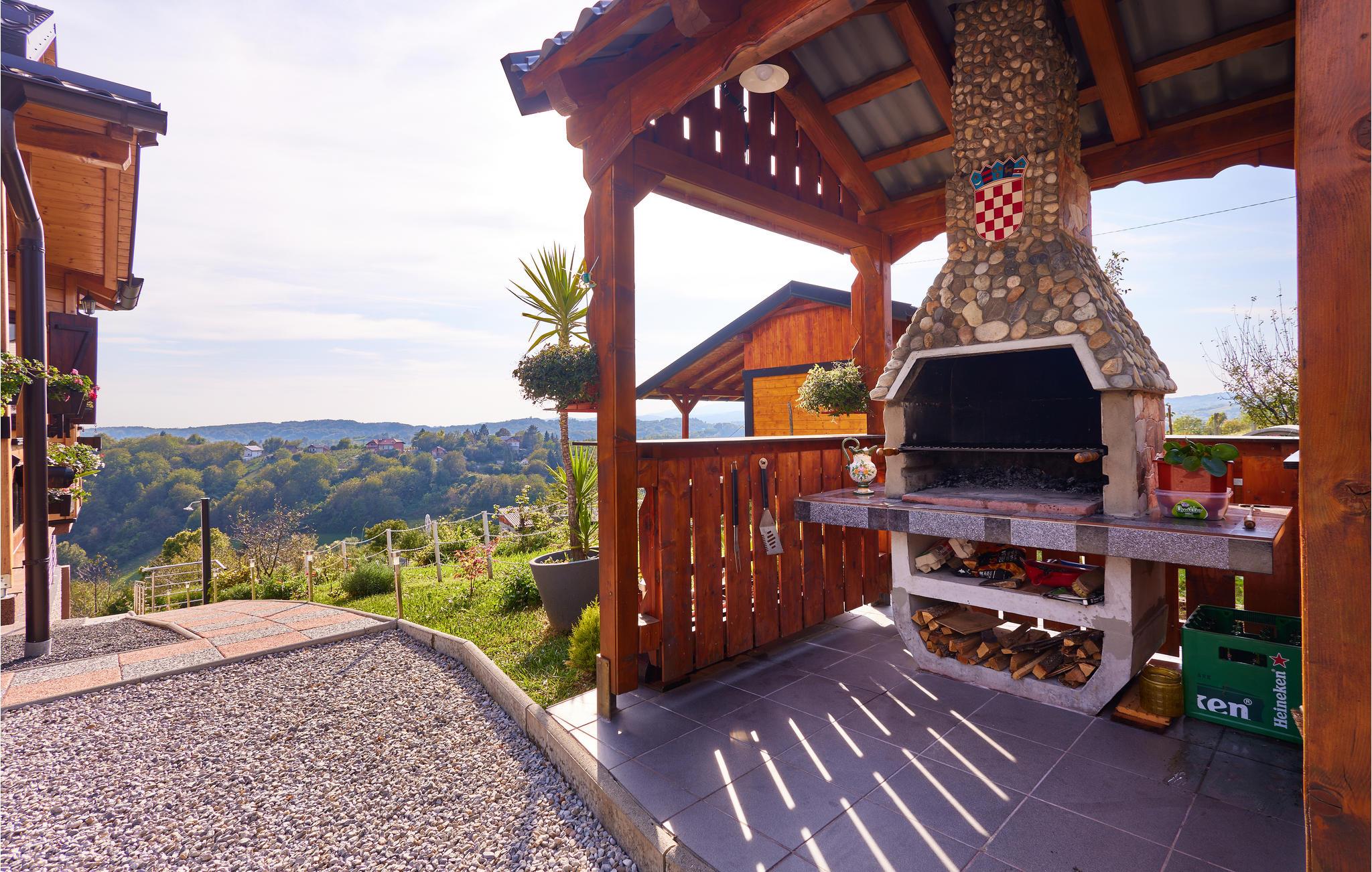 Ikke langt fra Zagreb, højt på en bakke, ligger dette unikke feriehus bygget af træ. Her bor I omgivet af grønt og utallige bakker med vinbjerge. Disse skønne omgivelser vil hurtigt få jer til at glemme alt om den hektiske hverdag. I vil sætte pris på jeres private pool i haven til en kølig svømmetur, når solen står højt på himlen. Huset ligger i en frugthave med udsigt over de omliggende bakker, hvor vinplanterne står i rækker. I har husets høje parterre til rådighed, med køkken og spisestue, en stue samt badeværelse og på øverste etage tre soveværelser med skrå vægge ned til 100 cm i siden. Foran huset ligger den overdækkede terrasse hvor grillen står, hvor I kan lave nem og lækker mad til hele familien. I løbet af ferien er der oplagt at se de mukke kirker og kapeller i Sveti Ivana Zelina. Vi kan også anbefale besøg i Zelingrad, der ligger centralt i Zelina Gora, med ruiner efter den oprindelige by og med karakteristiske vagttårne. Besøg også det kroatiske Zagorje, kendt for sine skønne slotte og interessante museer, samt sine kurbade, hvor I kan lade jer forkæle. Der er heller ikke langt til Zagreb, Kroatiens hovedstad, hvor der er underholdning året rundt, måske er byen smukkest i december, hvor hele byen stråler af lys og pynt.