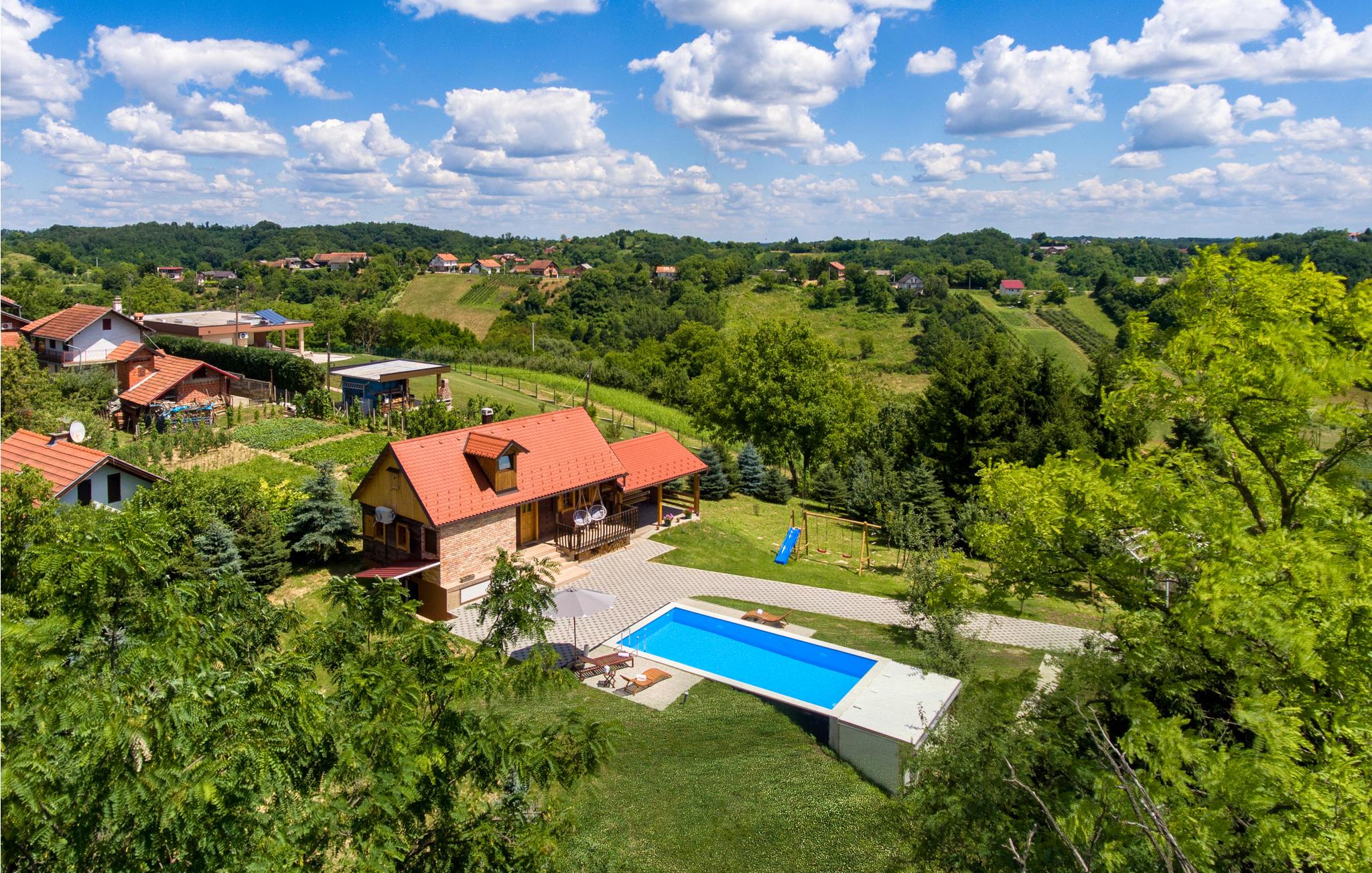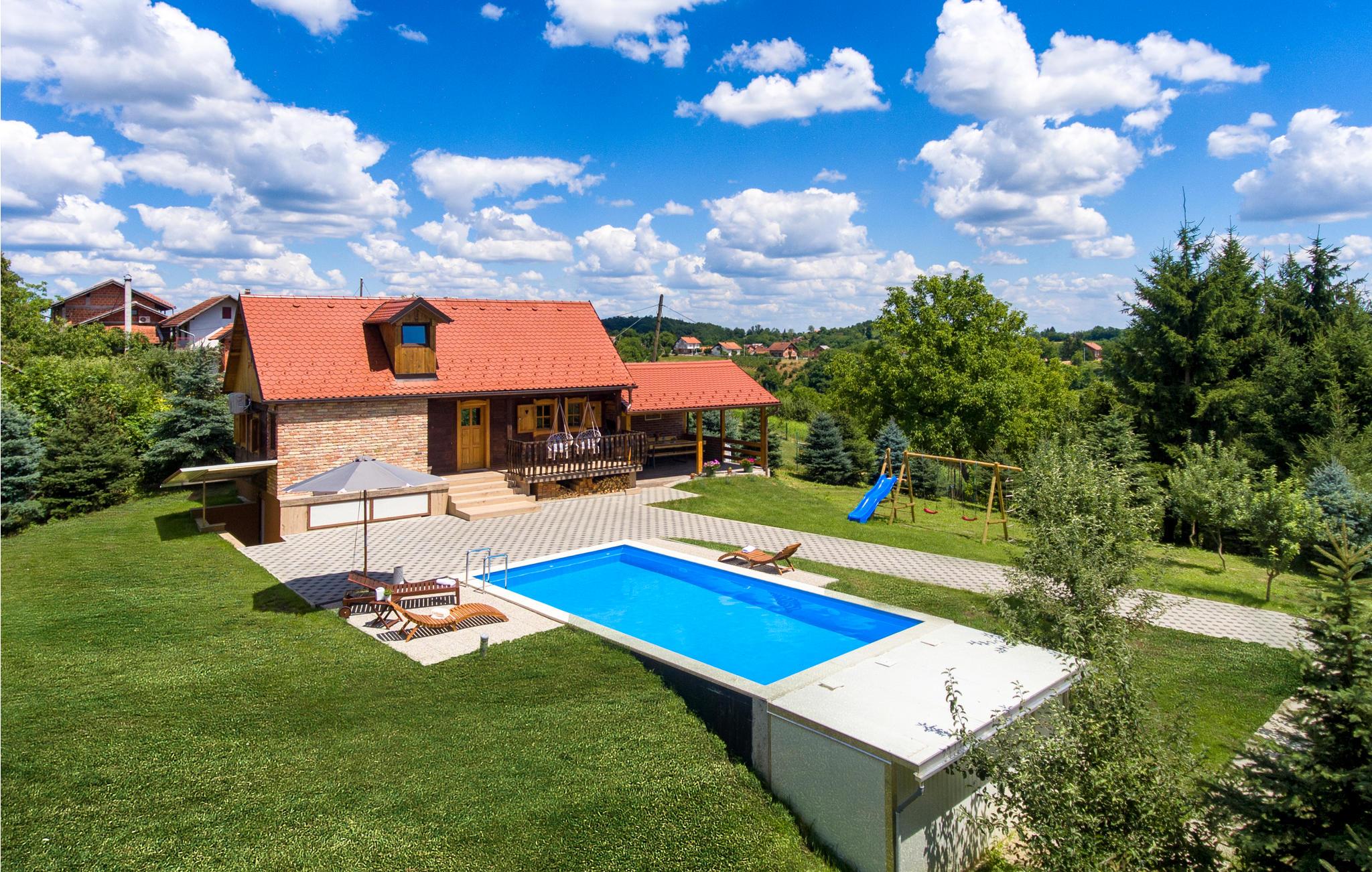Den grønne have domineres af en swimmingpool med soldæk til afslapning og forfriskning på varme sommerdage. På den overdækkede terrasse ved siden af ??huset er der et sommerkøkken med en grill, hvor I kan sidde sammen og tilberede grillretter. Sørg for at besøge de smukke kirker og kapeller i Sveti Ivan Zelina under jeres ophold. Vi anbefaler også et besøg i Zelingrad, som ligger i centrum af Mount Zelina og vil betage jer med resterne af den tidligere by og forsvarstårnene. Benyt lejligheden til at besøge Hrvatsko Zagorje, som er kendt for sine smukke slotte og museer, men også for fremragende kurbade.