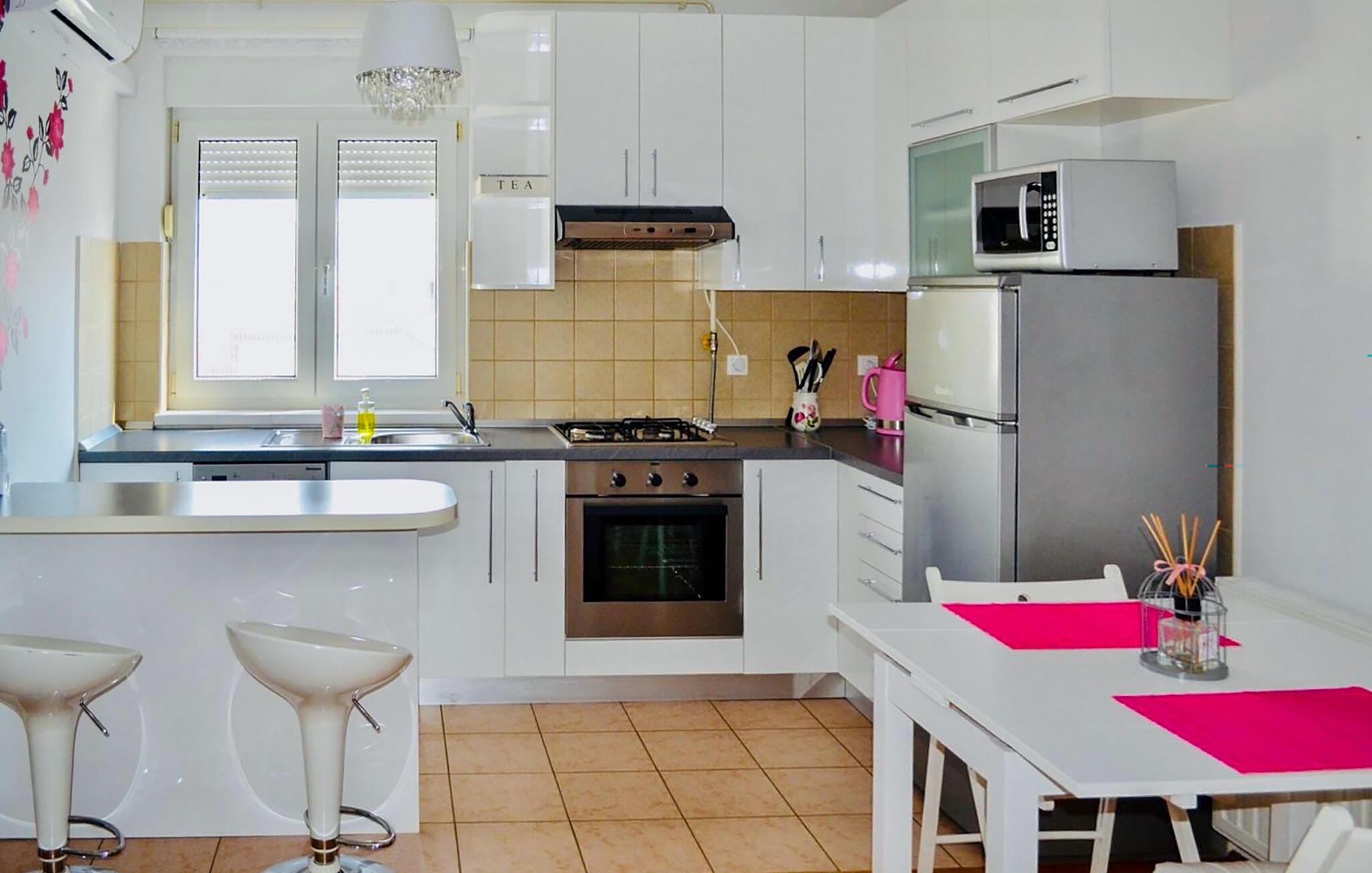 Jeres ferielejlighed i Kajzerica-distriktet kombinerer på en behagelig måde urban stil med hjemlig komfort og tilbyder jer en skøn oase med nem adgang til adskillige attraktioner. Bliv budt velkommen af ??det lyse og luftige design. Sæt jer godt til rette i den komfortable sofa og se tv for en afslappende pause efter en slentretur gennem byen. Tilbered jeres måltider i køkkenet, som tilbyder rigelig bordplads, ideel til madlavning sammen og find sammen omkring det lille spisebord.