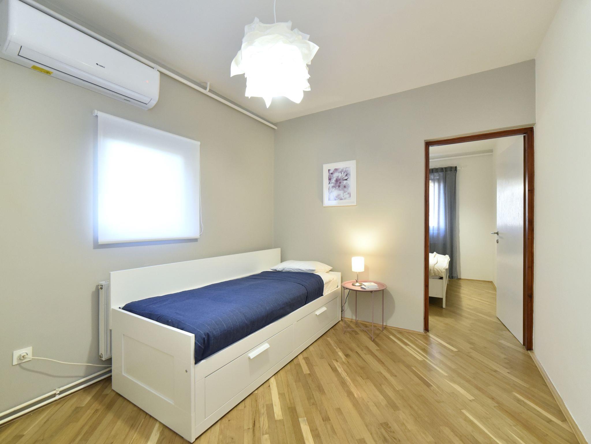 Ferienwohnung bietet Platz für 4 Gäste. Die Betten sind in Schlafzimmern, die es 2 gibt, innerhalb einer Gesamtfläche von 80m2, angeordnet. Die Gäste haben einen eigenen Balkon zur Verfügung, auf der sie in warmen Sommernächten genießen können. Für vollen Genuss und Entspannung gibt es einen privaten Grill für Gäste dieser Unterkunft. IM PREIS INBEGRIFFEN: Kurtaxe, Endreinigung, Klimatisierung, Zentralheizung, Parkplatz, Internet, Kinderbett. Die Verfügbarkeit zusätzlicher Dienstleistungen in Ihrem reservierten Termin und die Preise derselben (falls nicht aufgeführt) müssen im Voraus überprüft werden. Zusätzliche Dienstleistungen die in der Zahlungsaufforderung nicht aufgeführt sind werden direkt beim Vermieter bezahlt, angenommen der Gast nutzt auch diese.