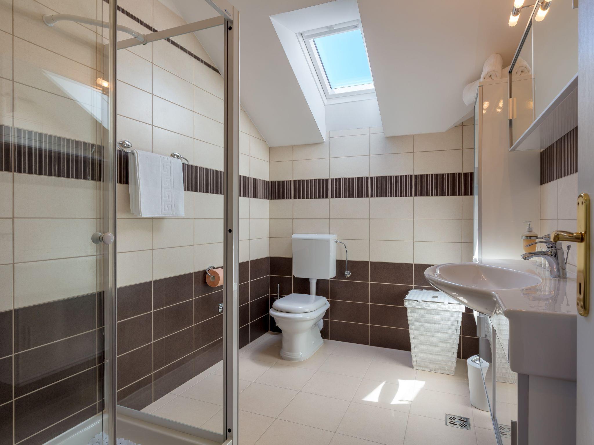 5-room house 155 m2 on 2 levels. Beautiful and cosy furnishings: living room. 1 room with 1 french bed (160 cm, length 200 cm), satellite TV (flat screen). Kitchen (oven, dishwasher, 4 ceramic glass hob hotplates, microwave, freezer) with dining table, satellite TV (flat screen), air conditioning. Shower/WC. No heating option. Upper floor: 2 rooms with sloping ceilings, ceiling height 180 - 260 cm, each room with 2 beds (90 cm, length 200 cm), satellite TV (flat screen). 1 room with 1 french bed (160 cm, length 200 cm), satellite TV (flat screen). Entrance hall with air conditioning. Shower/WC. Deck chairs (4). Facilities: washing machine, children's high chair, baby cot, hair dryer. Internet (WiFi, free).
