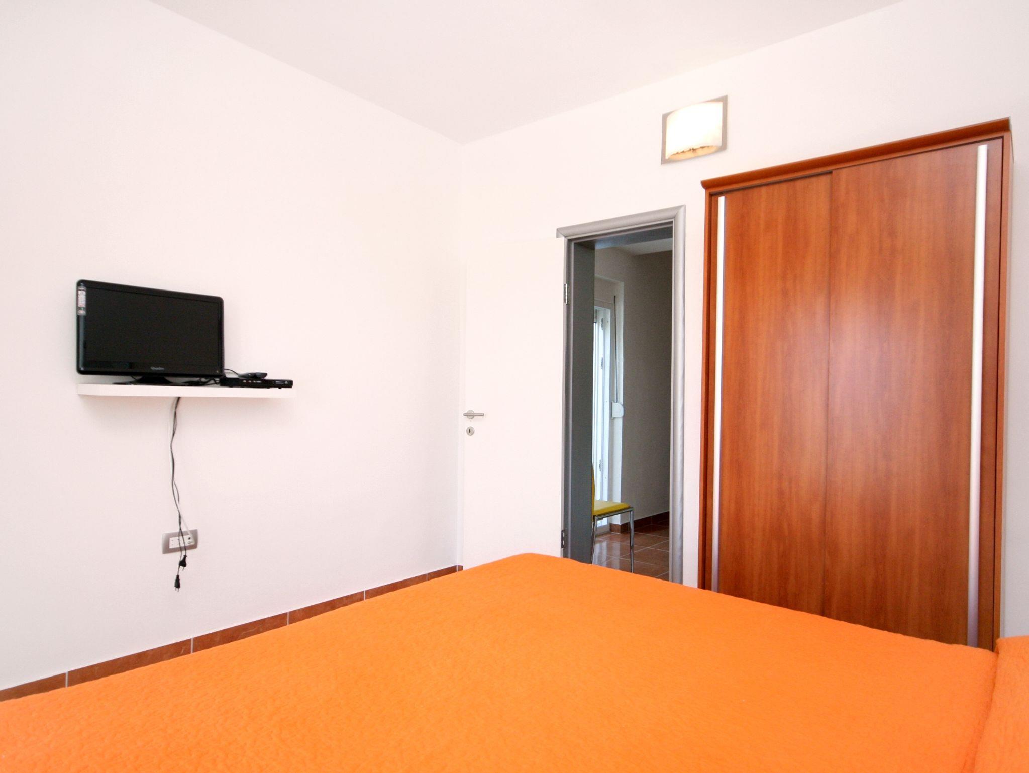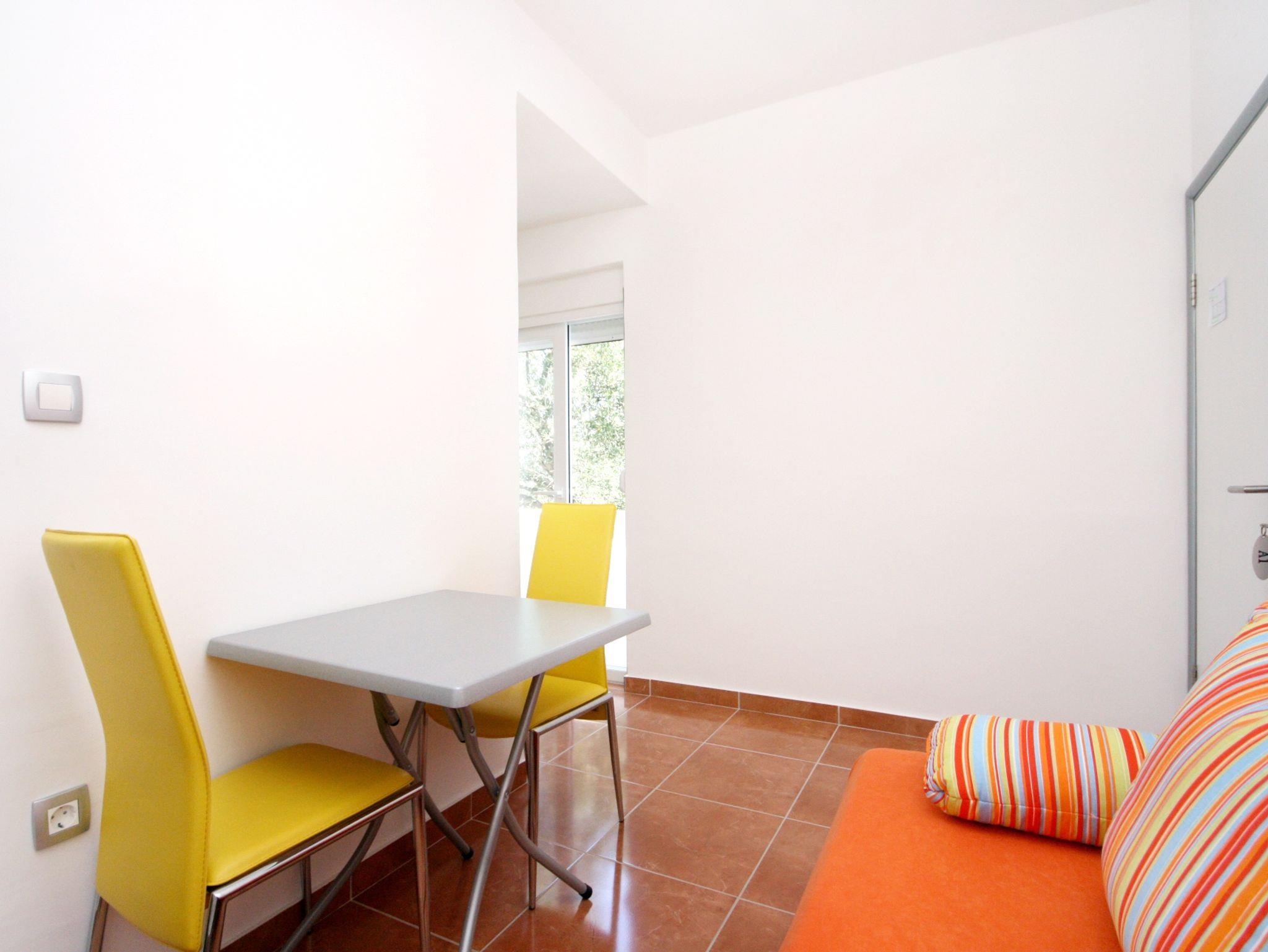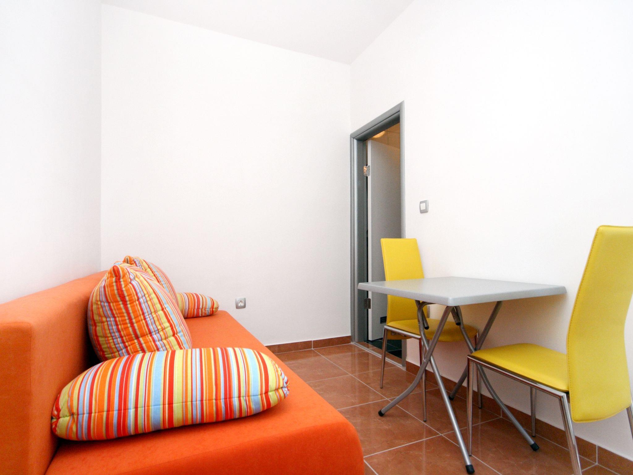 Ferienwohnung bietet Platz für 4 Gäste. Die Betten sind in Schlafzimmern, die es 1 gibt, und in Esszimmer, innerhalb einer Gesamtfläche von 26m2, angeordnet. Die Gäste haben einen eigenen Balkon zur Verfügung, auf der sie in warmen Sommernächten genießen können. Das Apartment bietet Meerblick. IM PREIS INBEGRIFFEN: Kurtaxe, Endreinigung, Parkplatz, Internet, Kinderbett. VERBINDLICHE ZUSÄTZLICHE KOSTEN: Aufzahlung für Kurzaufenthalte (prozentualer Zuschlag pro Nächtigungsanzahl: 30% - 1, 20% - 2, 10% - 3). UNVERBINDLICHE ZUSÄTZLICHE KOSTEN: Klimatisierung (5,00 € pro Nacht). Die Verfügbarkeit zusätzlicher Dienstleistungen in Ihrem reservierten Termin und die Preise derselben (falls nicht aufgeführt) müssen im Voraus überprüft werden. Zusätzliche Dienstleistungen die in der Zahlungsaufforderung nicht aufgeführt sind werden direkt beim Vermieter bezahlt, angenommen der Gast nutzt auch diese. Ermäßigung auf den Grundpreis: Gratistag 14=13 (bei einem Aufenthalt von 14 Tagen oder mehr erhalten Sie einen Gratistag für den Aufenthalt bis 31.12.26).