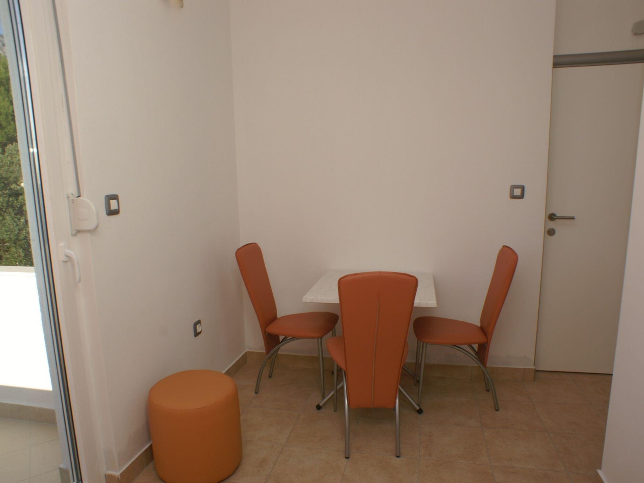 Studio bietet Platz für 3 Gäste. Die Betten sind in Schlafzimmern, die es 1 gibt, innerhalb einer Gesamtfläche von 24m2, angeordnet. Die Gäste haben eine eigene Terrasse zur Verfügung, auf der sie in warmen Sommernächten genießen können. Das Studio-Apartment bietet Meerblick. IM PREIS INBEGRIFFEN: Kurtaxe, Endreinigung, Parkplatz, Internet, Kinderbett. VERBINDLICHE ZUSÄTZLICHE KOSTEN: Aufzahlung für Kurzaufenthalte (prozentualer Zuschlag pro Nächtigungsanzahl: 30% - 1, 20% - 2, 10% - 3). UNVERBINDLICHE ZUSÄTZLICHE KOSTEN: Klimatisierung (5,00 € pro Nacht). Die Verfügbarkeit zusätzlicher Dienstleistungen in Ihrem reservierten Termin und die Preise derselben (falls nicht aufgeführt) müssen im Voraus überprüft werden. Zusätzliche Dienstleistungen die in der Zahlungsaufforderung nicht aufgeführt sind werden direkt beim Vermieter bezahlt, angenommen der Gast nutzt auch diese. Ermäßigung auf den Grundpreis: Gratistag 14=13 (bei einem Aufenthalt von 14 Tagen oder mehr erhalten Sie einen Gratistag für den Aufenthalt bis 31.12.26).