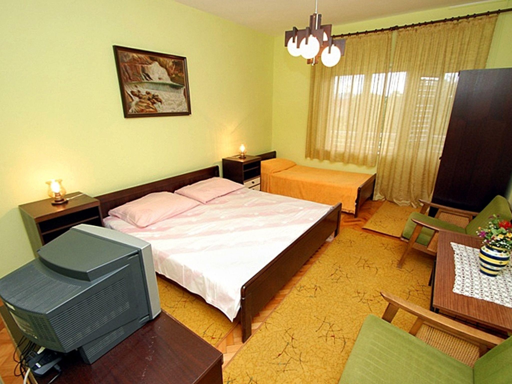 Zimmer bietet Platz für 3 Gäste. Die Betten sind in Schlafzimmern, die es 1 gibt, innerhalb einer Gesamtfläche von 21m2, angeordnet. Die Nutzung einer gemeinsamen Küche ist möglich. Die Gäste haben eine eigene Terrasse zur Verfügung, auf der sie in warmen Sommernächten genießen können. Es ist erlaubt, Speisen auf dem Gemeinschafts-Grill vorzubereiten. In der Unterkunftseinheit besteht die Möglichkeit des Mitbringens von Haustieren, und die Dienstleistung ist im Preis der Unterkunft enthalten. Die reservierte Unterkunftseinheit ist ein Zimmer mit eigenem Badezimmer mit der Möglichkeit der Nutzung einer Küche ohne Zuzahlung. IM PREIS INBEGRIFFEN: Kurtaxe, Endreinigung, Klimatisierung, gemeinsame Küche, Parkplatz, Internet, Haustiere. VERBINDLICHE ZUSÄTZLICHE KOSTEN: Aufzahlung für Kurzaufenthalte (prozentualer Zuschlag pro Nächtigungsanzahl: 30% - 1, 20% - 2, 10% - 3). UNVERBINDLICHE ZUSÄTZLICHE KOSTEN: Wäschewaschen (5,00 € Waschen). Die Verfügbarkeit zusätzlicher Dienstleistungen in Ihrem reservierten Termin und die Preise derselben (falls nicht aufgeführt) müssen im Voraus überprüft werden. Zusätzliche Dienstleistungen die in der Zahlungsaufforderung nicht aufgeführt sind werden direkt beim Vermieter bezahlt, angenommen der Gast nutzt auch diese. Ermäßigung auf den Grundpreis: Gratistag 14=13 (bei einem Aufenthalt von 14 Tagen oder mehr erhalten Sie einen Gratistag für den Aufenthalt bis 31.12.26).